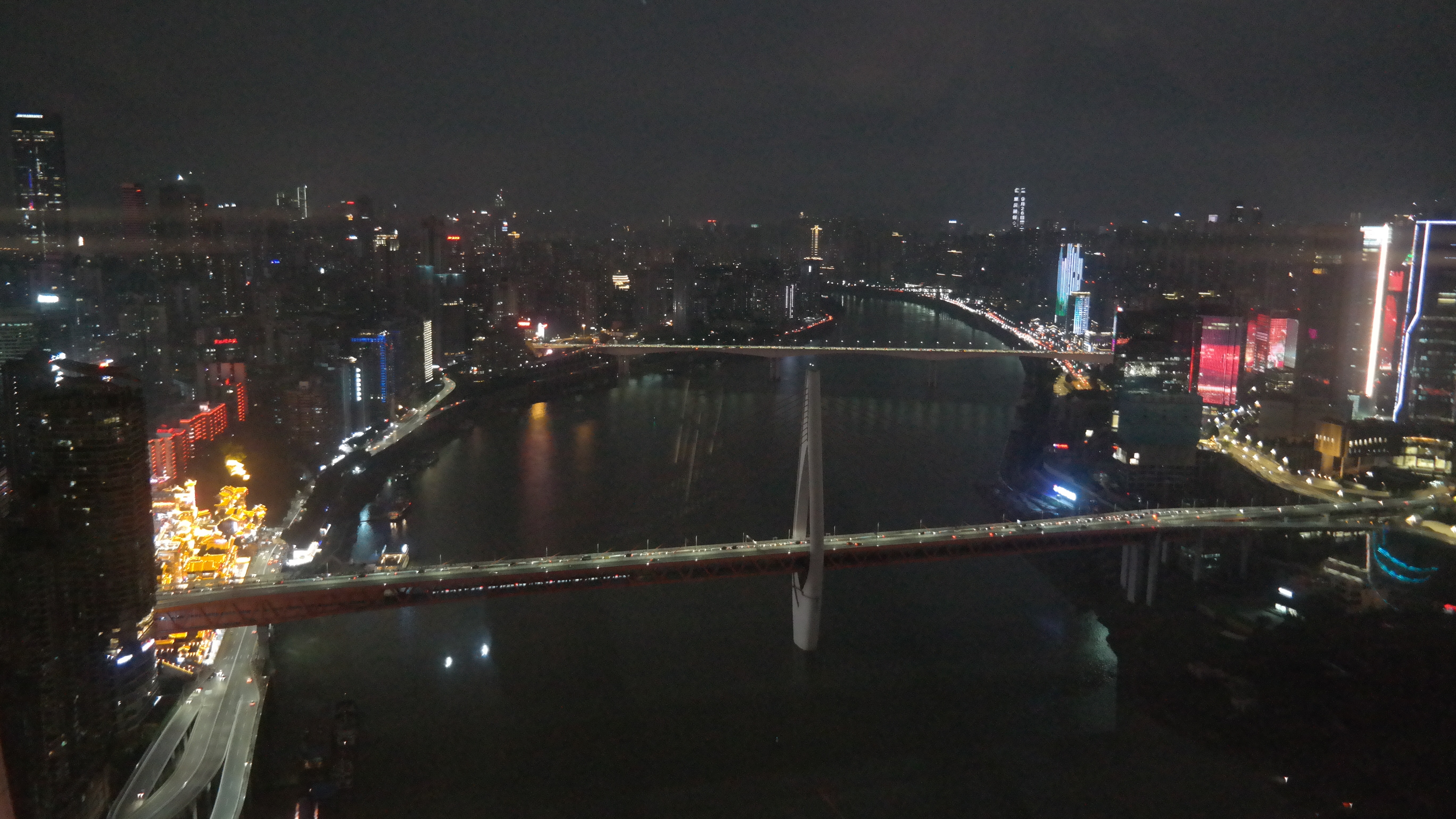총칭의 번화가들이 자리한 유중구(渝中区, 유종추)의 끝자락에는 차오티엔먼(조천문, 朝天门) 이라는 곳이 있다. 가릉강(嘉陵江, 자링장)과 양쯔강의 새 이름인 장강(长江, 창장)이 맛나는 곳으로 예전부터 조선소가 있었던 곳이며 지금은 장강 유람의 출발지가 된 곳이다. 푸른 가릉강과 흙탕물같은 누런색의 장강이 만나는 이 차오티엔먼은 이 두가지 다른 색의 강들이 만나서 하나가 되어 더 거대한 강을 만들어내는 낮의 경치와 함께 총칭의 아름다운 야경을 볼 수 있는 곳으로 유명하기도 하다. 이곳에 총칭 라이푸스 광창(重庆来福士广场, Raffles City Chongqing)라는 거대한 복합건축물들이 새로 들어섰다. 이 라플시티는 중국에서 가장 비싼 건축물이며, 이 건축물들을 이어주는 세계에서 두번째로 가장 높은 다리가 있다. 그리고 마천루에서 총칭의 야경을 볼 수 있는 전망대가 만들어졌다고 하여 가보기로 하였다.