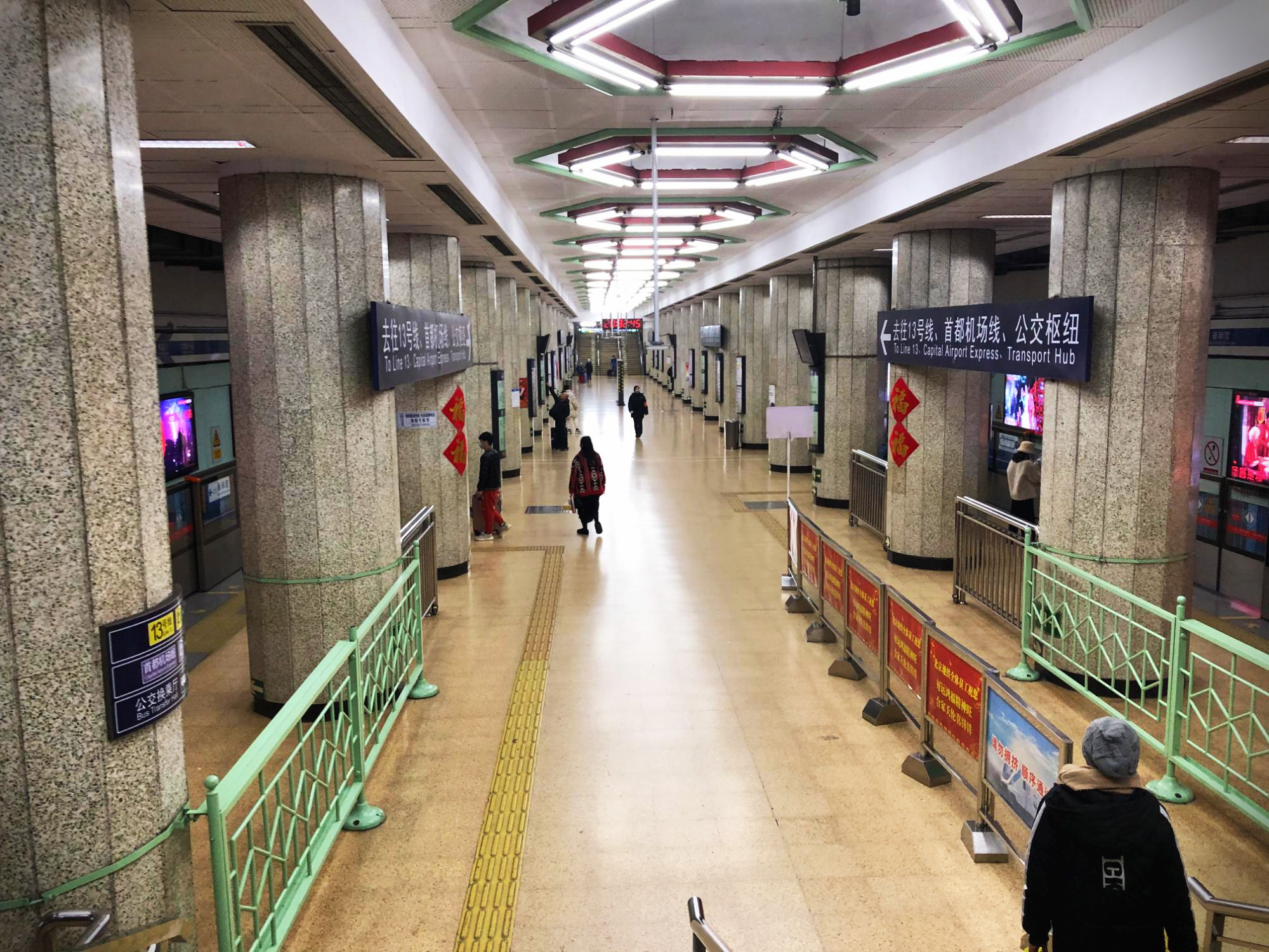 공항에서 베이징 시내로 들어가기 공항철도를 타고 이동하였다. 확실히 베이징은 북방지역이라 겨울에도 선선하거나 약간 으스스한 정도의 추위인 광동성보다 훨씬 춥다.