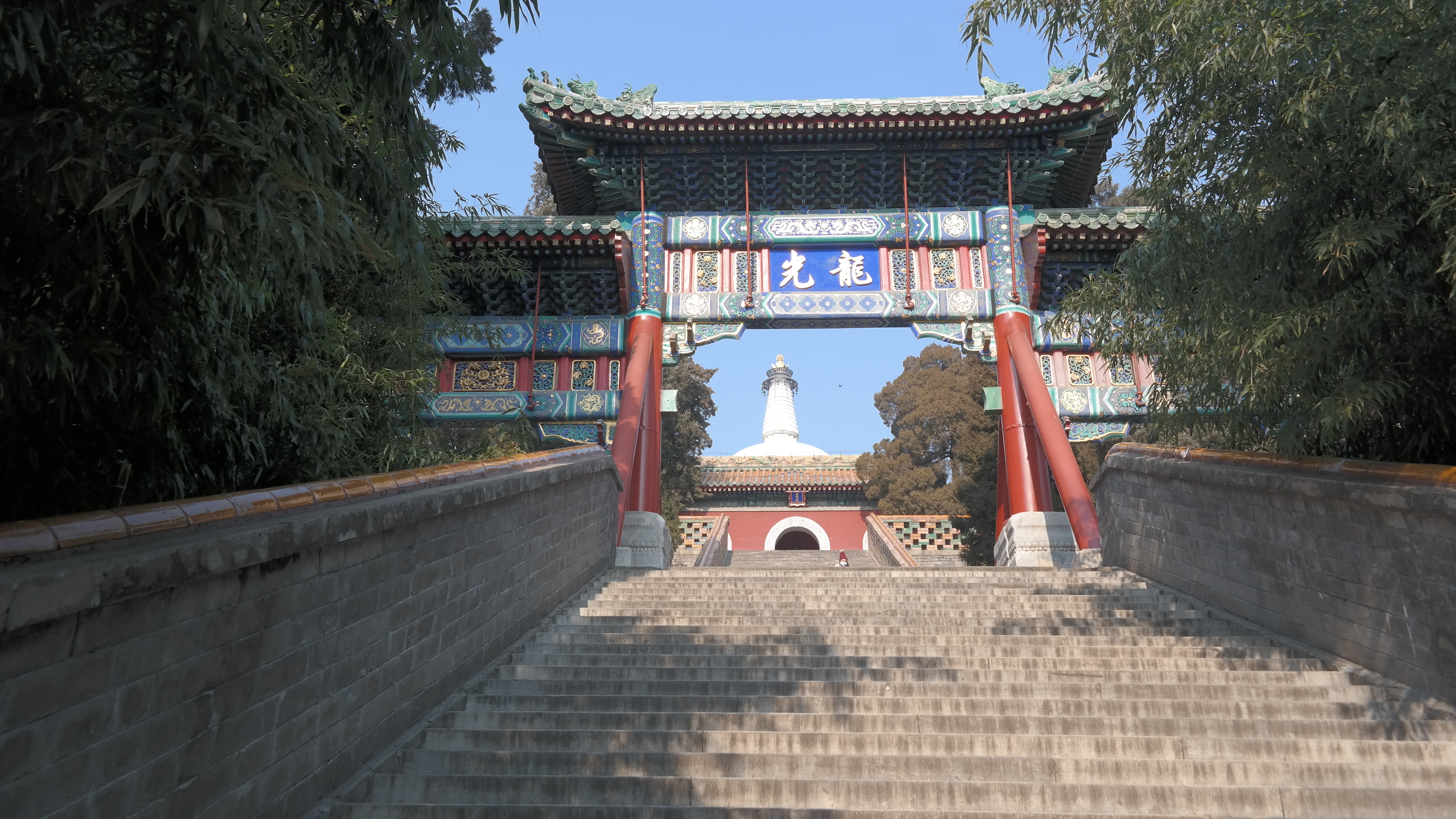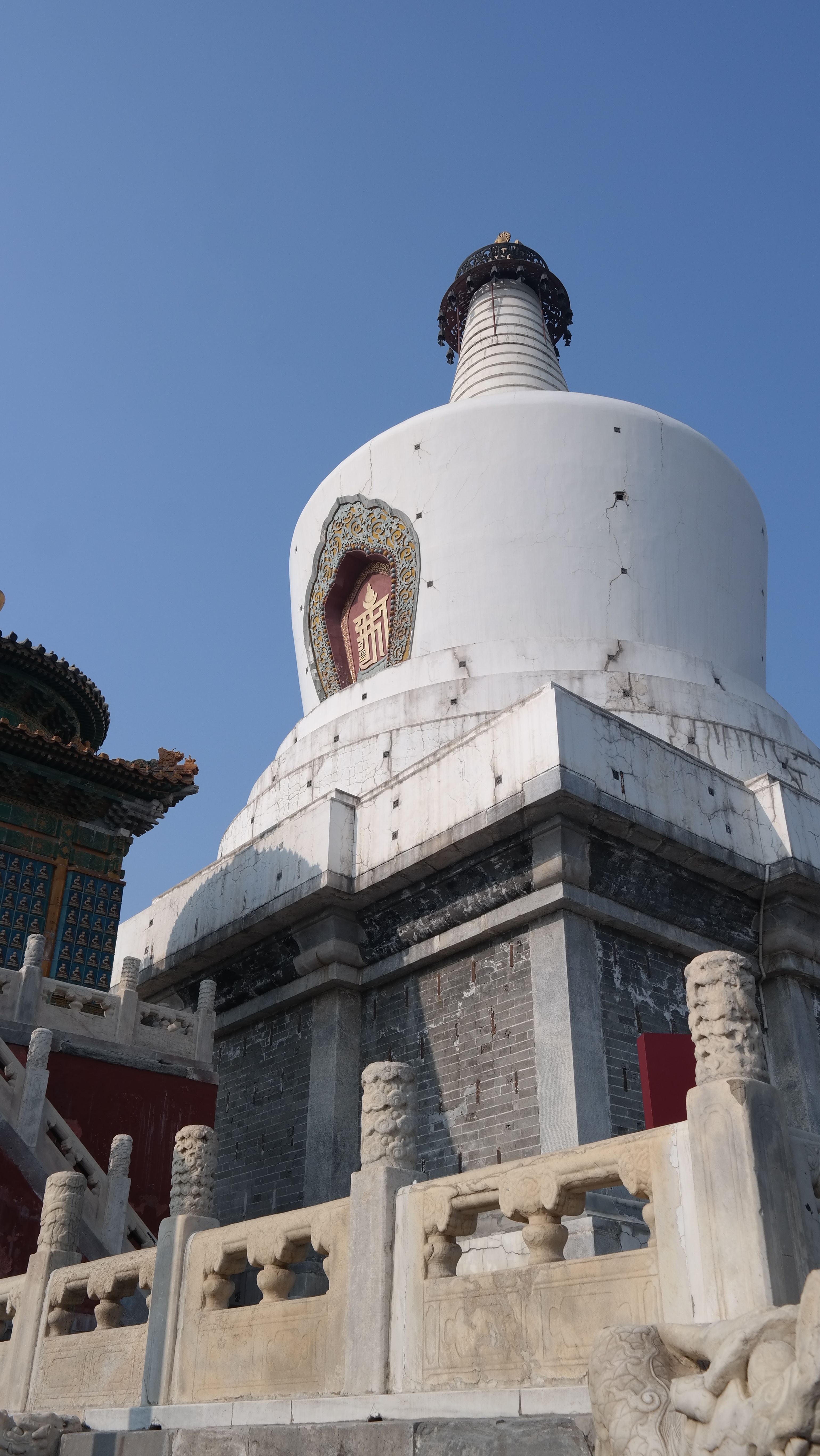 백탑은 경화도의 언덕 꼭대기에 있는 사리탑인데, 제 5대 달라이 라마가 중국을 방문했던 것을 기념하여 1651년에 만들어졌다고 한다.