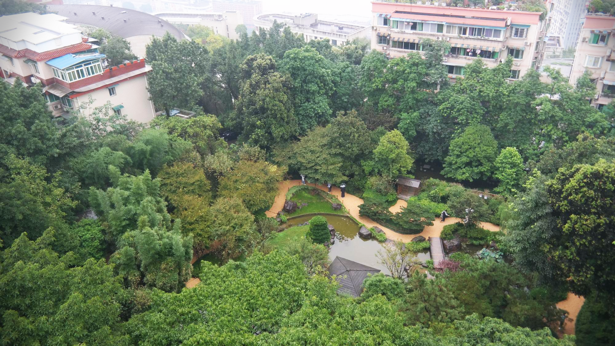 총칭(重庆, 중경)의 자랑(?) 중의 하나인 아파트를 통과하는 지하철역이 있는 리즈바(李子坝, 이자파)의 바로 남쪽에는 어링공위엔(鹅岭公园, 아령공원)이라는 멋진 공원이 있어 가보기로 하였다. 총칭의 가을 날씨답게 비가 오락가락 내리는 날들인데, 비가 쏟아지다가 완전히 멈추고 해가 쨍쨍하게 나는 남방지역과는 다르게, 하루종일 우중충한 날씨에 비가 부슬부슬거리게 오다가 잠시 멈추고 다시 부슬거리다가 멈추는 그런 날씨였다. 우산을 쓰기에도 애매하고 그냥 맞기도 애매한 그런 총칭의 가을 날씨였다.