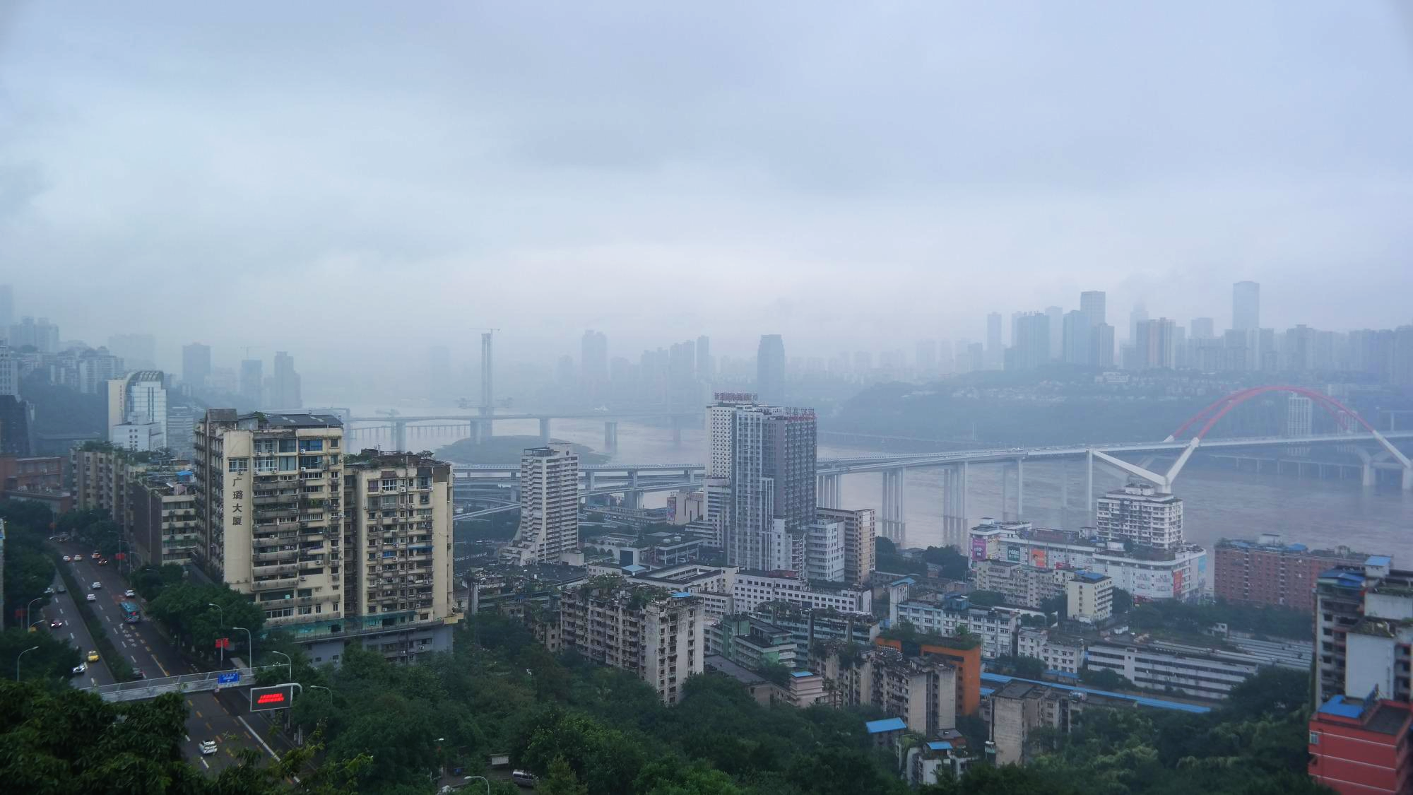 내리는 듯 마는 듯 하게 오던 빗방울이 어느샌가 굵어져 쏟아지기 시작해서 잠시 비를 피하였다. 시원하게 오는 비를 구경하다, 비가 그치니 총칭의 모습이 한눈에 들어왔다.