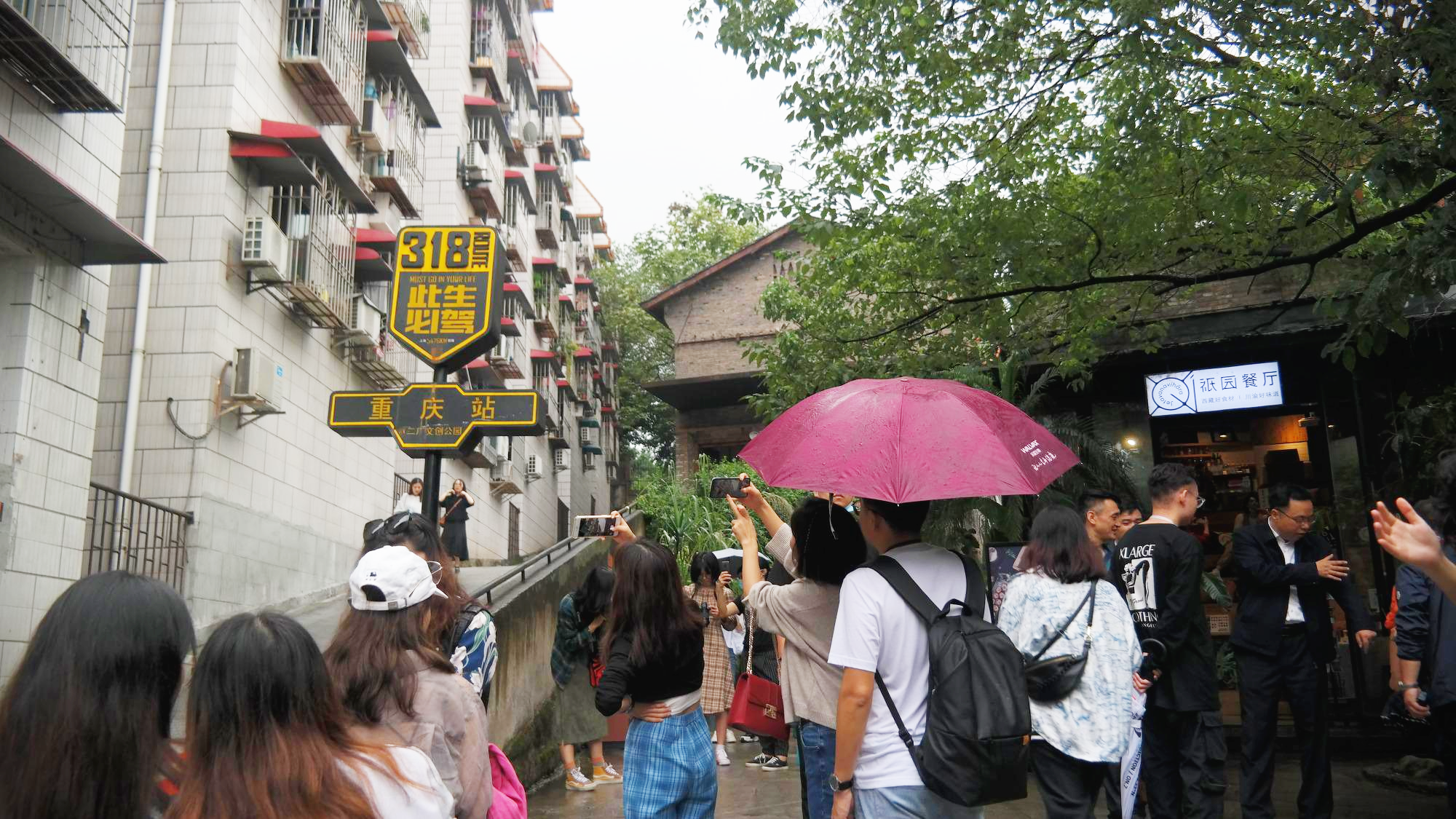사람들이 계속해서 사진을 찍어대던 '간판'인데, 영화인지 드라마인지에서 나왔다는 것 같다. 이것도 <从你的全世界路过>에서 나온 곳일까해서 찾아봤는데, 도저히 못찾겠다. 영화<从你的全世界路过>를 본 적이 없어서 잠시 인터넷에서 내용과 요약본(?)을 보았는데, 배경이 총칭의 거리와 풍경을 정말 잘 표현한 것 같다. 총칭은 홍콩처럼 좁은 골목에 다닥다닥 붙어 있는 집들과 이상하리만치 높은 아파트들로 이루어져 있는데, 홍콩과 다른 점이 있다면 도시에 언덕이 많아 계단이 많고 그러다보니 총칭의 아름다운 야경과 경치를 볼 수 있는 곳도 많다는 것이다. 총칭은 이렇게 얼창원촹위엔같이 허름한 곳에서도 훌륭한 경치를 볼 수 있는 곳이 많다. 하지만 영화의 배경은 매우 멋지지만, 영화 자체는 다른 중국 로맨스 코미디 영화같이 좀 유치하다.