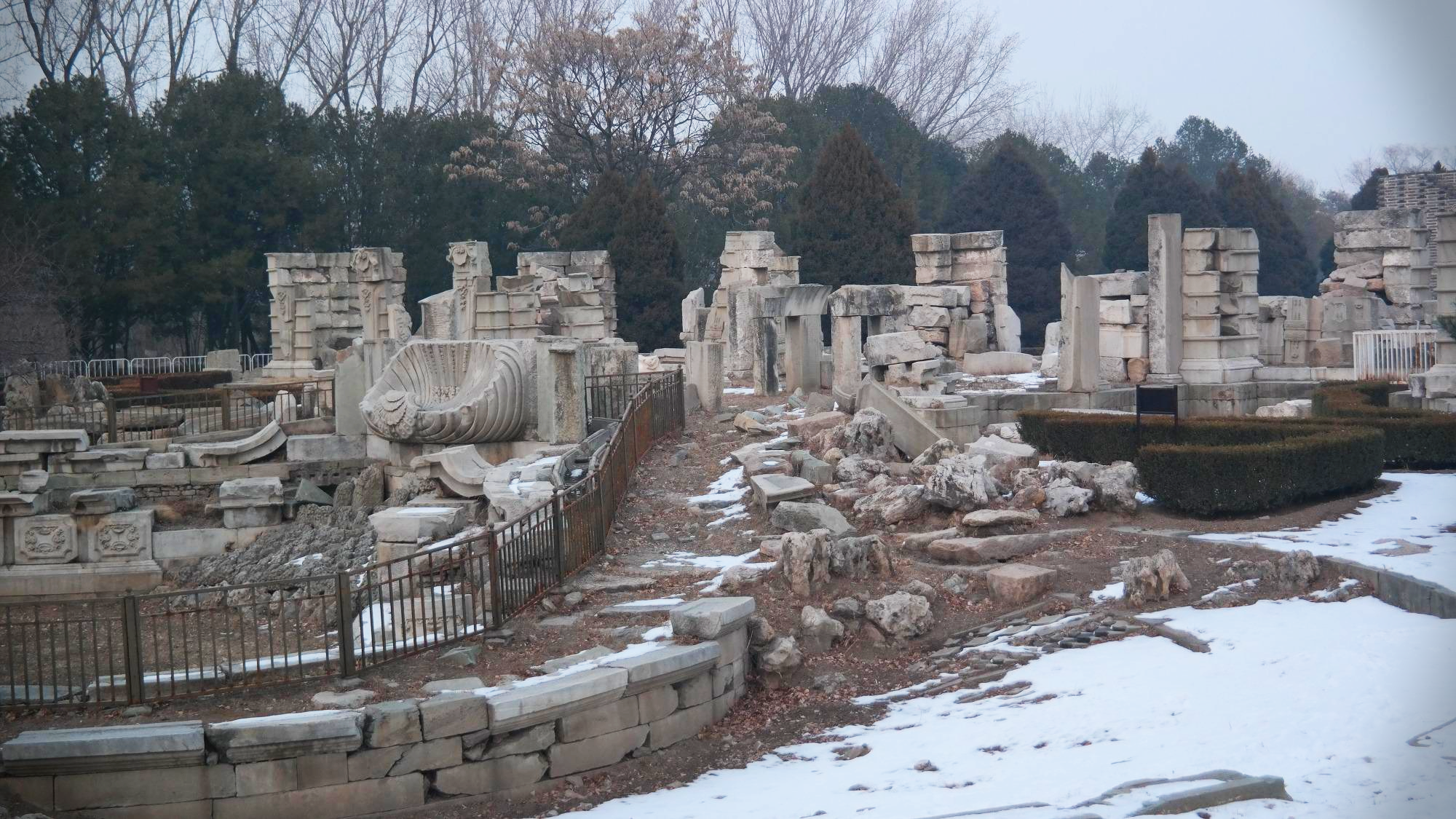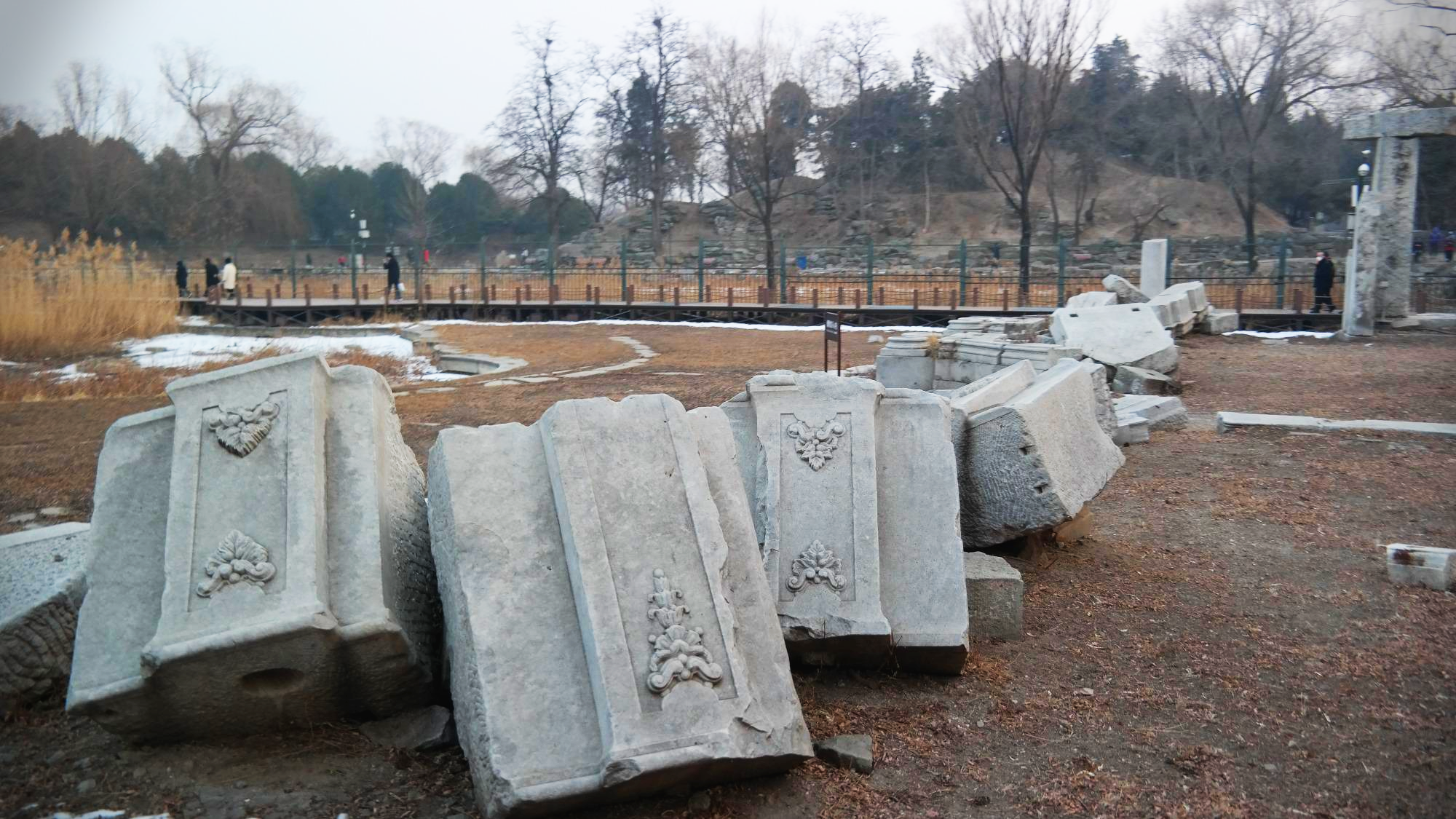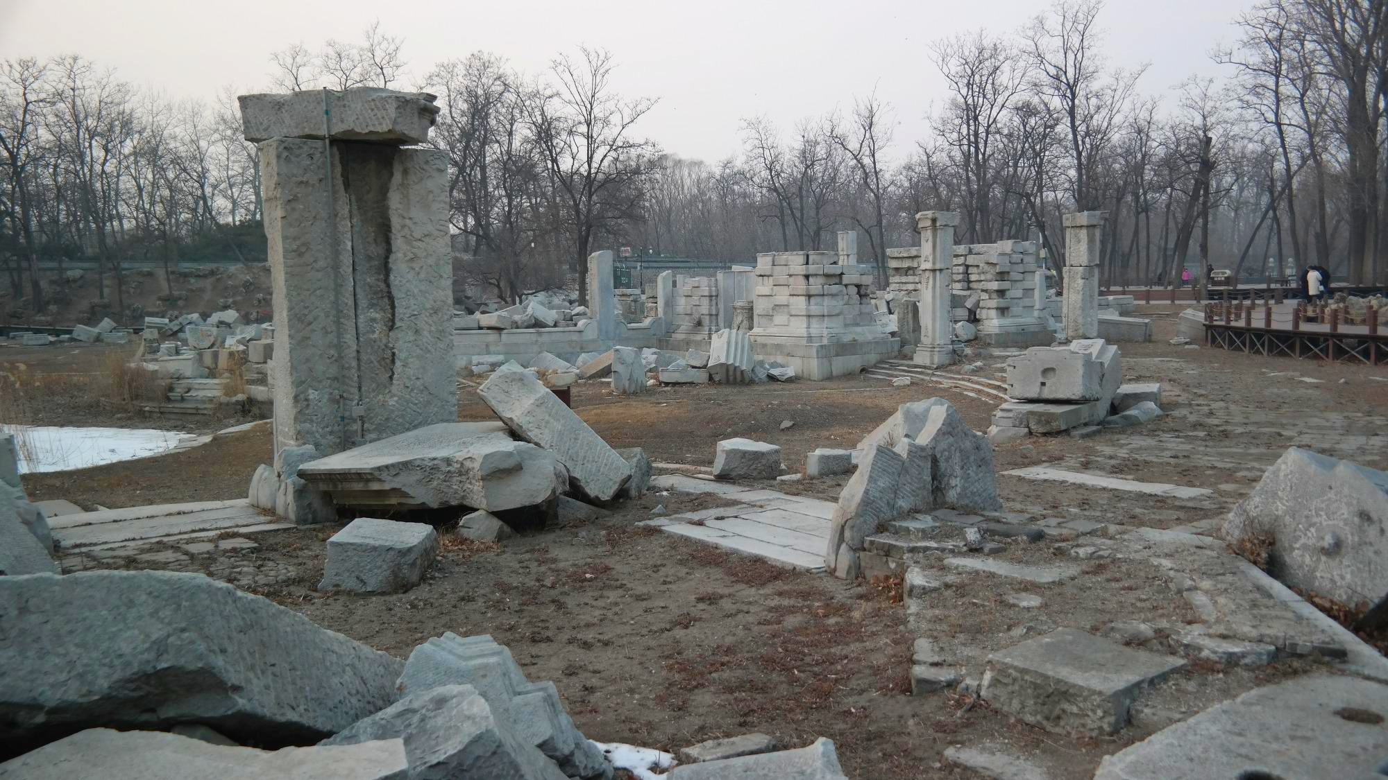 장춘원 안에 있는 서양루경구(西洋楼景区, 씨양로우징추). 이곳이 옛날 청나라 시대에 서양식 건물들이 있었다가 아편전쟁 때 폐허가 된 곳이다. 추가 입장권 구매가 필요하다. 1인당 15위안.