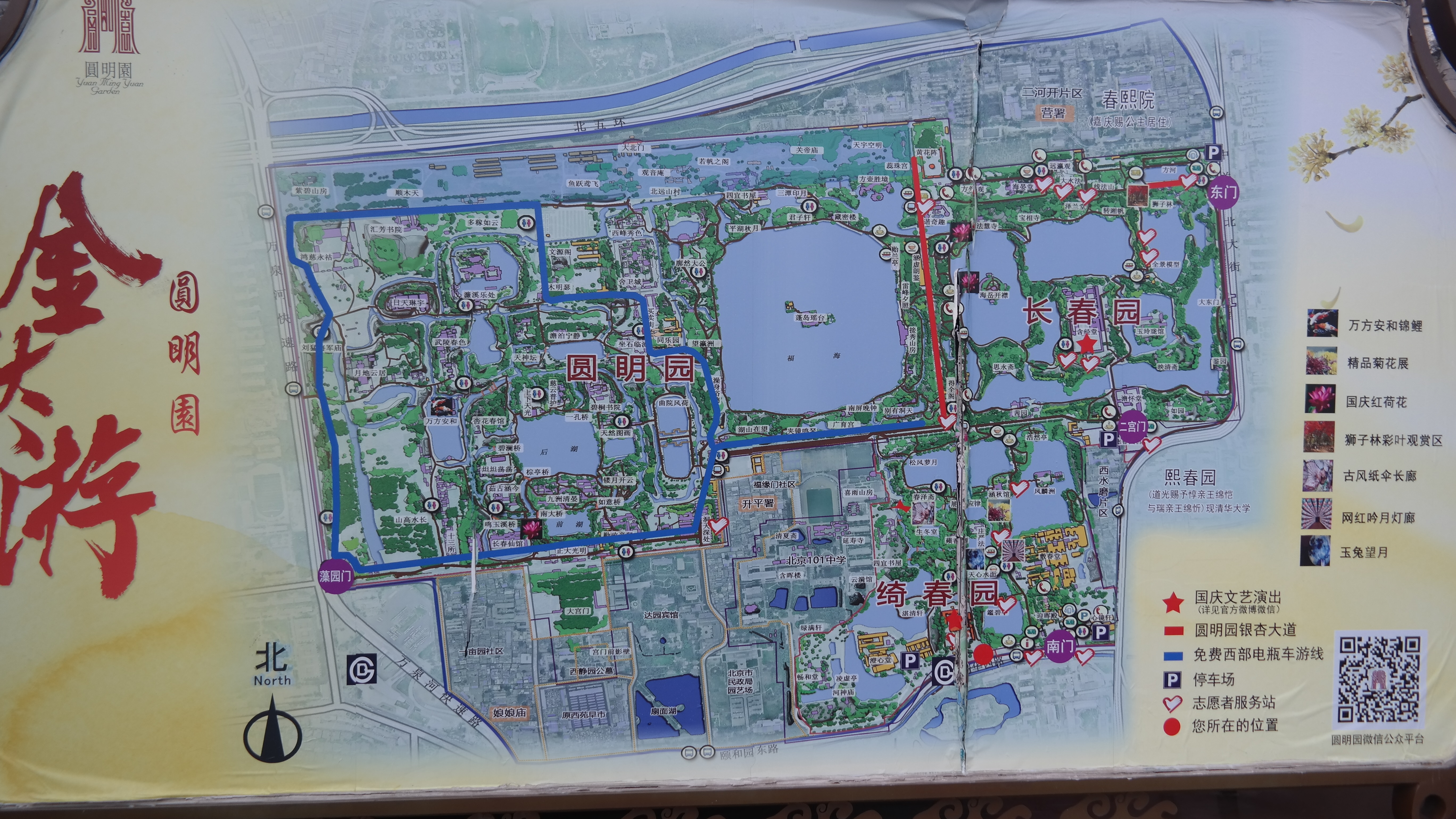 한국의 창덕궁, 창경궁, 경희궁, 경운궁 등은 조선시대의 왕의 법궁인 경복궁에서 떨어져 있는 별채의 궁궐인 이궁(離宮) 혹은 행궁(行宮)이었다. 비슷하게 중국의 자금성(紫禁城, 쯔진청)은 법궁이고 원명원( 圆明园, 유엔밍유엔)은 청나라 황제의 이궁이었다. 이 원명원은 이화원(颐和园, 이허위엔)처럼 자금성에서 서북쪽으로 13km정도 떨어져 있으며, 이화원에서 동북쪽으로 2km정도 떨어져 있다. 이화원에서 가깝기 때문에 이화원을 본 후 같이 보면 좋을 듯 하지만, 이화원도 그렇고 이 원명원도 매우 크기 때문에 하루에 두 곳을 모두 본다는 것은 쉽지는 않았다. 이렇게 큰 줄 알았다면 이틀에 나눠서 보는게 좋았을 것 같기도 하다.