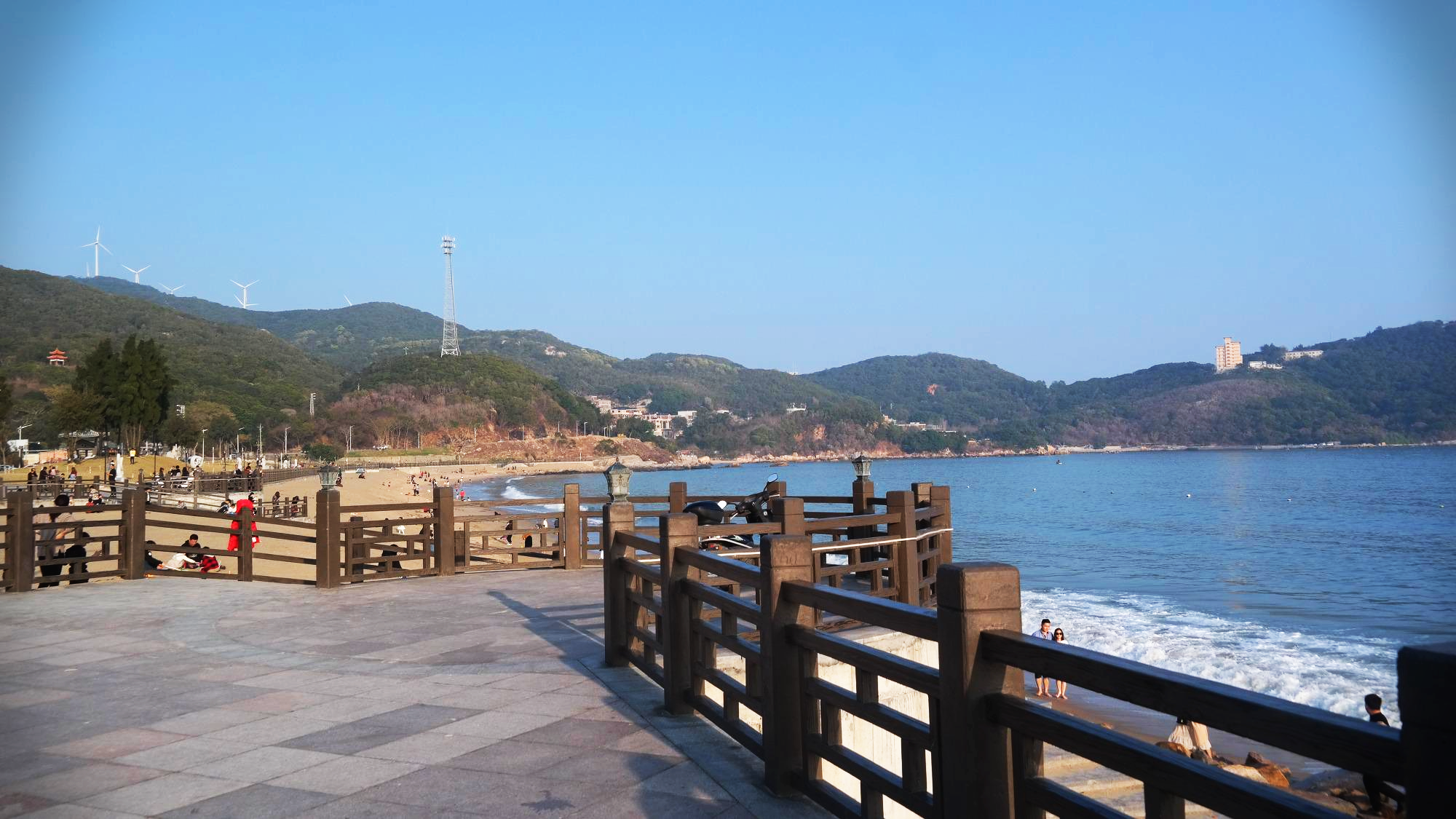 정말 해안관광지같은 동네인데, 비슷한 남중해를 끼고 있는 혜주의 바다풍경이 생각나는 곳이다. 근처에 오토바이를 대여할 수 있는 곳이 있어서 전기오토바이(电动车)를 대여하였는데, 오토바이 관리가 너무 안되어 있어서 좀 많이 실망스러웠다. 타이어압 및 배터리 관리 등 전기오토바이의 가장 기본적인 것들 조차도 관리가 안되다 보니 승차감은 물론이고 실제 운행가능 거리가 20km정도 밖에 안되는 것이었다. 속도도 20km/hr밖아 안나와 이걸로 섬을 일주한다는 것은 사실상 불가능하였다... 어쨌든 이미 대여는 했으니 전기오토바이를 타고 출발하였다.