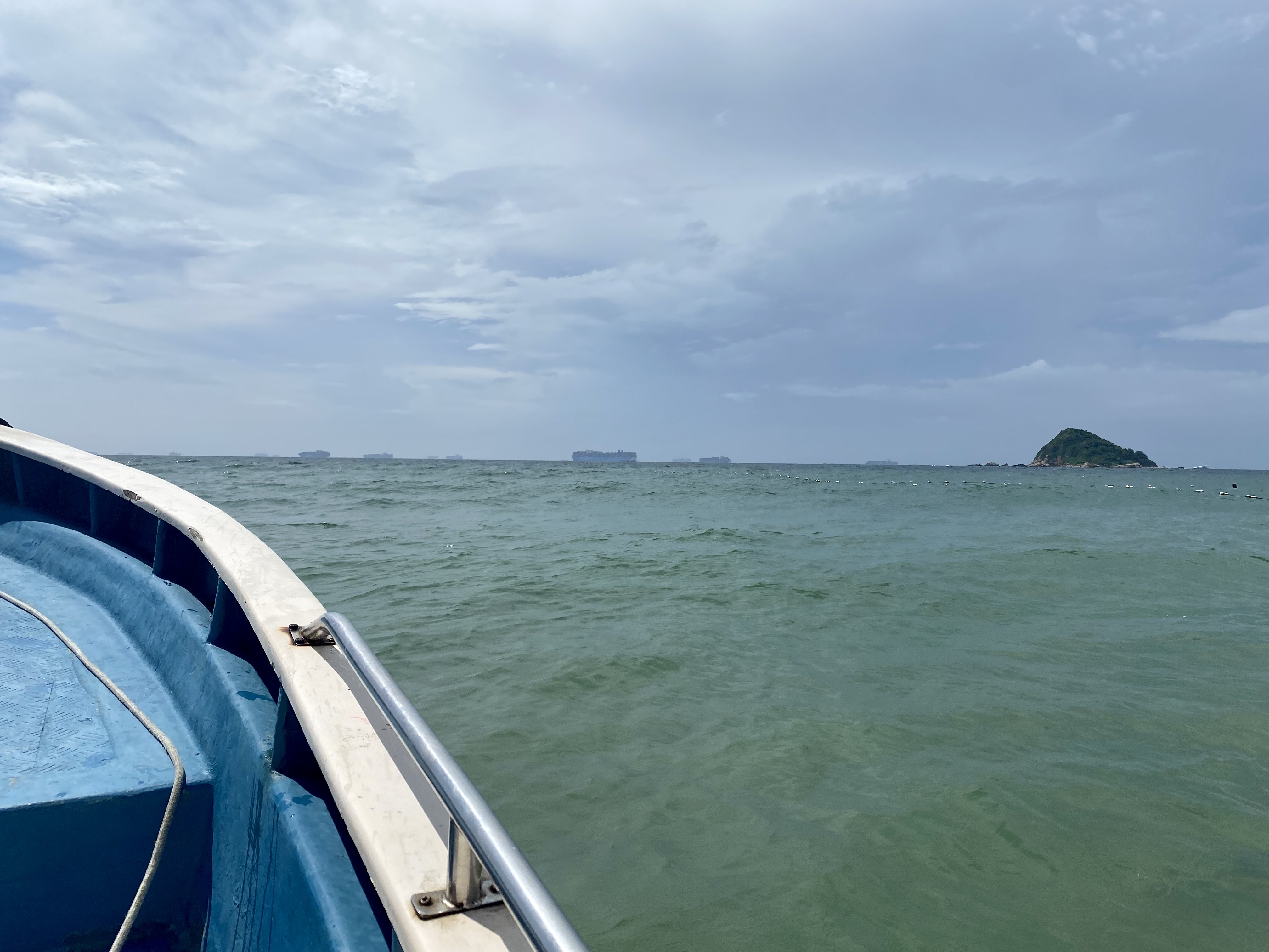 이 보트를 타고 가는 것인데, 사진에서 오른쪽에 보이는 작은 섬이 우리가 갈 섬이다. 보트 비용은 인원수당 계산하지 않고 횟수로 계산하기 때문에 1명이 가던 6명이 가던 동일한 가격이다.