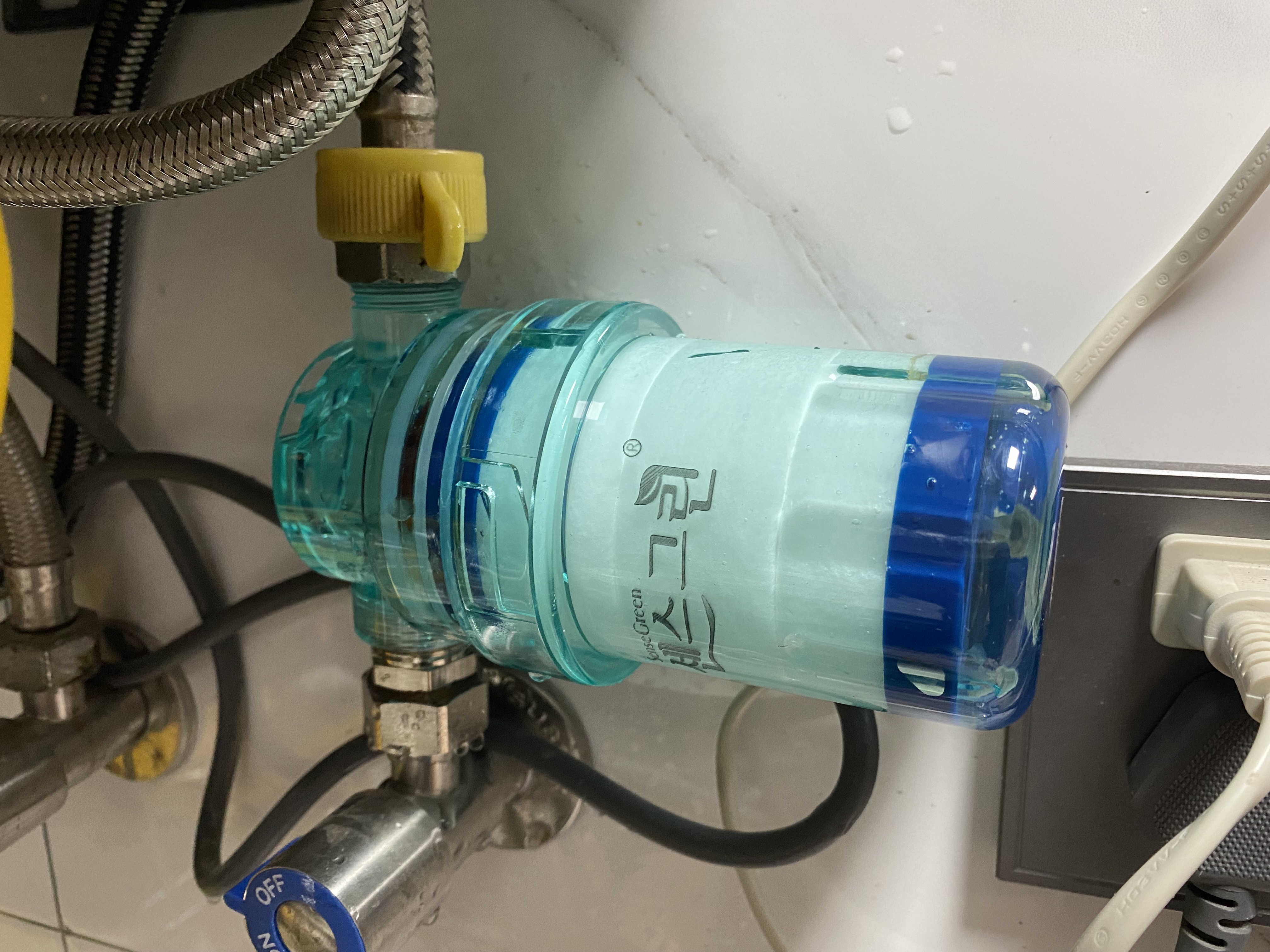 보일러에 들어가는 물과 베란다에서 사용한 물에 각각 설치. 얘네는 새로 설치하자마자 사진을 찍은 것이라서 매우 깨끗하다.