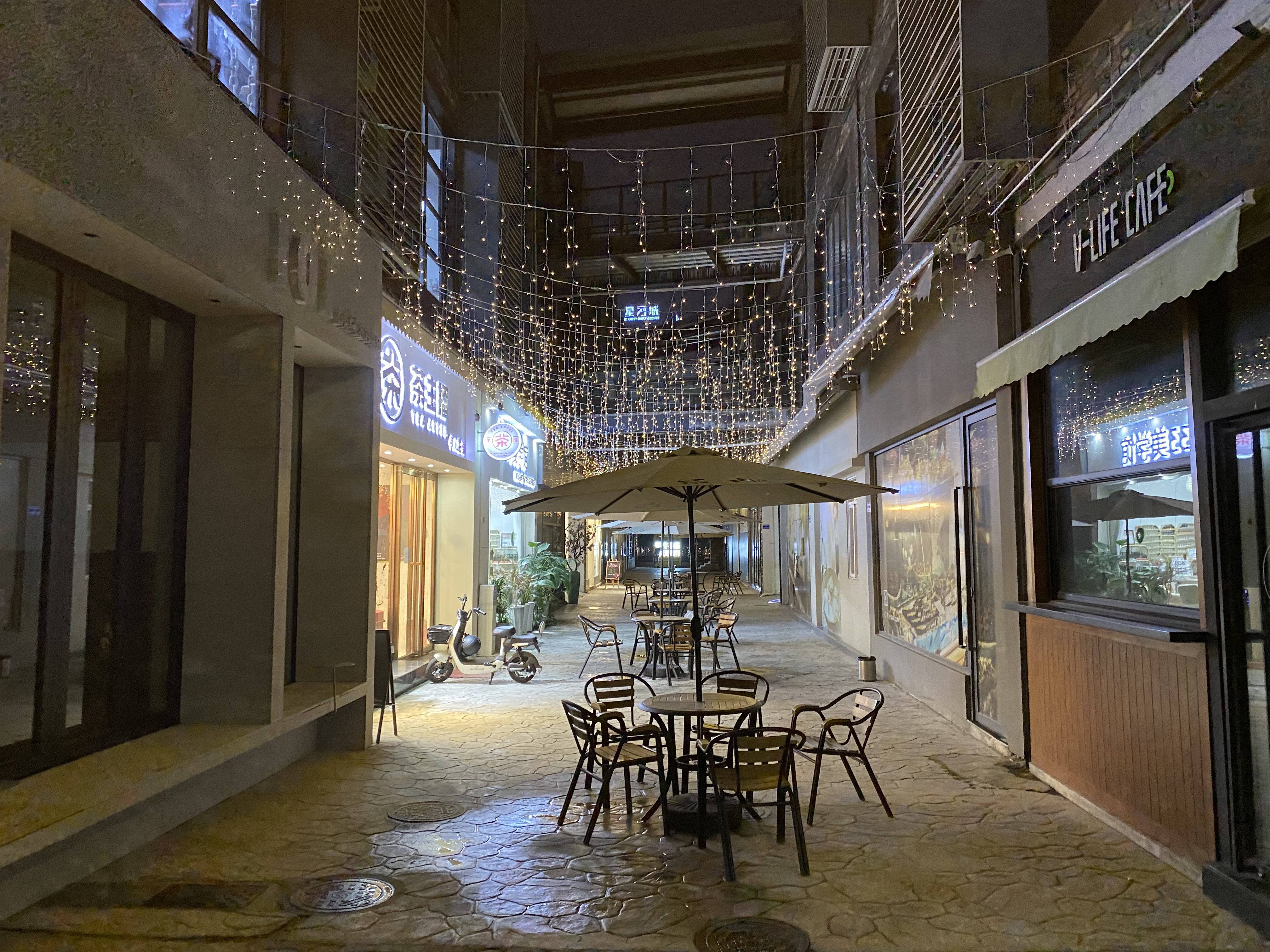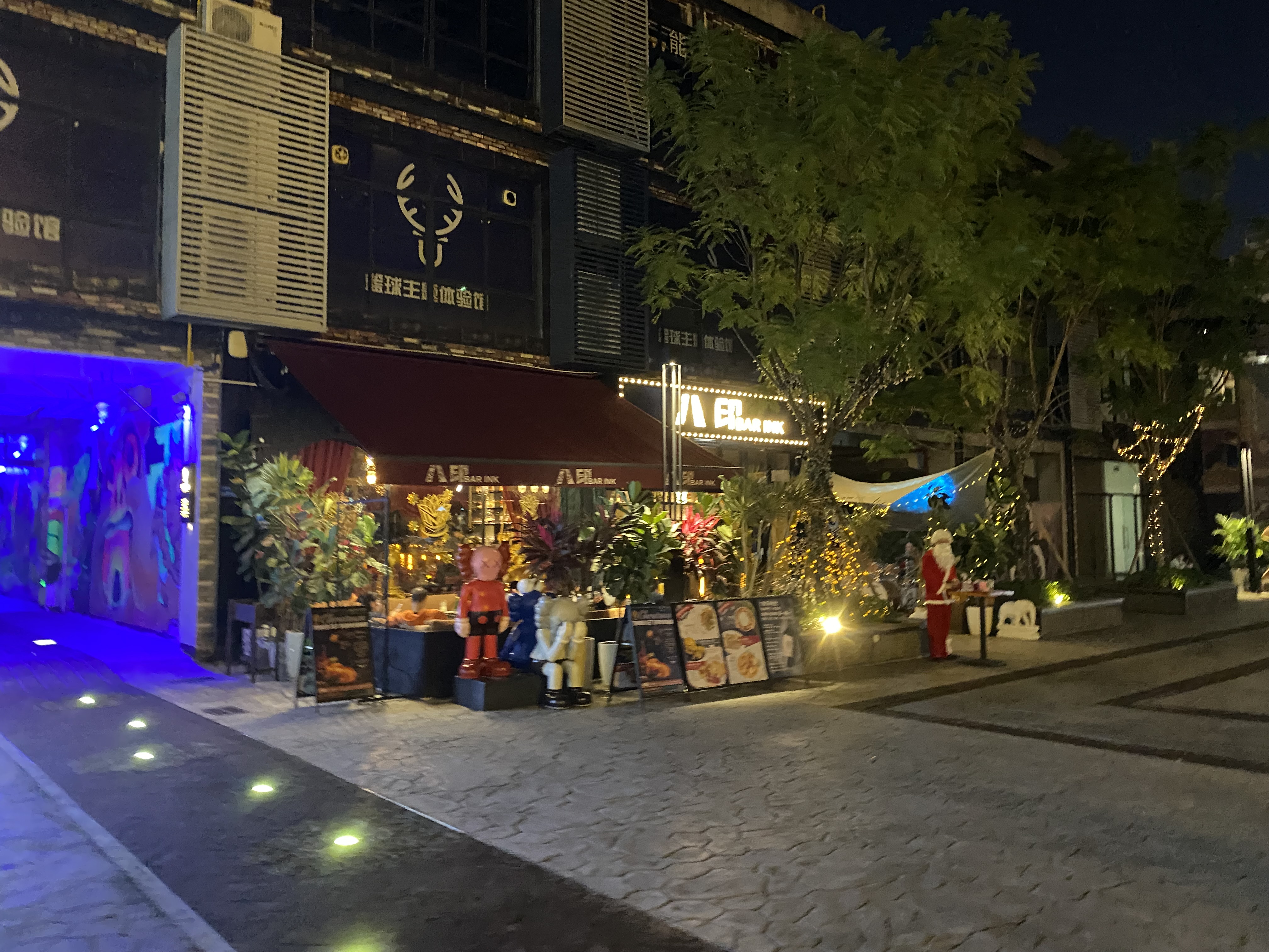 보통 중국의 먹자골목은 노점상들과 작은 상점들이 많아서 약간 야시장 같은 느낌이 많이 나는데, 새로 생긴 이 곳은 한국의 카페거리 같은 느낌이다. 동관 동청지역에 사는 사람이라면 다들 알만한 싱허청(星河城, 성하성)의 건너편 약 600m길이의 이 골목은 원래 작은 공장들이 있던 곳이었다. 이 곳 동관에 처음 왔었던 8년 전만 해도 이 골목은 이미 문닫은 공장들이 있는 어둡고 왠지 우범지역 같은 골목이었다. 그래서 이름도 우스강공예루(乌石岗工业路, 오석강공업로)라는 공업단지길인데, 동청의 번화가 중 하나이며 괜찮은 아파트들이 많은 이 지역에 누군가 납치되어도 이상할 것 없는 그런 골목이 있다는 것이 신기했었다. 그러다가 2~3년전부터 갑자기 대규모 공사가 시작되더니 작년이었는지 올해 초부터였는지 그 모습이 완전 바뀌었다.