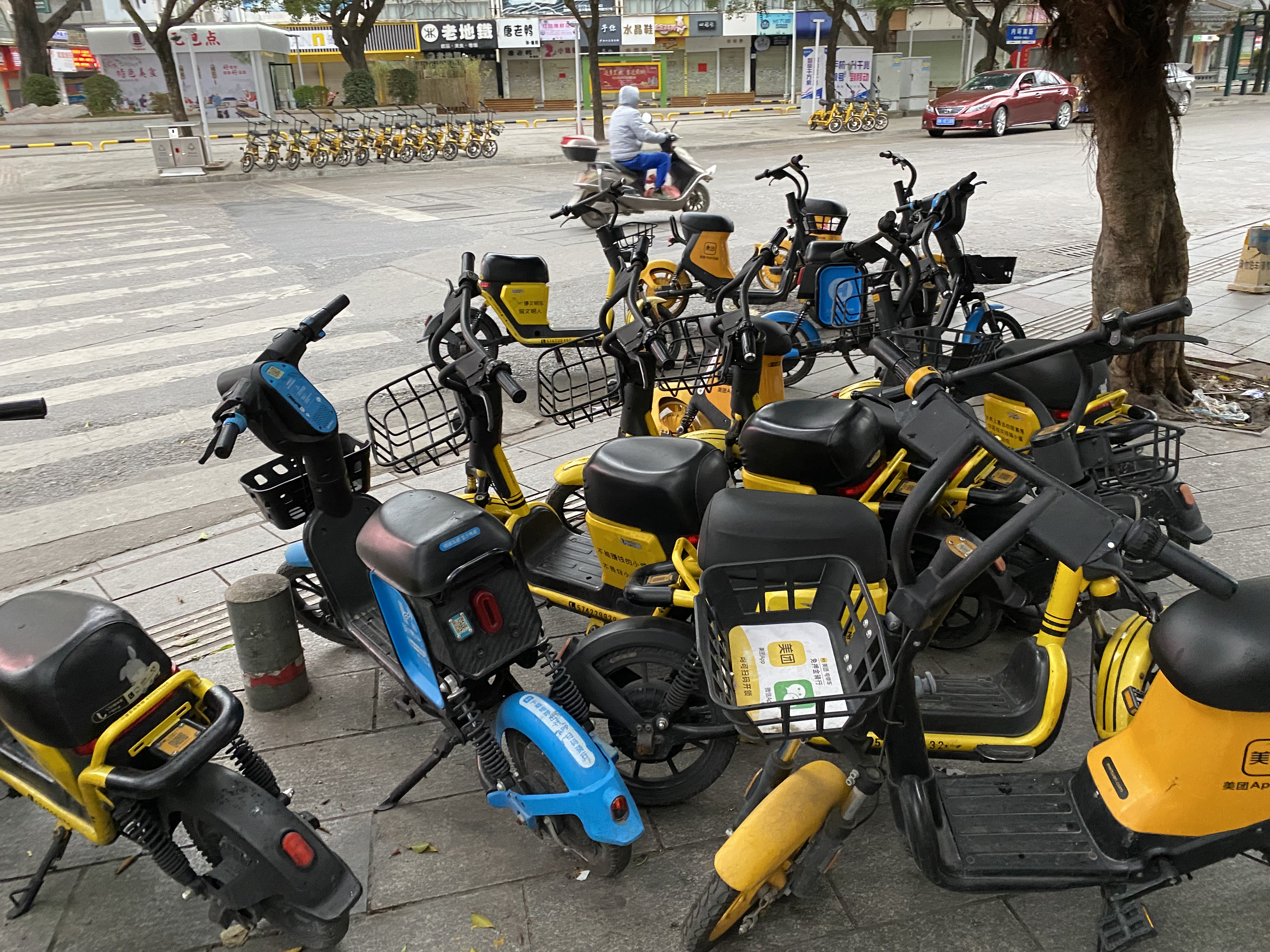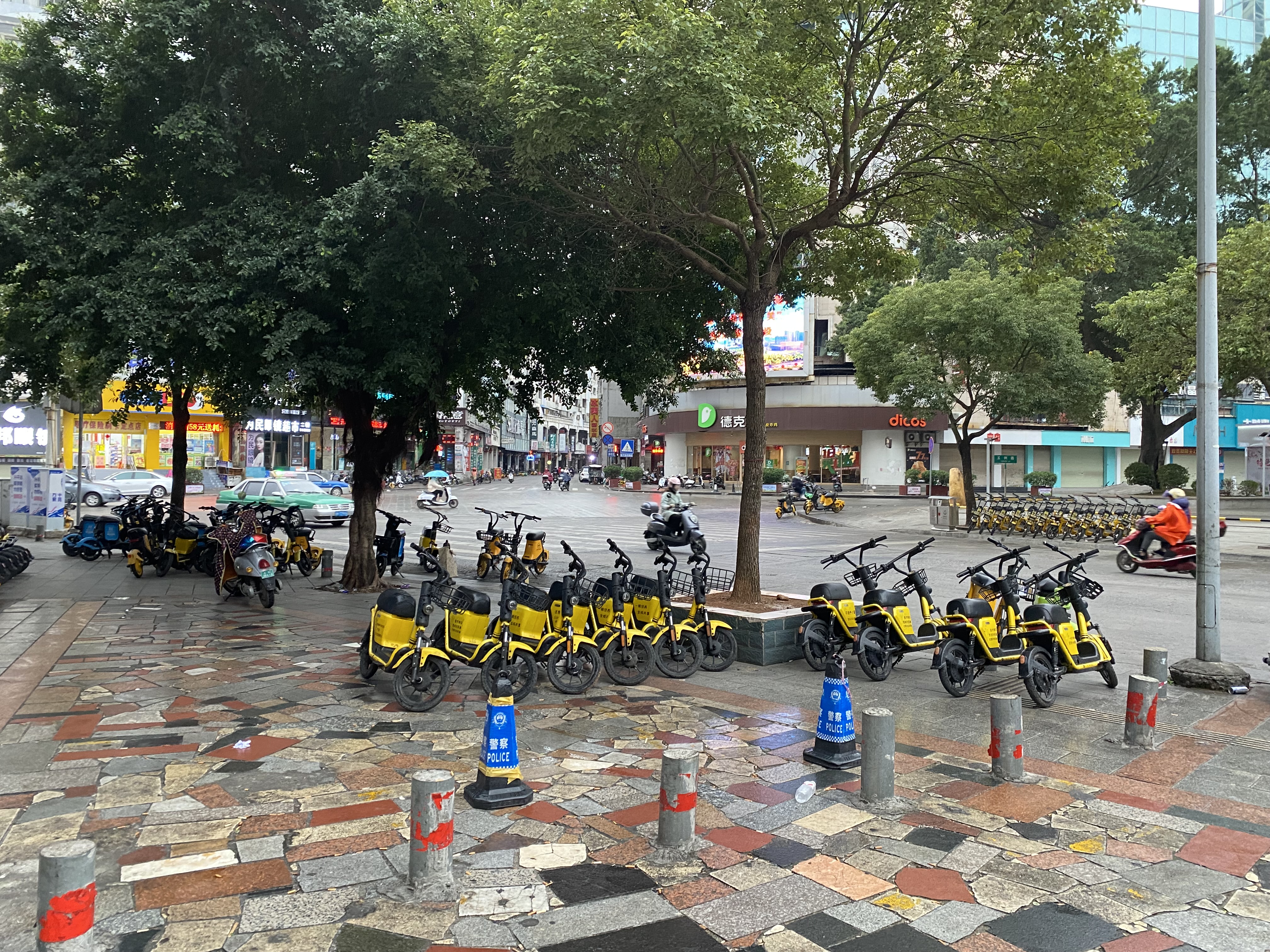 다음날 아침에 다시 강아지를 산책시키기 위해 길을 나섰다. 지도를 봐도 주변에 마땅히 산책을 시킬 만한 곳이 인민공원밖에 없어서 다시 한번 인민공원으로 향하였다. 어제 밤에는 엄청난 숫자의 전동스쿠터에 놀랐는데, 이 위린시에는 공유자전거는 없고 공유전기자전거만 있는 듯 하다.