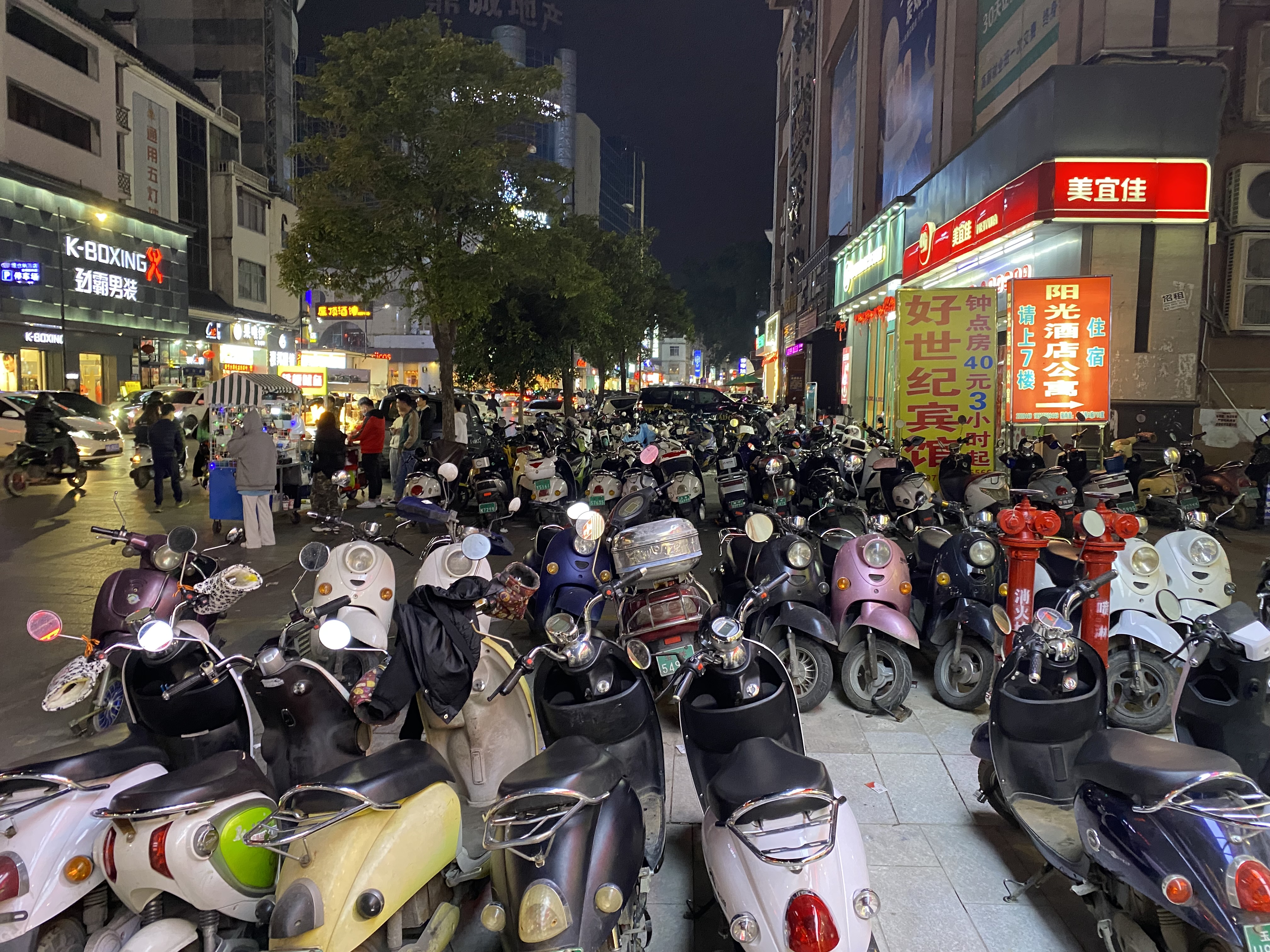 해가 떨어지기 시작할 때 출발하여 도착한 위린시. 가장 기억에 남는 것은 압도적인 숫자의 전동스쿠터들. 이런 스쿠터들은 교통법규를 거의 안 지키는데, 예약한 호텔이 있는 곳이 구시가인지 교차로에 신호등이 없다보니, 교차로로 주변이 완전 마비상태였다.