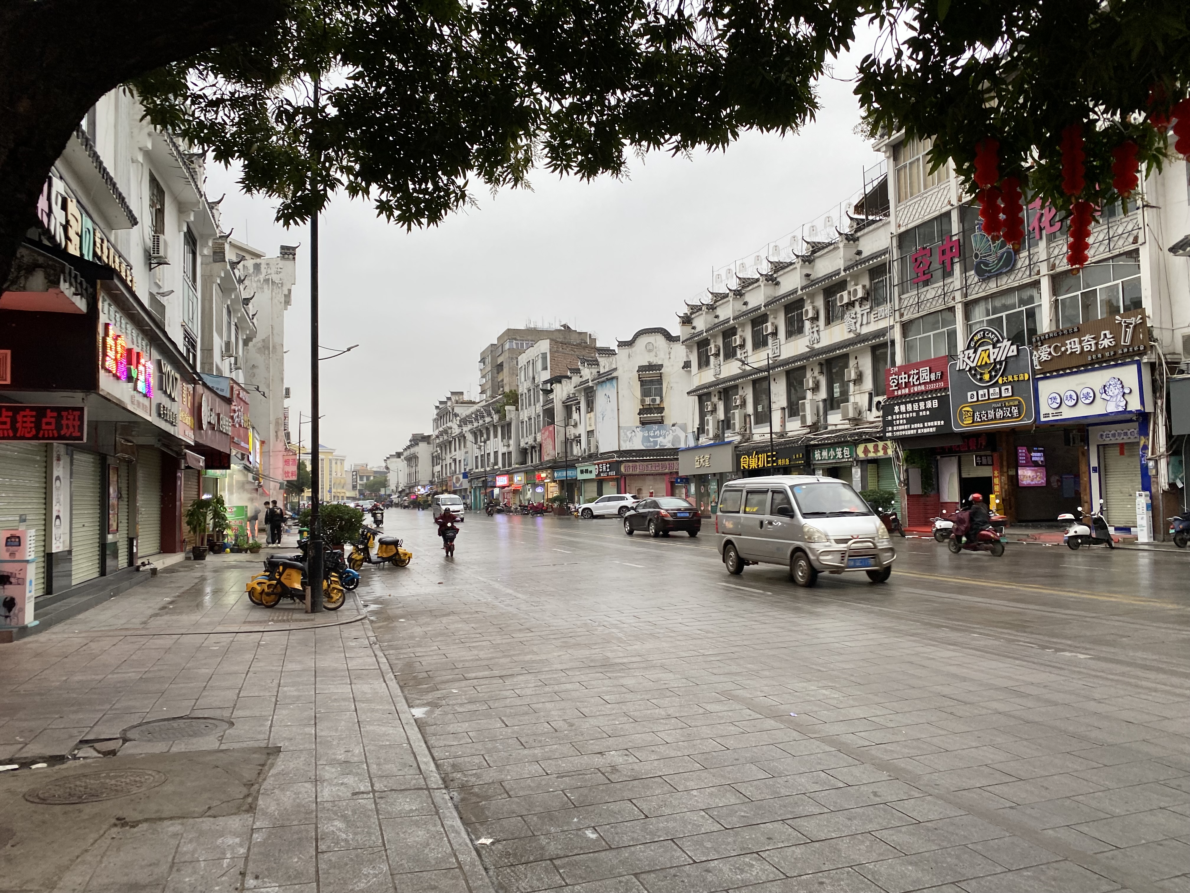 어제밤에 난리도 아니었던 거리가 비가 부슬거리며 오는 아침이 되니 꽤 한산해졌다. 왠지 광시 지방의 느낌이 나는 도시이다.