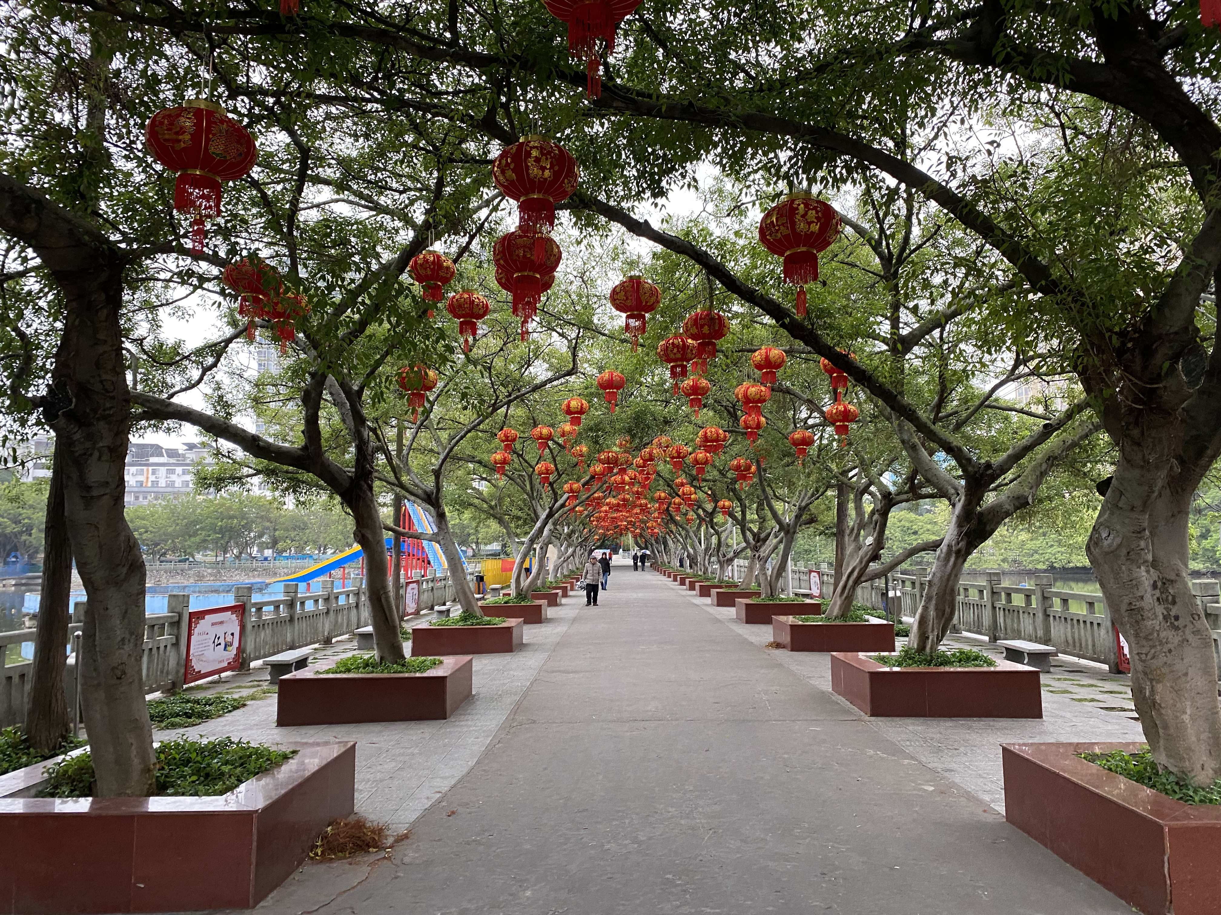 위린시 인민공원의 내부. 중국에는 거의 매 도시마다 인민공원이라는 공원이 있는데, 이 인민공원들은 예전에 중국이 개방하기 전이나 아직 사회주의나 공산주의 분위기가 많이 날 때 만들어서 그런지 공원들 중에서 별로 볼거리나 조경이 예쁘지 않은 공원이라 개인적으로는 잘 가지 않는다.