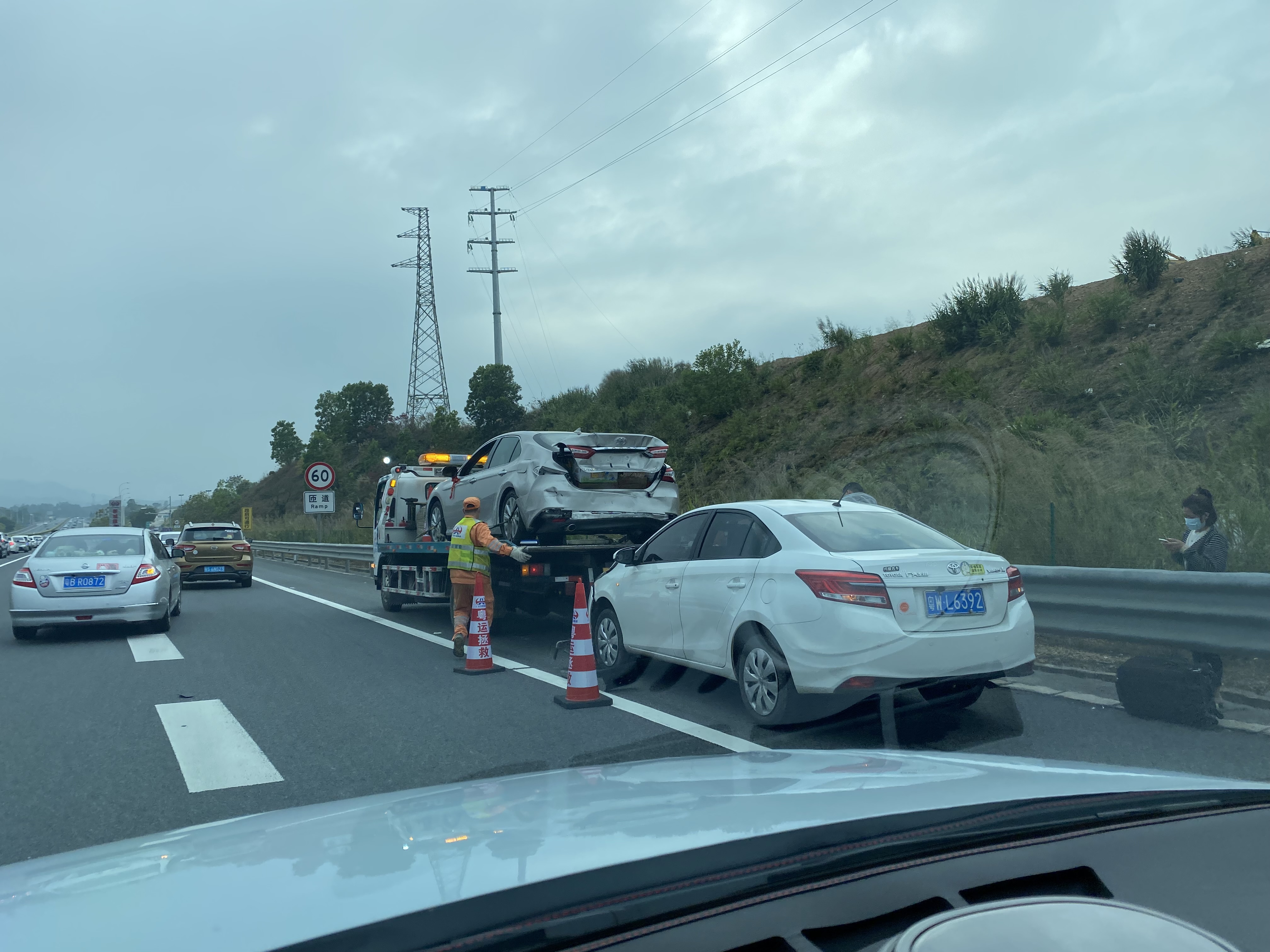 특이하게 중국 고속도로에서는 갓길에 세워서 차량을 수리하는 경우가 많다. 평소에 차량 관리를 안하는 것인지.. 이런 것은 중국 고속도로에서 30분정도마다 볼 수 있다.