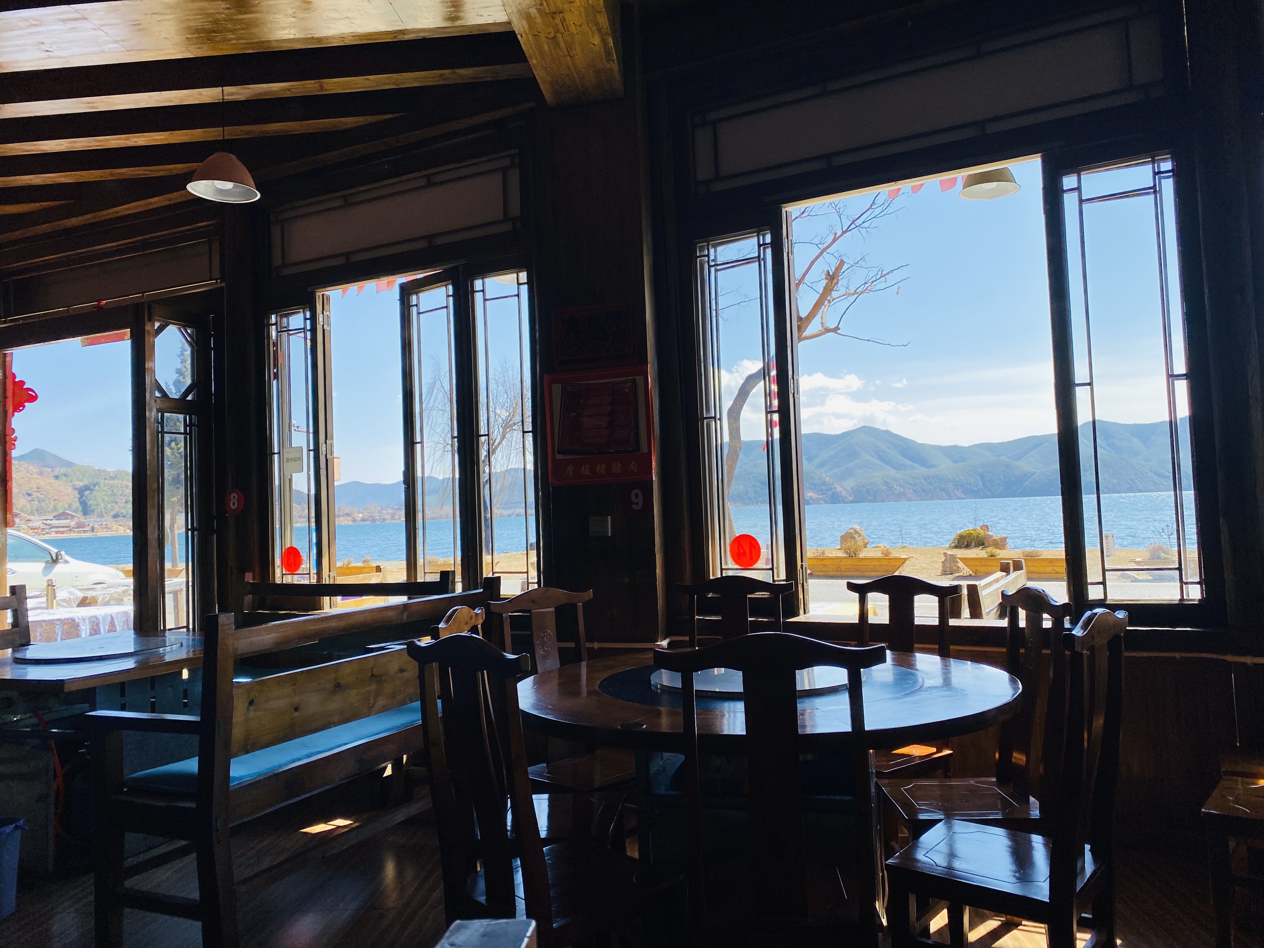 어디가 맛있을지 몰라서 그냥 아무곳이나 깨끗해 보이는 곳으로 들어왔다. 창밖으로 비치는 호수의 풍경이 멋지다.