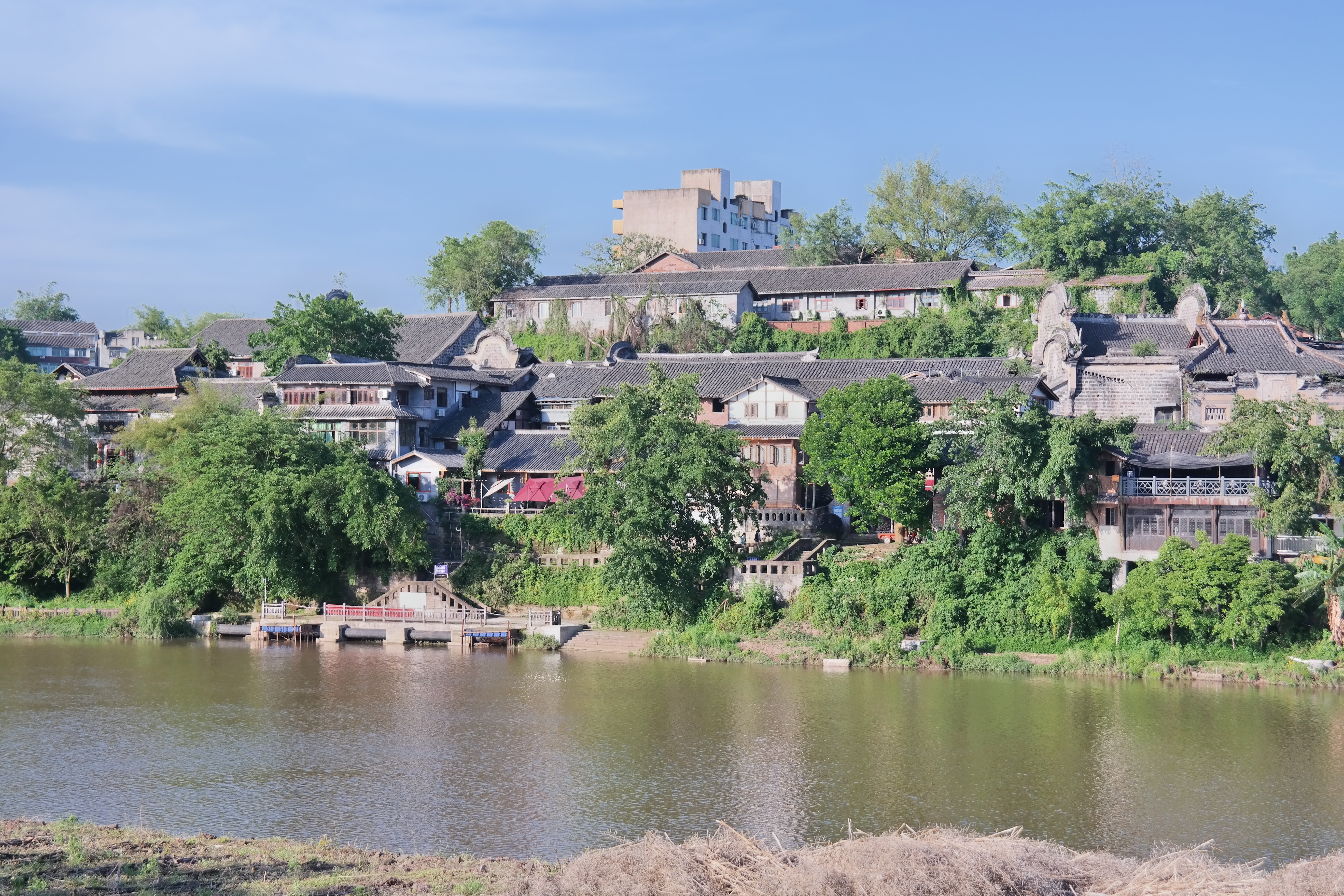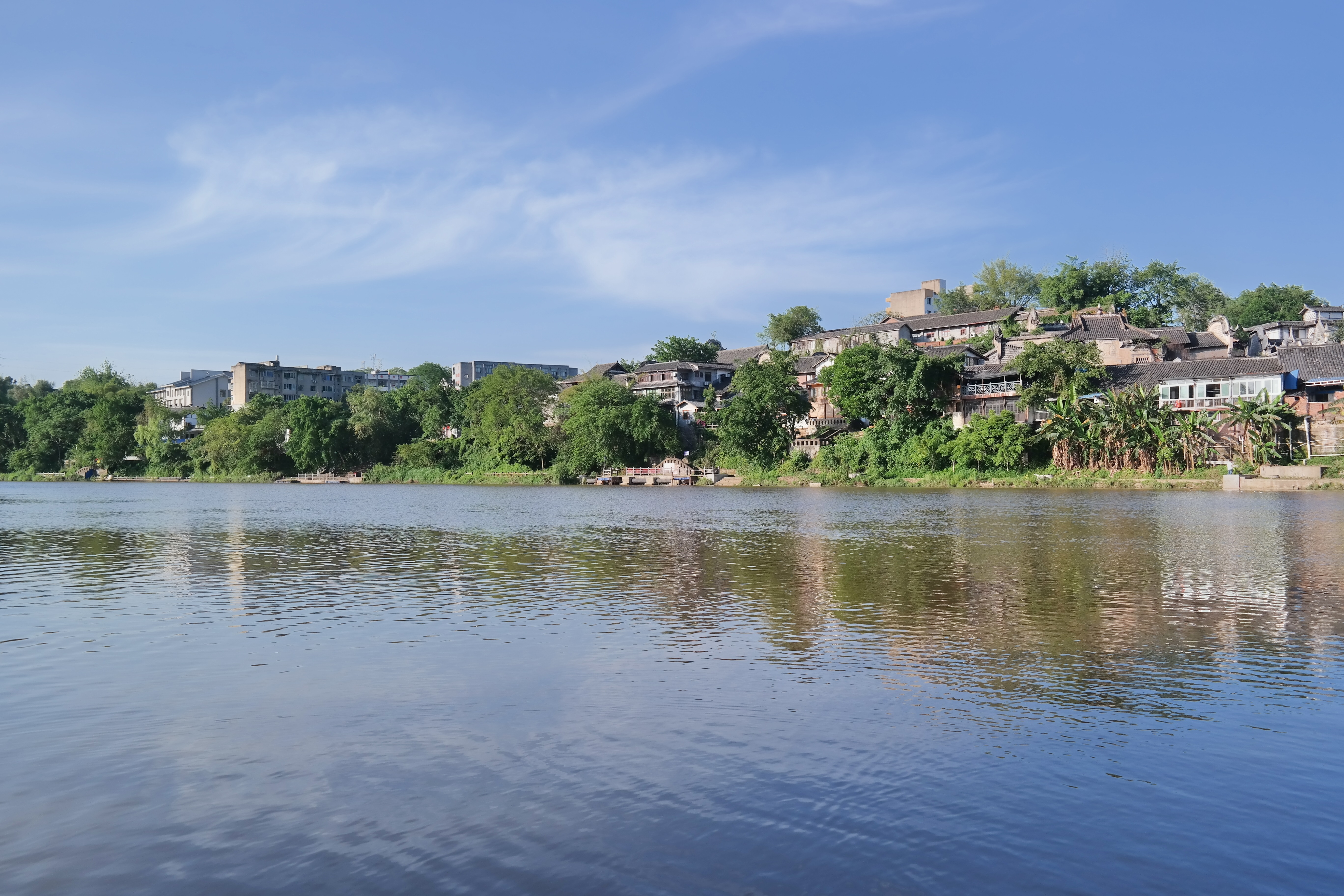 문을 나서면 예전에 소금을 실어서 각 지역과 외국으로 보내던 나서면 푸씨강이 나온다. 폭이 그리 넓지 않은 강인데, 나룻배에 할머니 한분이 계셔서 혹시 탈 수 있는 것인지, 어디 가는 것인지 물어보니 그냥 강 건너편에만 왔다갔다 한다고 했다. 강 건너에 뭐가 있는지 여쭤보니, 아무것도 없다고 하셨다. 한번 왔다갔다 하는데 중국돈으로 한사람당 2위안, 즉 350원정도라서 한번 타 보았다.