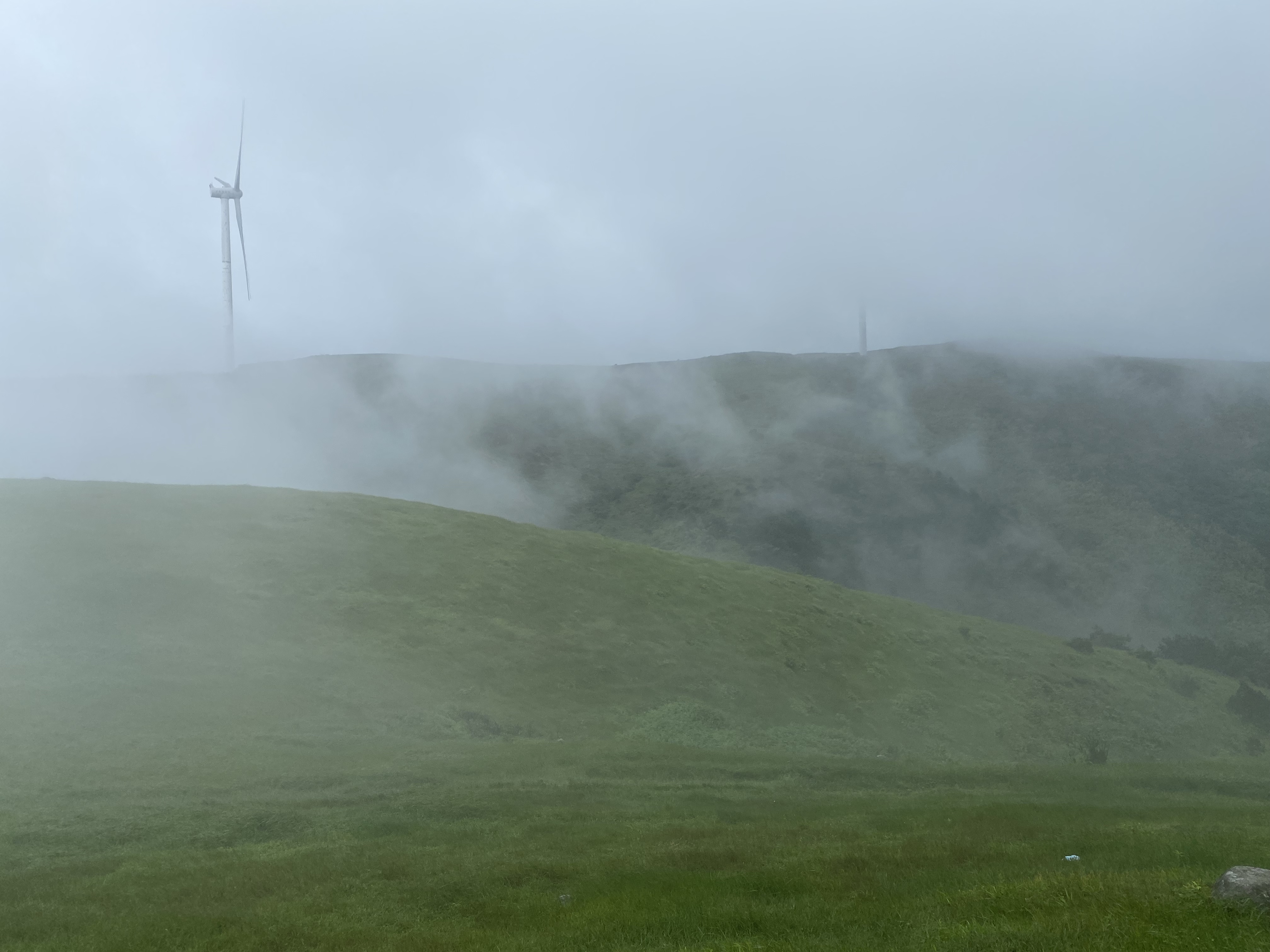 계속 웅웅하는 소리가 들려서 뭔가 했는데, 안개가 살짝 거치니 거대한 풍력 발전소가 나타났다.