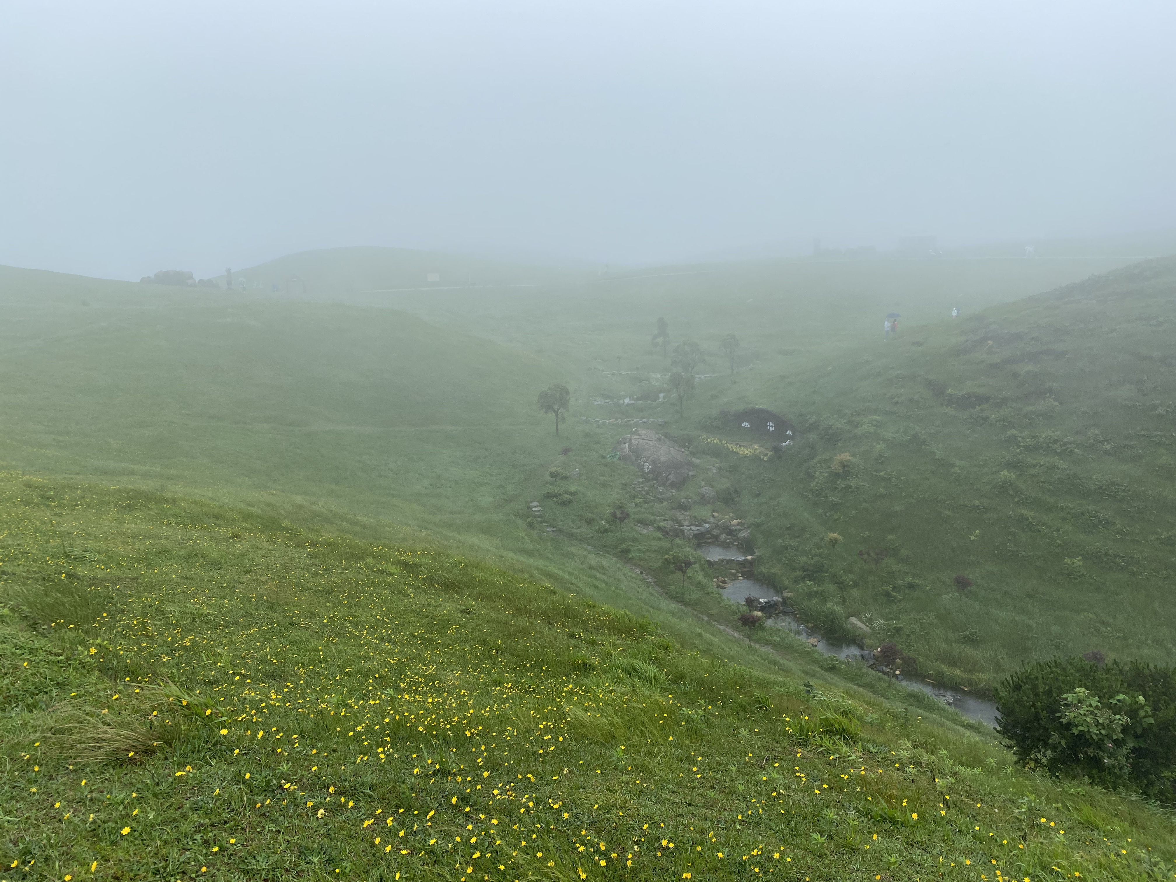 초원을 보기 힘든 중국의 화남지역에서 가장 근접한 초원지대이며, 주변이 원시림으로 둘러쌓여 있어 보존이 잘되어 있다고 한다. 가는 길에는 날씨가 그다지 나쁘지 않았는데, 산을 계속 올라 초원지대에 도착할 때 쯤에는 안개가 매우 짙게 끼기 시작하여 차 운전도 쉽지 않았다. 초원 입구에 도착하여 주차를 하니 때는 거의 10m 앞도 안 보이고 비도 조금씩 내리기 시작하여 돌아갈까 고민하였지만, 이미 여기까지 왔으니 그냥 돌아다녀 보기로 하였다. 게다가 애완동물도 같이 출입이 가능하기 때문에 날씨가 다시 좋아지기를 기대하며 발권을 하고 입장을 하였다.