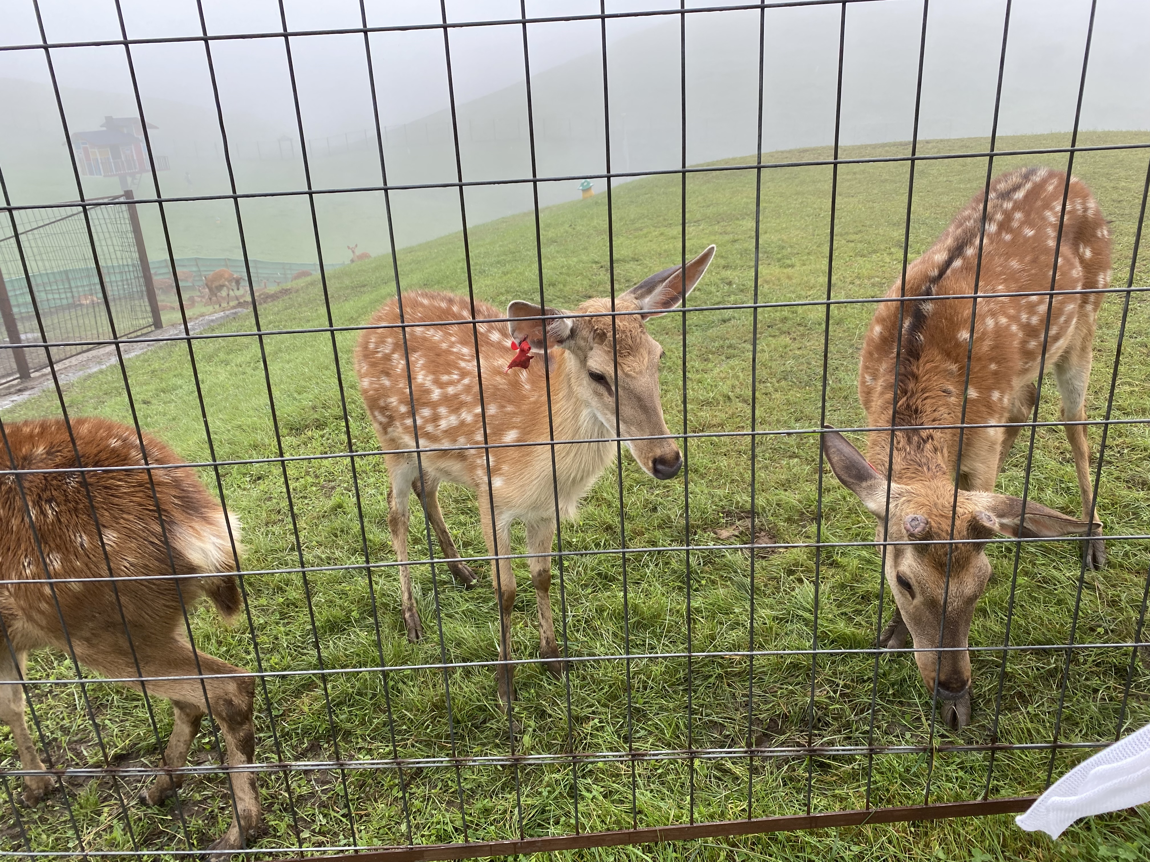 입구 근처 언덕에 사슴농장도 있는데, 사슴들이 강아지에게 매우 큰 관심을 보이면서 모여들었다.