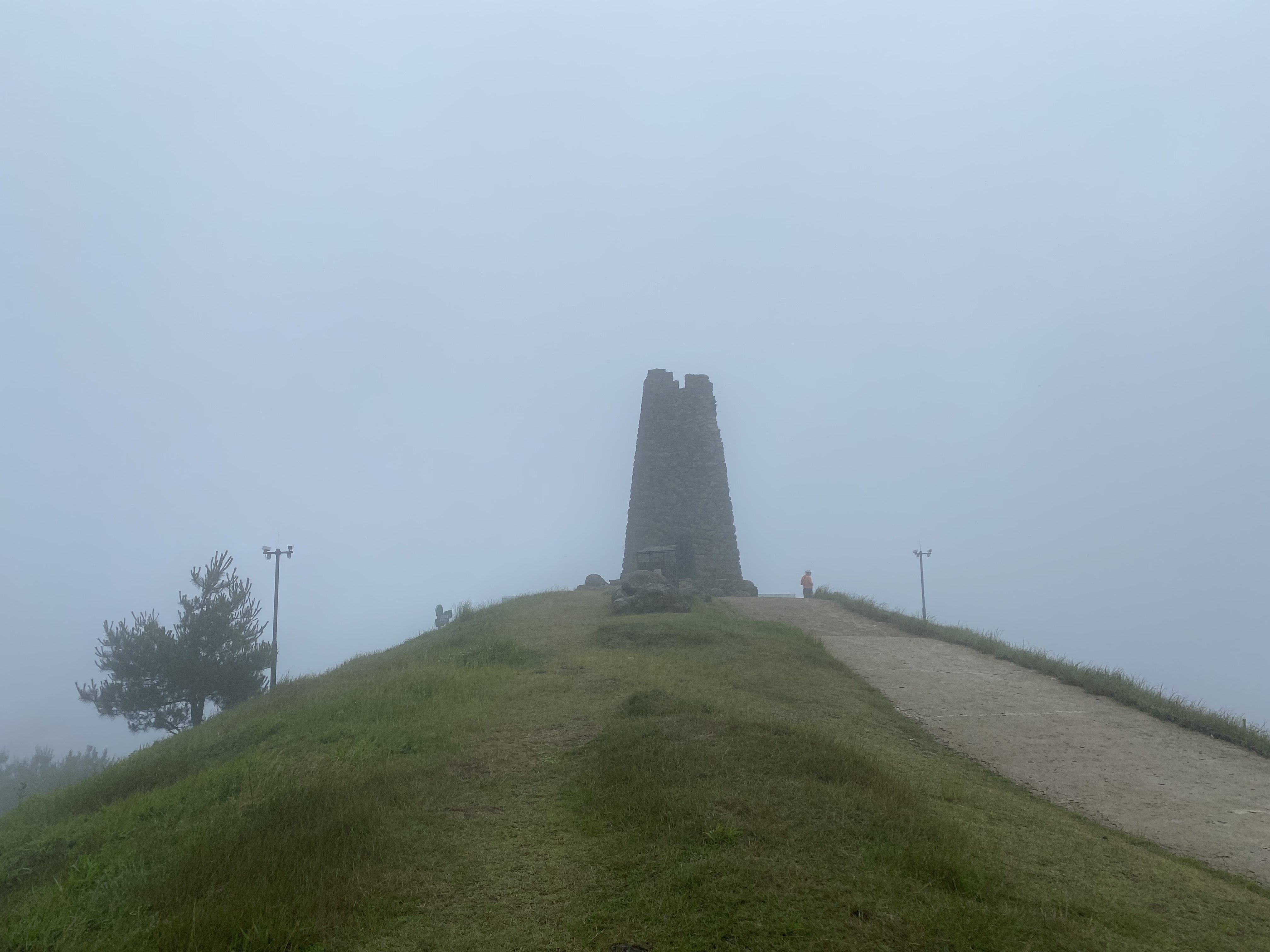 그 앞에는 전망대가 있지만, 안개가 끼어 있으면 아무것도 보이지 않는다.