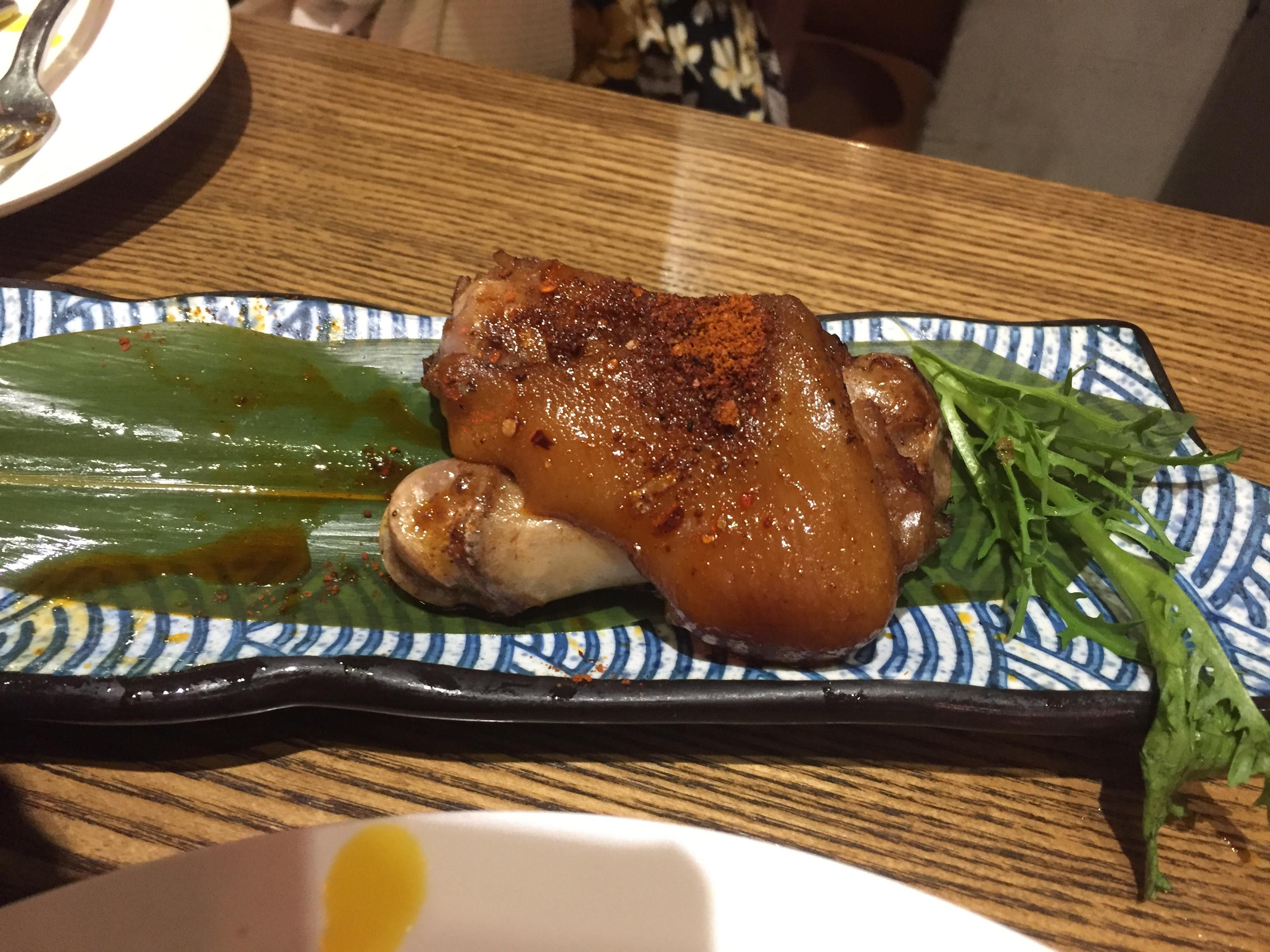 한국에 돼지족발 음식이 있듯이, 중국에도 돼지족발 음식이 있다. 다만 한국의 족발은 돼지족발을 손질 후 양념에 삶은 것인 반면, 돼지족발 음식은 삶은 후 다시 그릴에 굽는다. 그래서 음식 이름도 구운돼지족발이라는 카오주티(烤猪蹄)이다. 굽다라는 뜻의 카오(烤)와 돼지족발이라는 뜻의 주티(猪蹄). 한국의 족발은 살을 다 바르고 잘라서 나오는 반면, 카우주티는 돼지족발이 통째로 나온다. 이것을 손을 잡고 (보통 일회용 비닐장갑이 같이 나온다) 갈비를 뜯듯이 족발을 뜯어먹는 것인데, 예상했던 것보다 훨씬 맛있다. 족발을 손으로 잡고 먹는 방식이다보니 꼭 음식점이 아니라 길거리 노점상에서도 파는 것을 볼 수 있다.