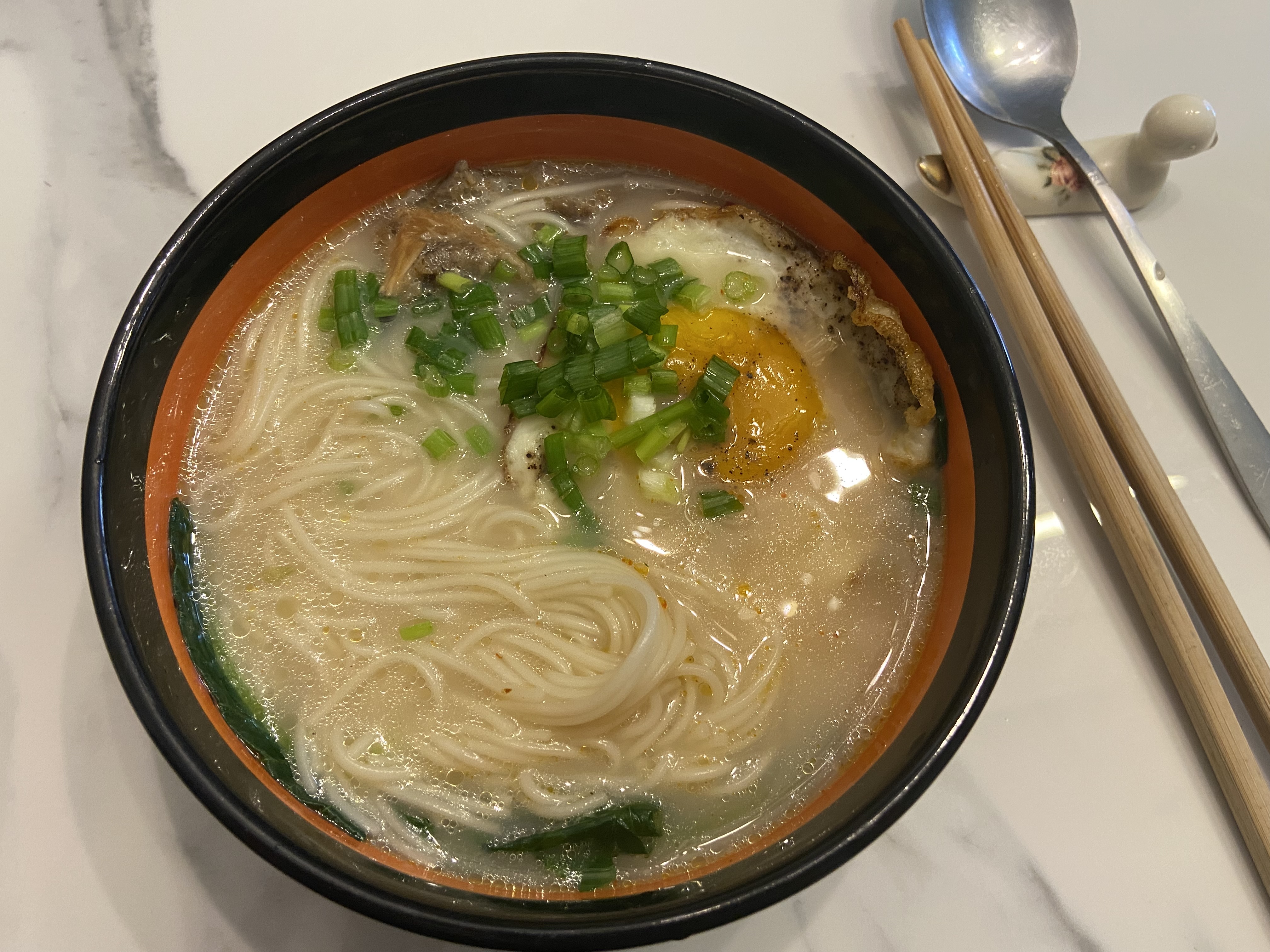 한국에 한우사골 설렁탕이 있다면 중국에는 주자오미엔(猪脚面)이 있다. 한우 사골을 우려내듯이 돼지 족발을 우려내어 만든 국물에 국수를 넣고 삶으면 되는 광동음식이다. 한국에서는 사골국물을 만들때 소뼈를 사용하지만, 중국에서는 거의 돼지뼈를 사용한다. 소뼈를 우려내서 먹는 문화가 없다보니 소뼈는 거의 버리는데, 그래서 정육점에서 소뼈를 사려고 하면 특이하게 쳐다보면서 엄청 싸게 살 수 있다. 사실 정육점에서 소뼈를 구하는 것도 쉽지는 않은데, 살을 발라서 뼈는 바로 버리다보니, 미리 정육점에 부탁해서 버리지 말고 모아달라고 해야 구할 수 있다. 중국인들 입장에서는 버리는 뼈를 돈주고 사겠다고... 예전에 캐나다에서는 소뼈나 돼지뼈는 버리고 대신 닭뼈로 사골국을 만드는 것을 보고도 신기했는데, 비슷하기는 해도 나라마다 약간의 차이가 있다는게 흥미롭다.