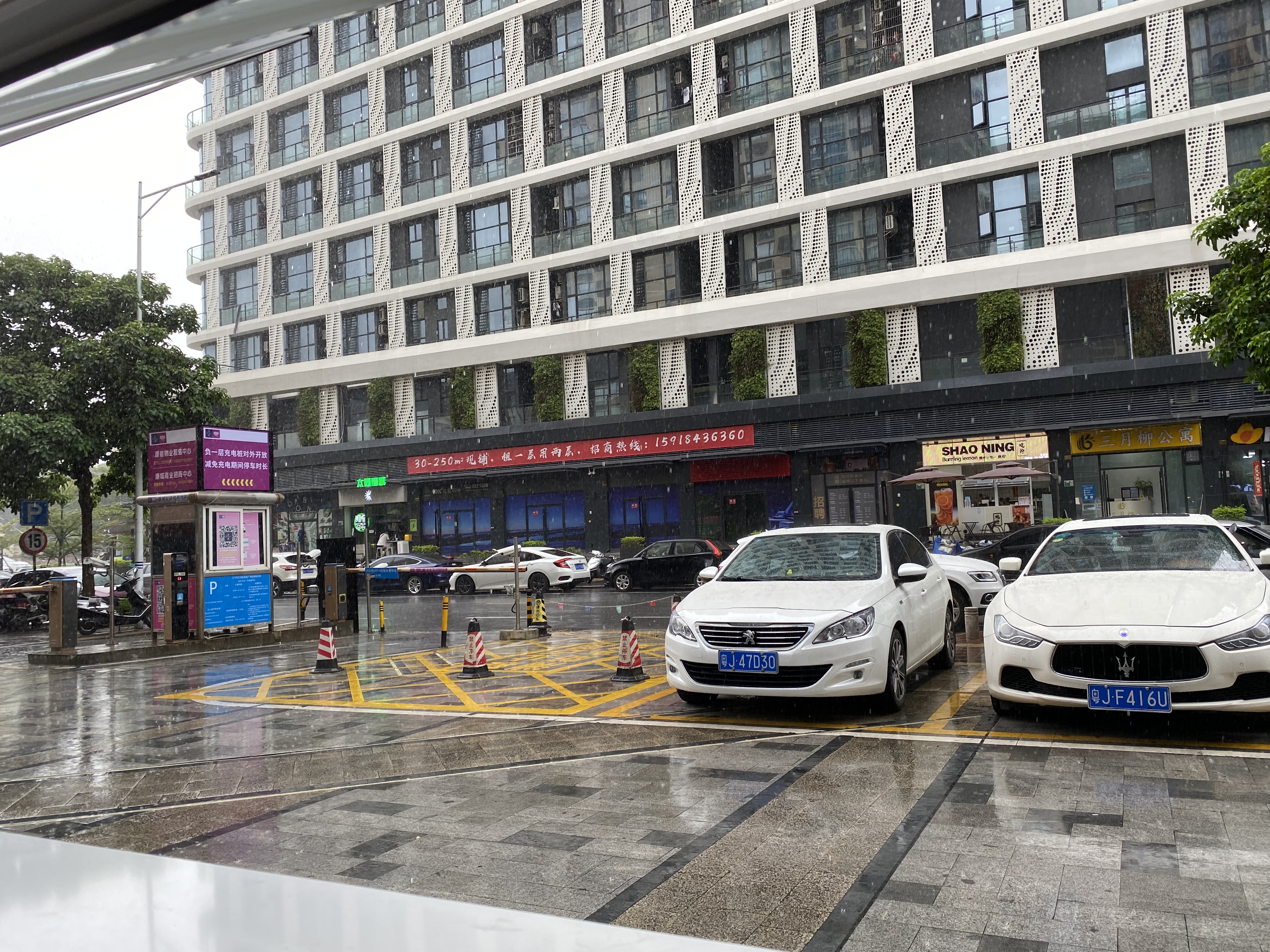 잠시 건물 밑에서 억수같이 쏟아지는 비를 피하는 중.