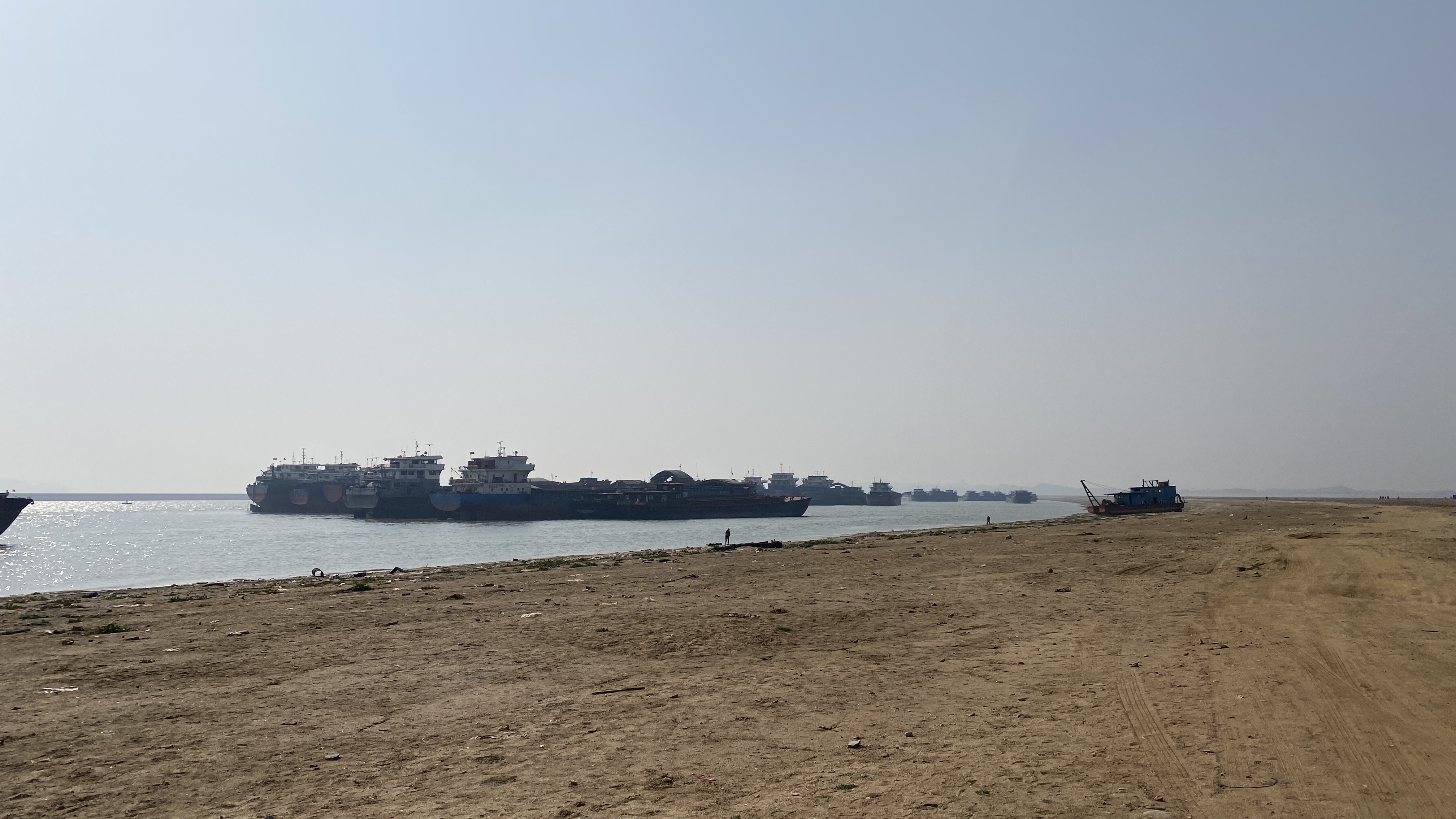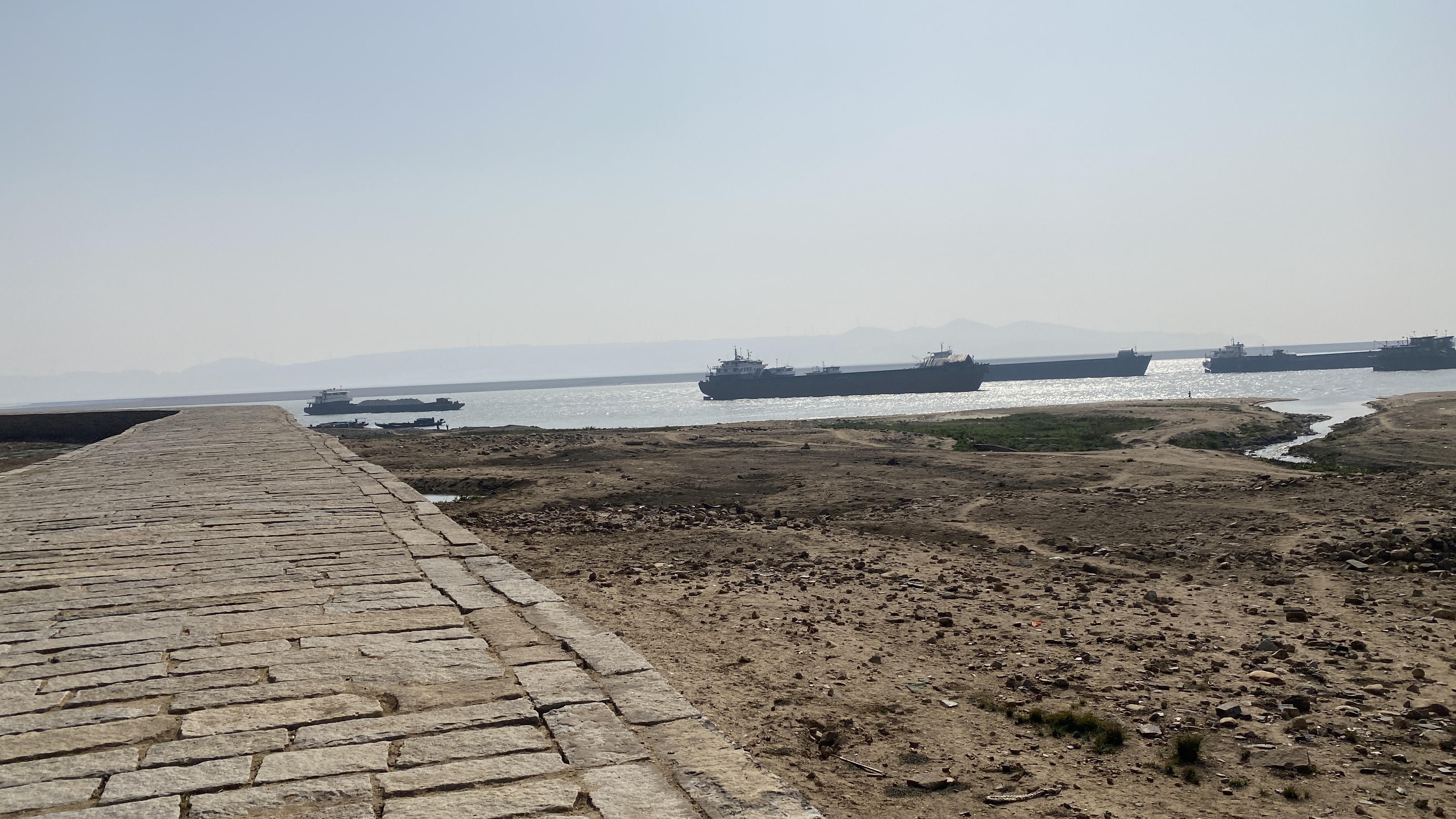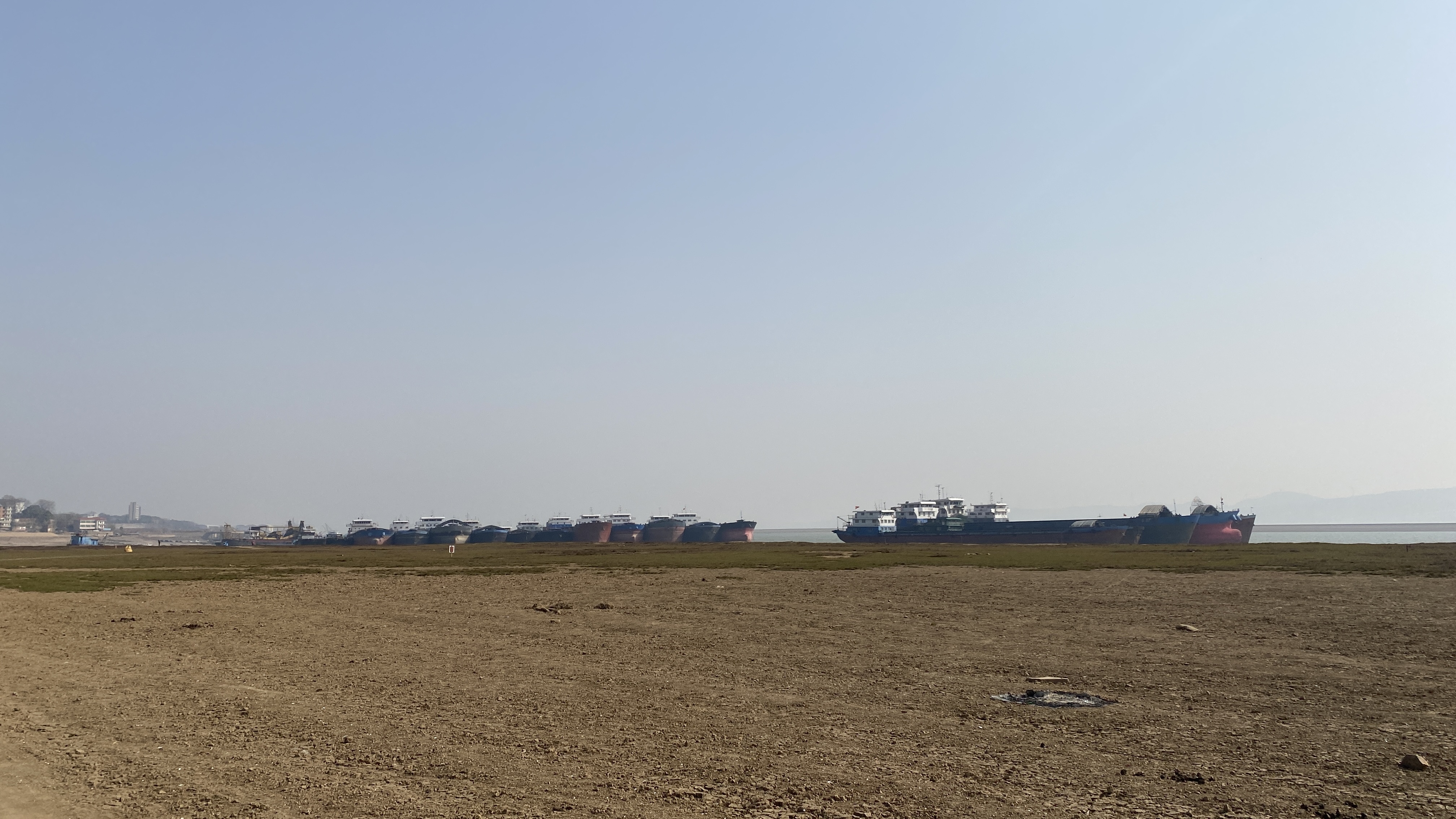 건조한 모래사장 옆으로는 창장(长江, 장강)을 떠다닐 커다란 선박들이 꽤 많이 정박해 있었다.