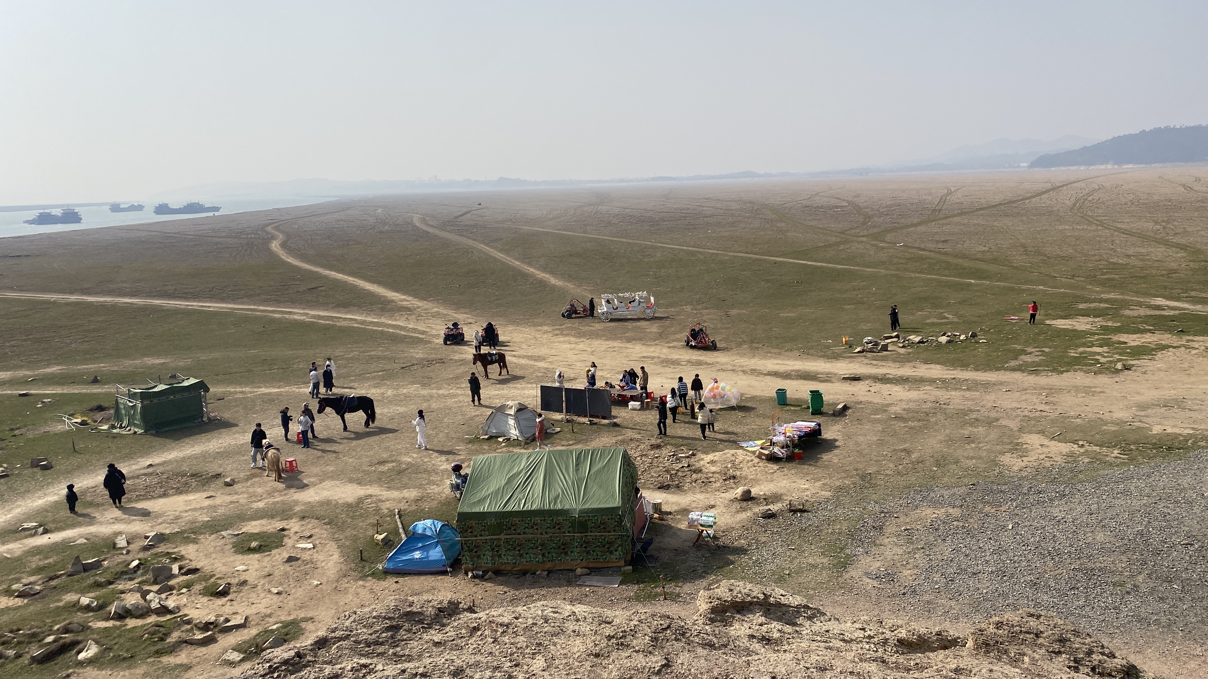 바닥이 드러난 호수에서 말을 탈 수도 있다.