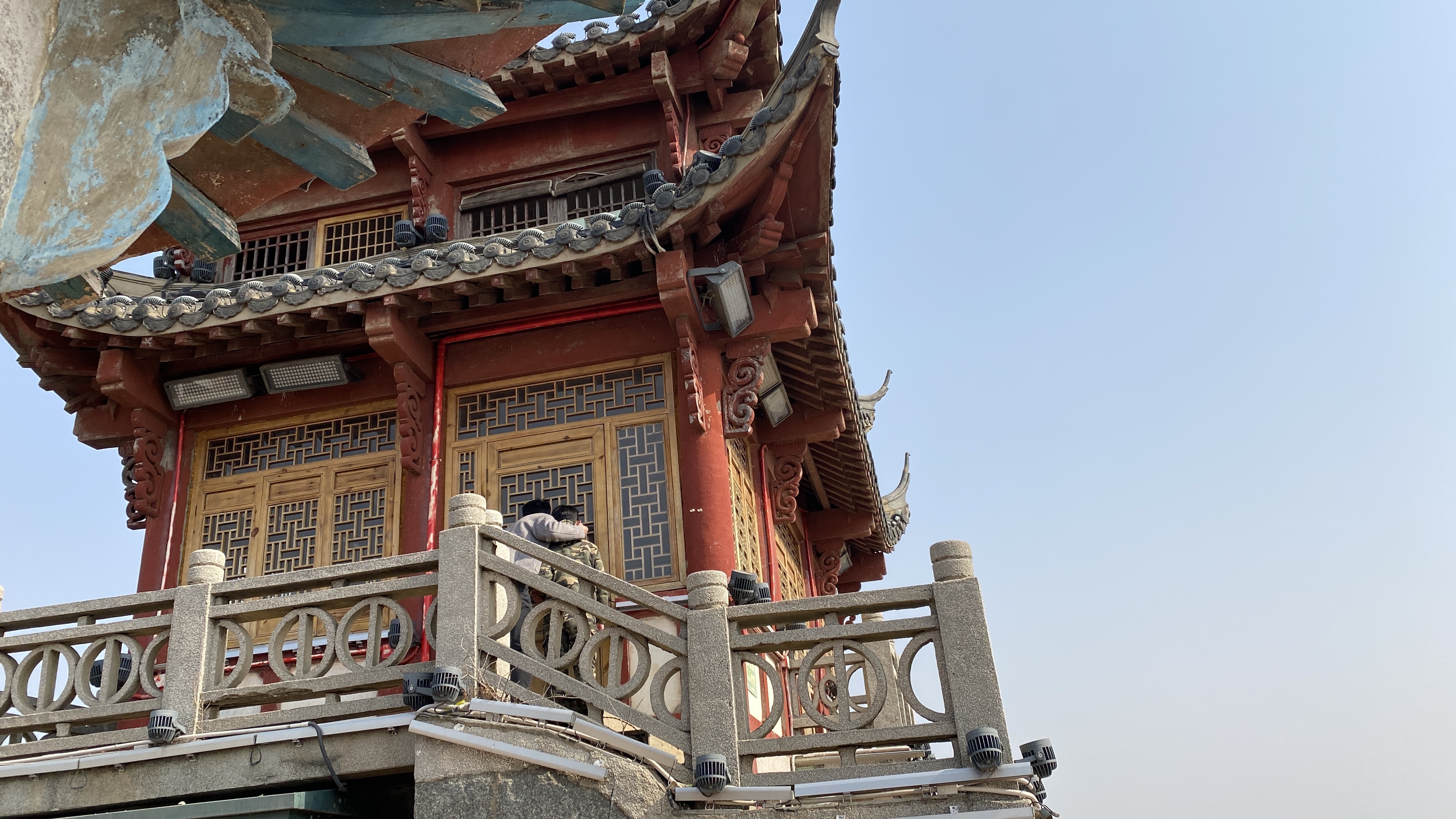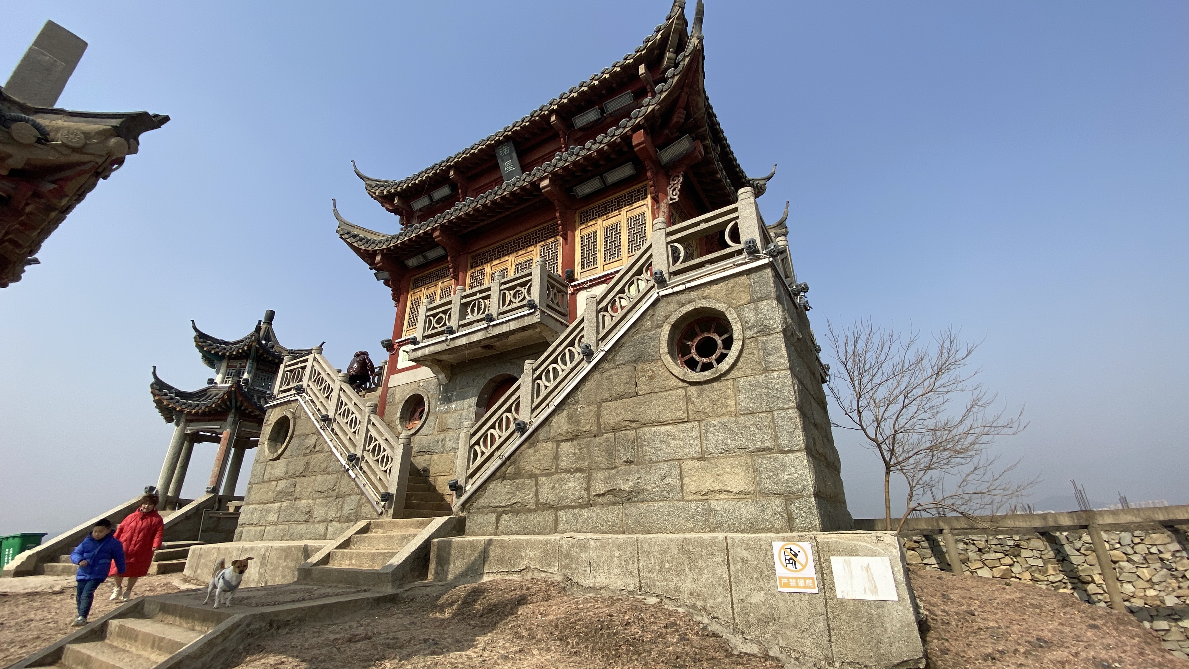 루오씽둔 위에는 사원과 칠층석탑 그리고 정자가 세워져 있다. 정자는 송나라 때, 사원은 당나라 때, 석탑은 명나라 때 세워진 것이라고 한다.