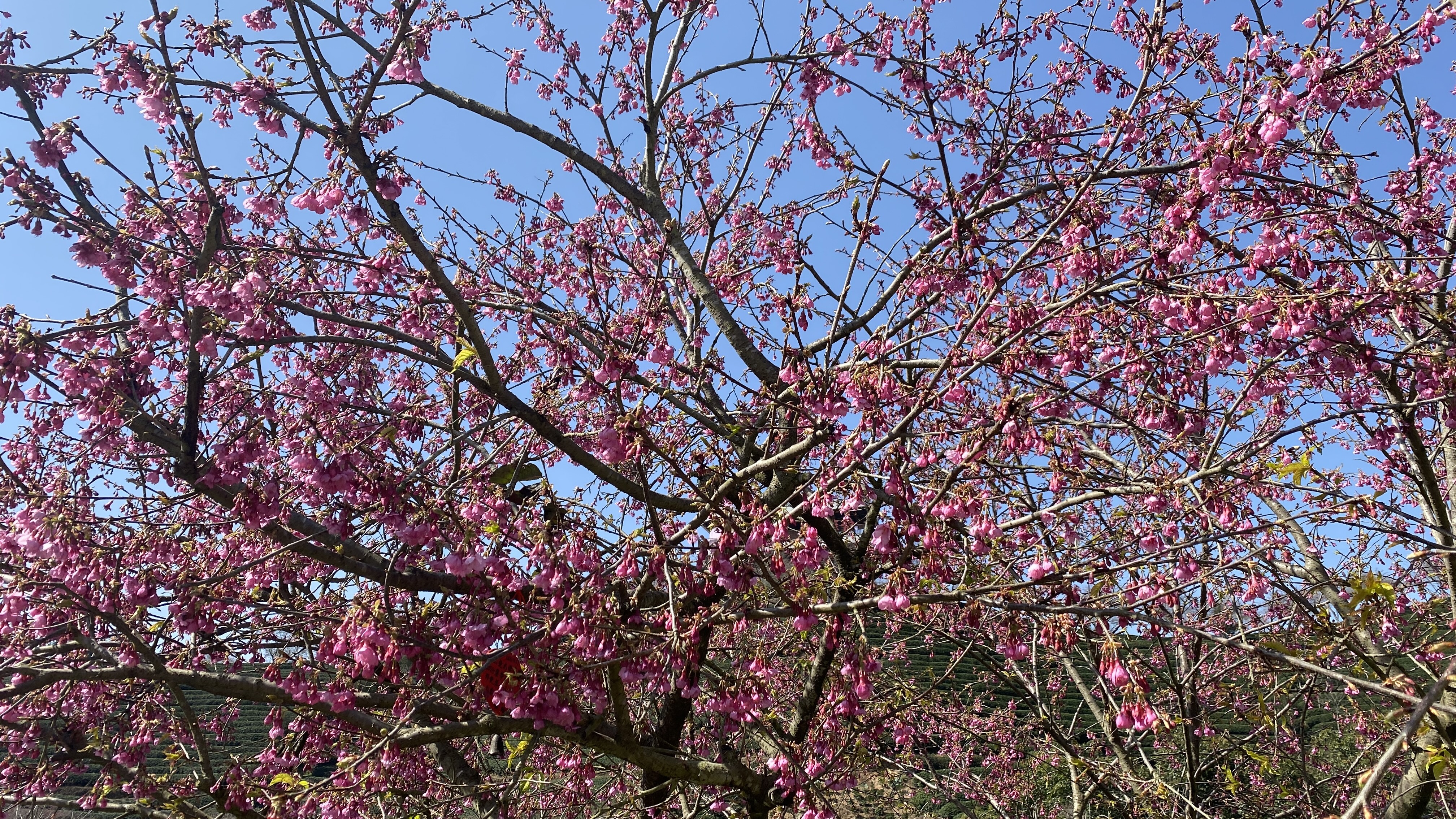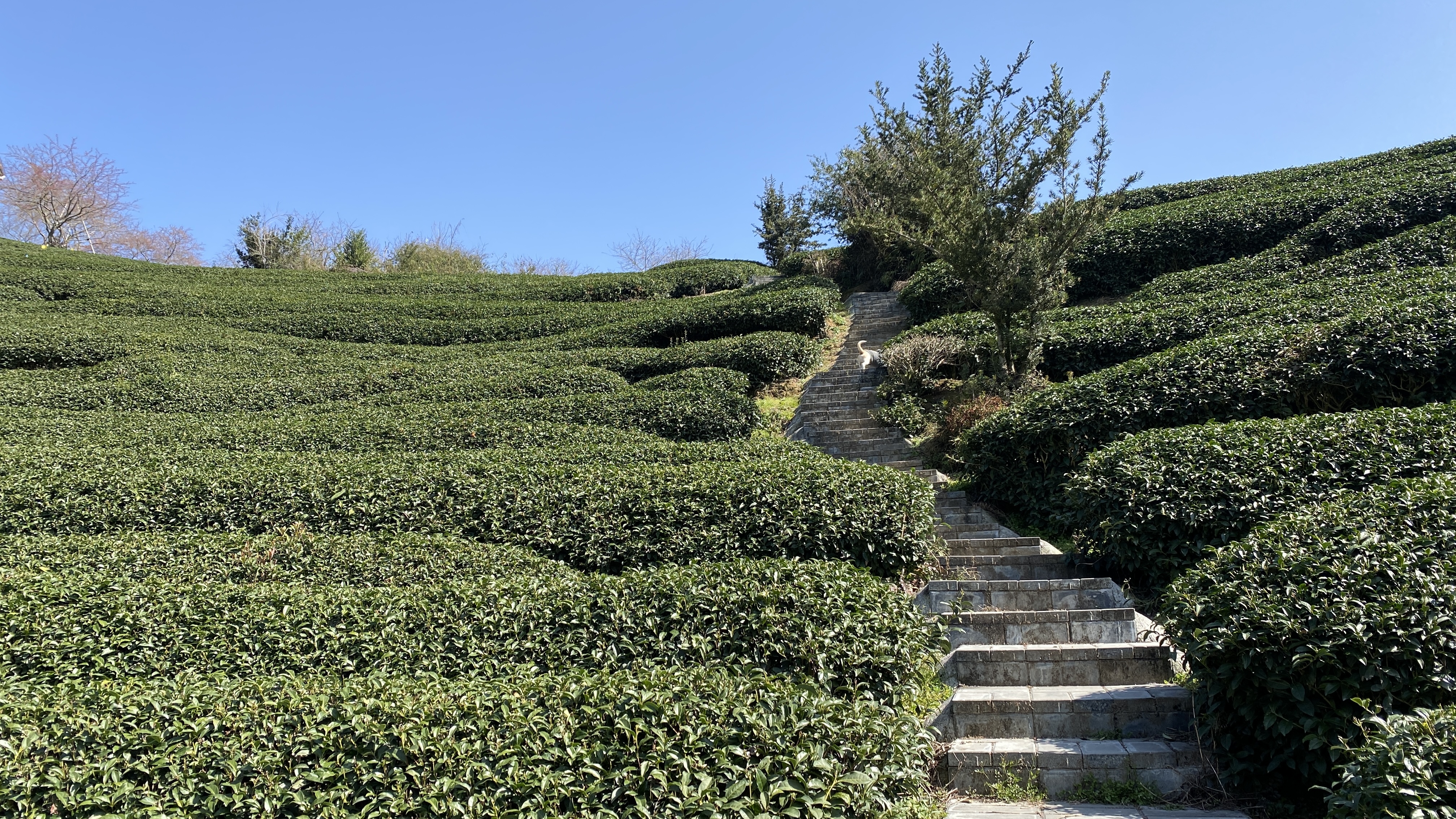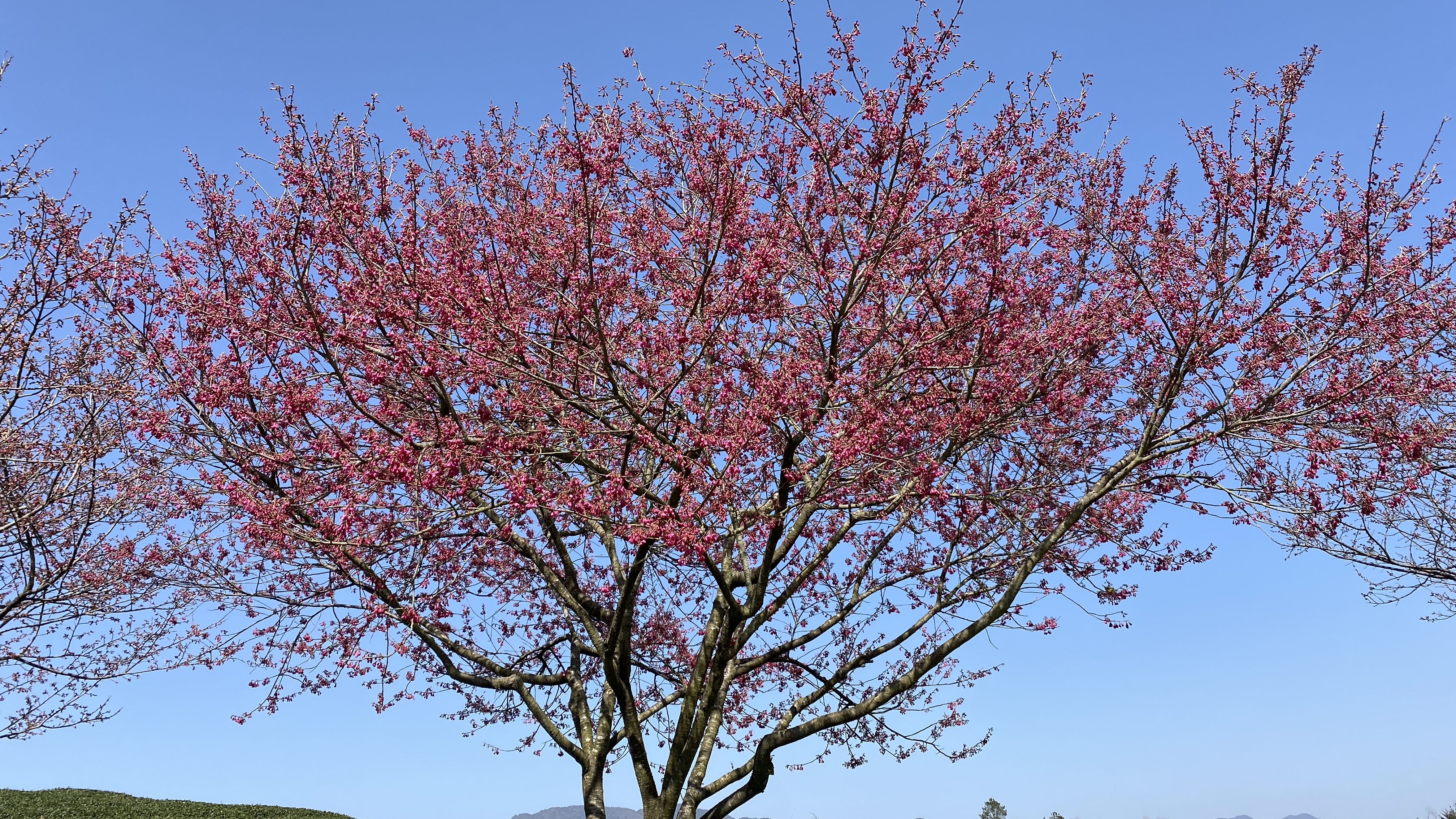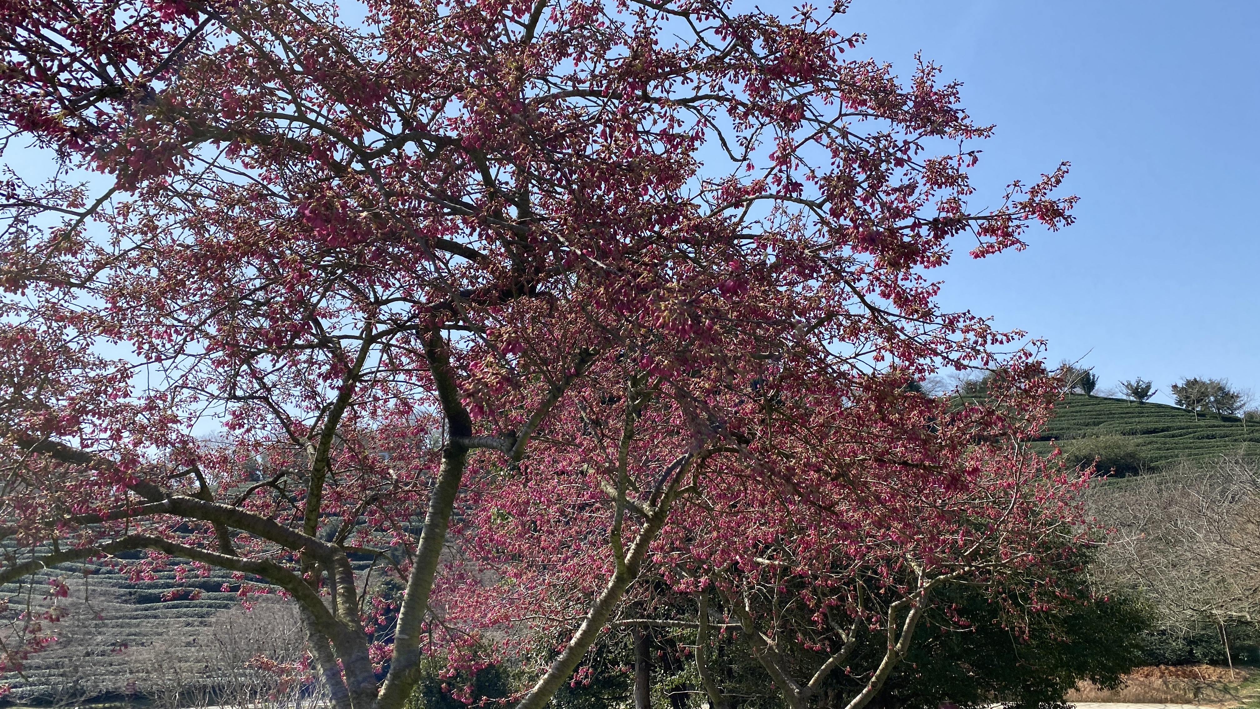 활짝 펴서 벚꽃이 장관을 이루는 풍경을 보지 못해서 약간 아쉽기는 했으나, 맛보기로나마 파란 하늘 밑의 초록색의 차밭과 붉은색의 벚꽃이 어우러지는 모습을 평화롭게 즐길 수 있는 곳이었다. 이곳의 벚꽃은 2월중하순부터 3월말까지의 기간이 최고라고 한다.