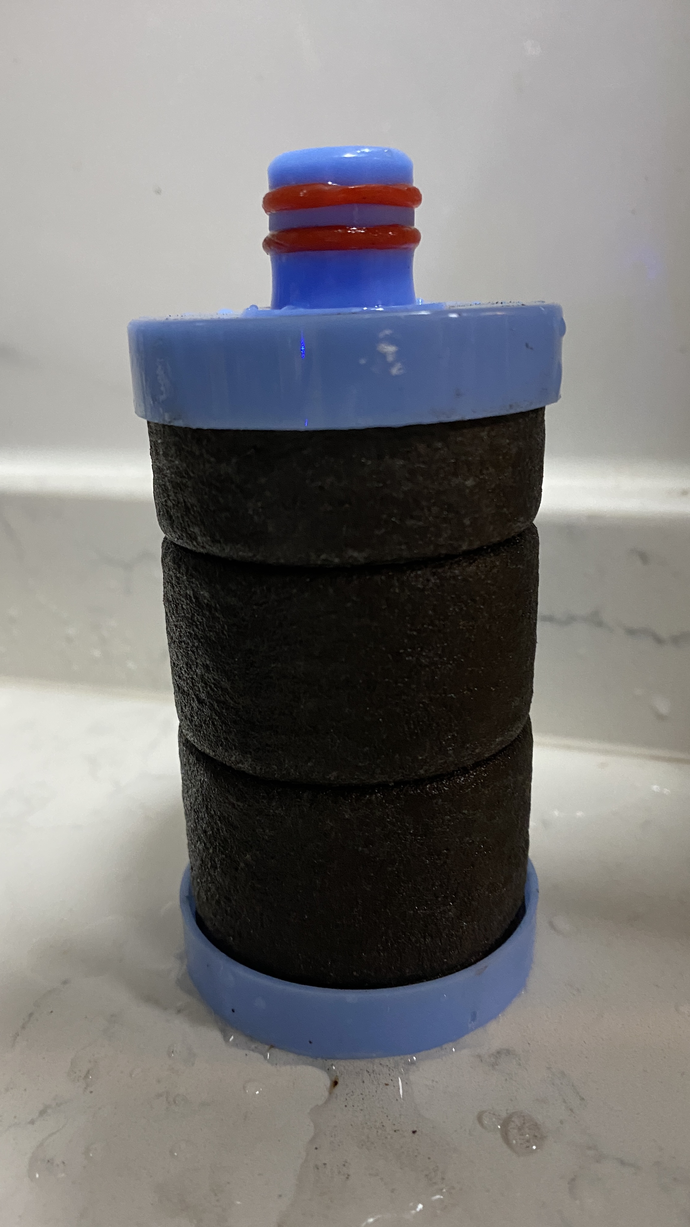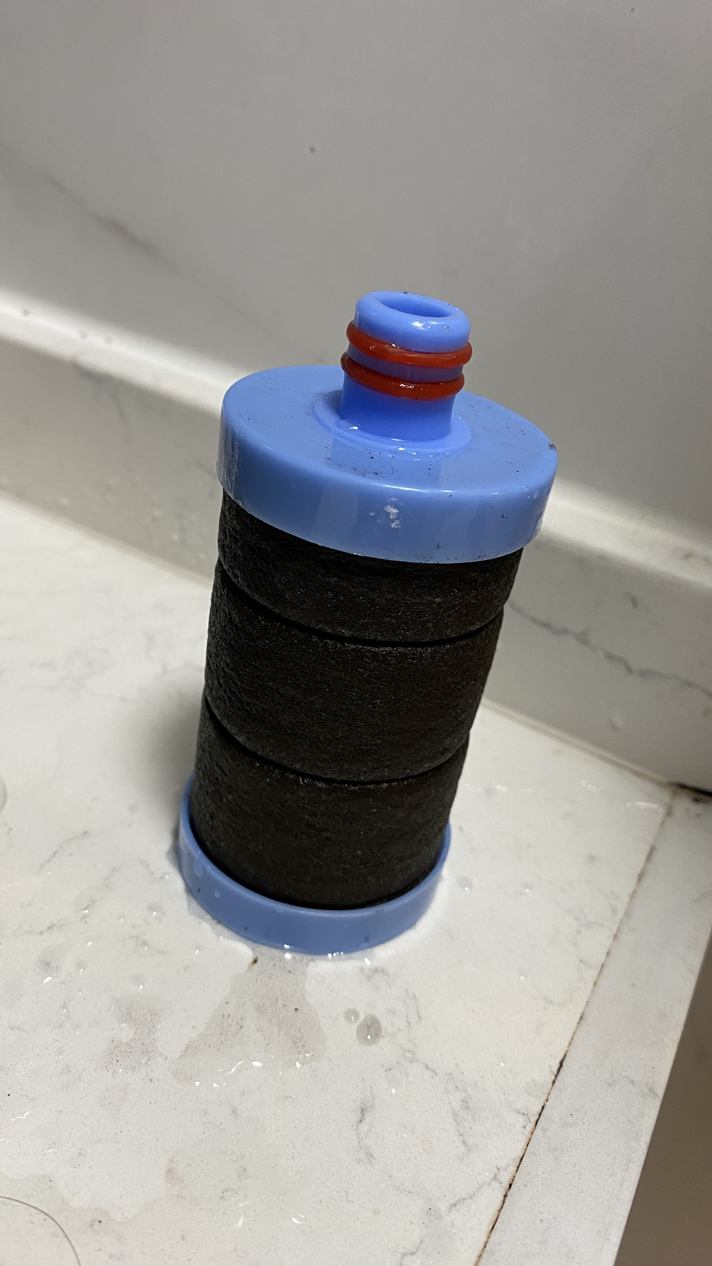 밤에 샤워할 때도 그랬지만, 아침에도 샤워할 때 물에서 시궁창 냄새가 나는 것 같아서 굉장히 기분이 안 좋았는데, 퇴근 후 집에 와서 필터를 보는 순간 경악을 금치 못했다. 보통 2~3주정도 되면 누렇게 변하거나 눅슨 쇳가루들이 붙어 있던 필터와는 다르게, 필터가 완전 검게 변해버렸던 것이다. 우선 필터를 교체 후, 수도물을 한동안 틀어놓았는데, 다행히 교체한 필터에는 더이상 오염물이 묻어나오지 않았다. 이 시커멓게 변한 필터에서는 시궁창 냄새가 나는 것으로 보아, 단수가 되었을 때 상수도관에 외부 물이 유입된 것이 아닌가 싶다.