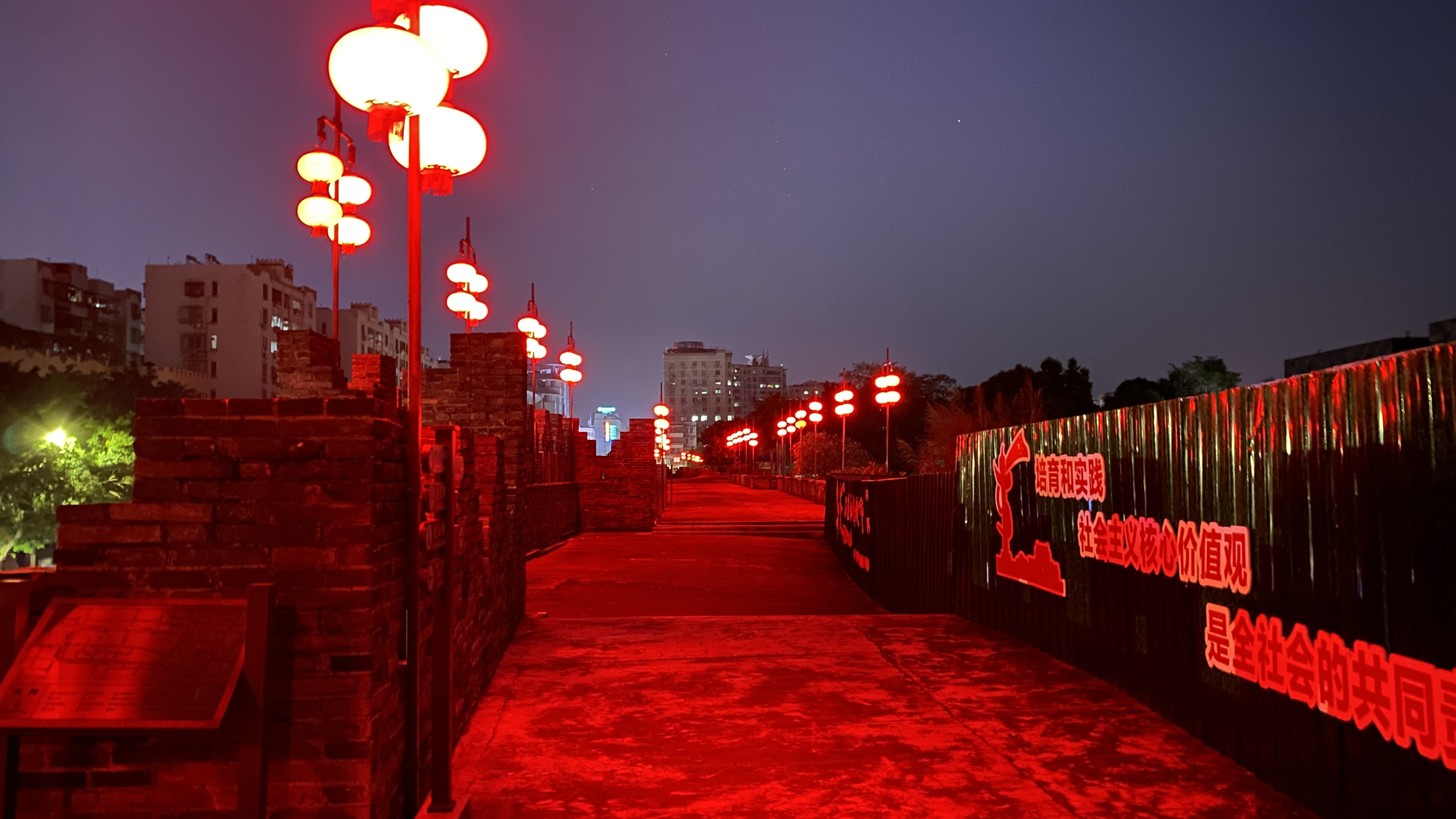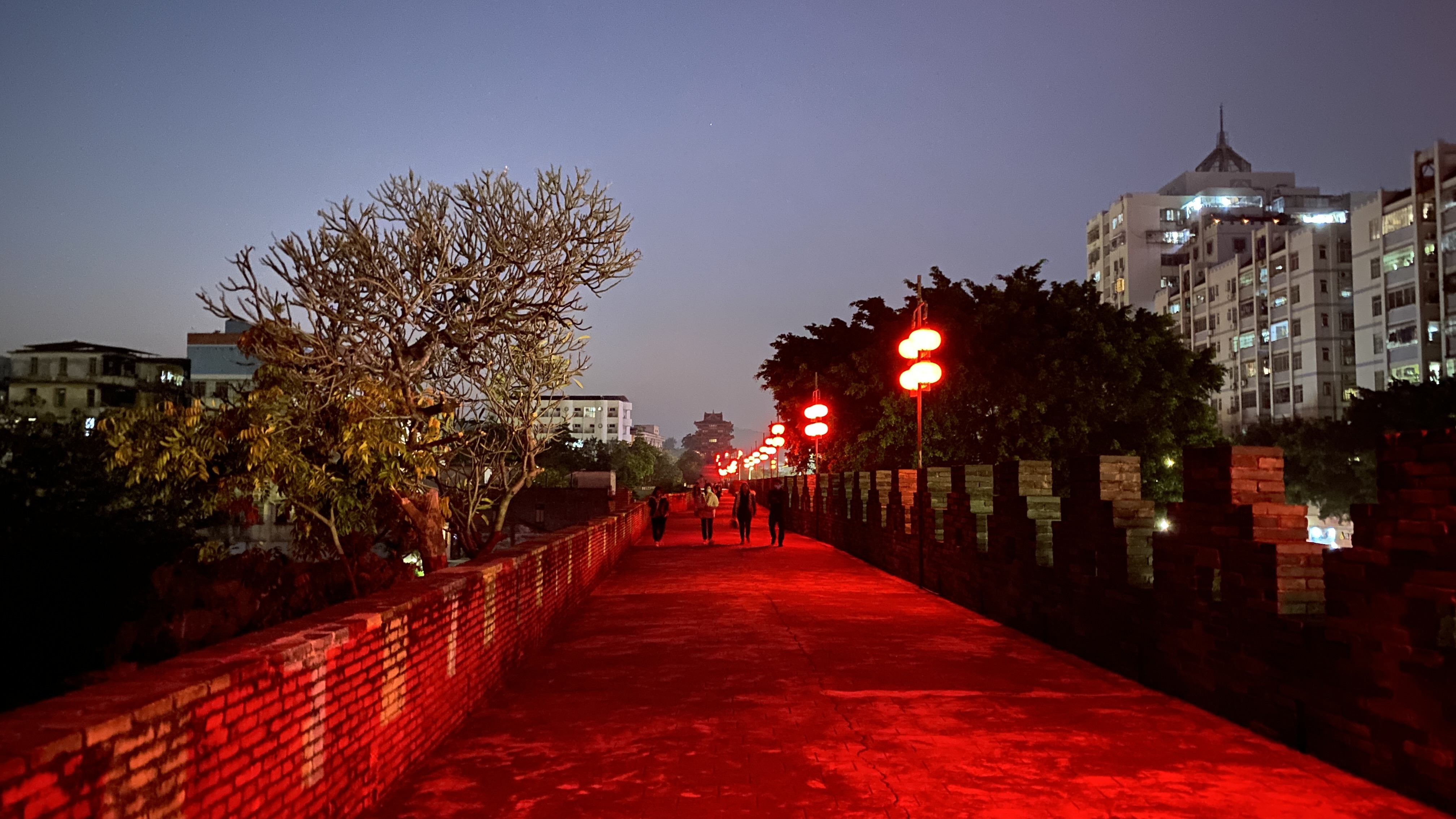성벽 위를 걸어다닐 수 있는데, 가로등이 모두 붉은 색이라서 색감이 전혀 느껴지지 않았다.
