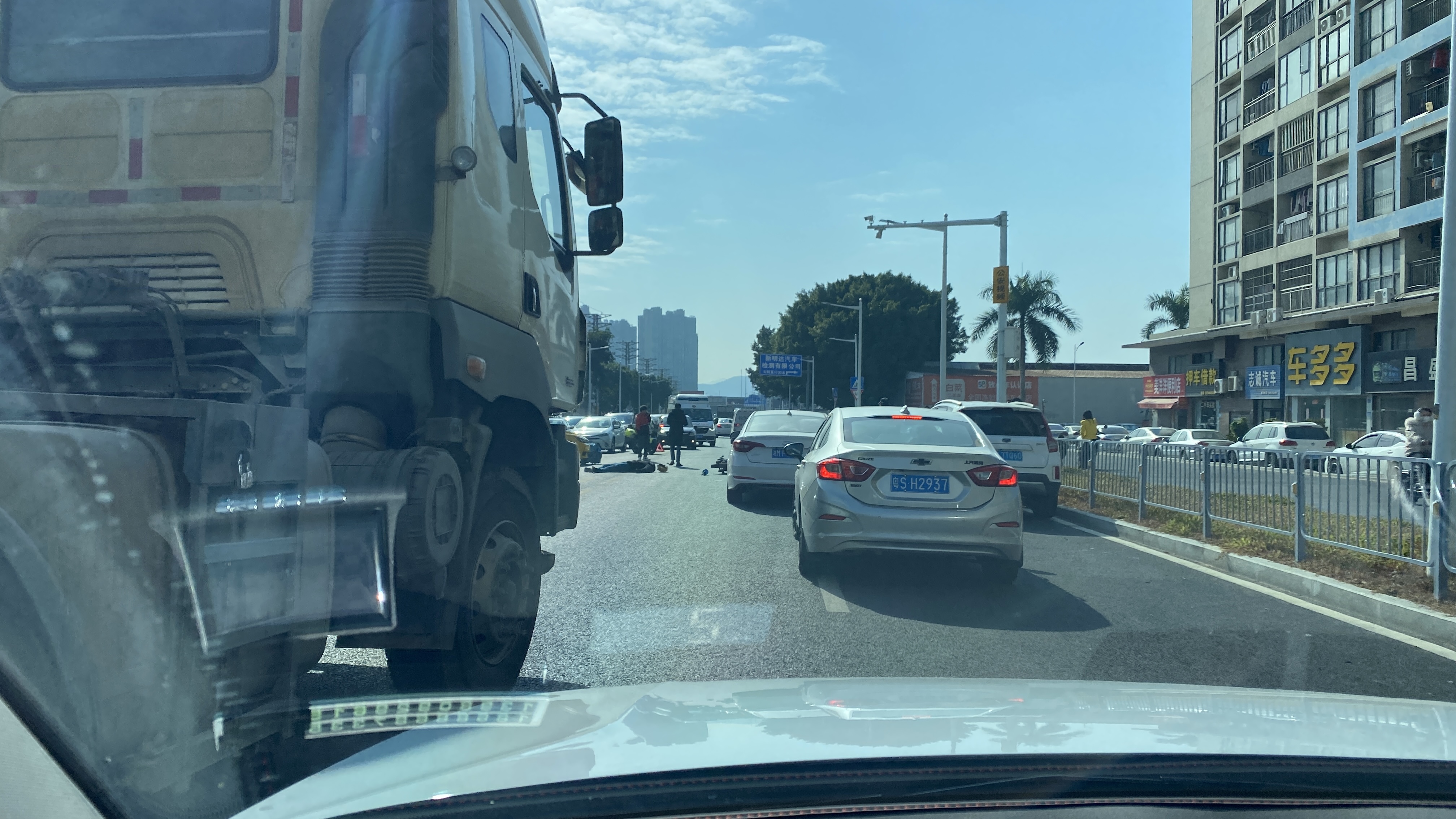 지나가다보니 운전자의 코에서 피가 약간 흐른 것 같았다. 중국에서는 교통사고가 나면 이렇게 도로에 그냥 누워 있는다. 척추나 목뼈에 이상이 있을지 몰라서 그런지 모르겠다. 십수년전에 사고가 난 사람을 도와줬다가 거꾸로 고소를 당하는 사건이 발생한 이후로 중국에서는 교통 사고가 나도 주변에서 왠만하면 구조활동을 하지 않는다. 고속도로나 길에서 사고가 나는 장면을 보아도 거의 모든 사람들이 그 자리를 서둘러 피해버리는데, 이게 중국 내에서도 종종 사회적 이슈가 되는 듯 하다. 중국에는 아직 '착한 사마리아인 법'이 없는 듯 하다.