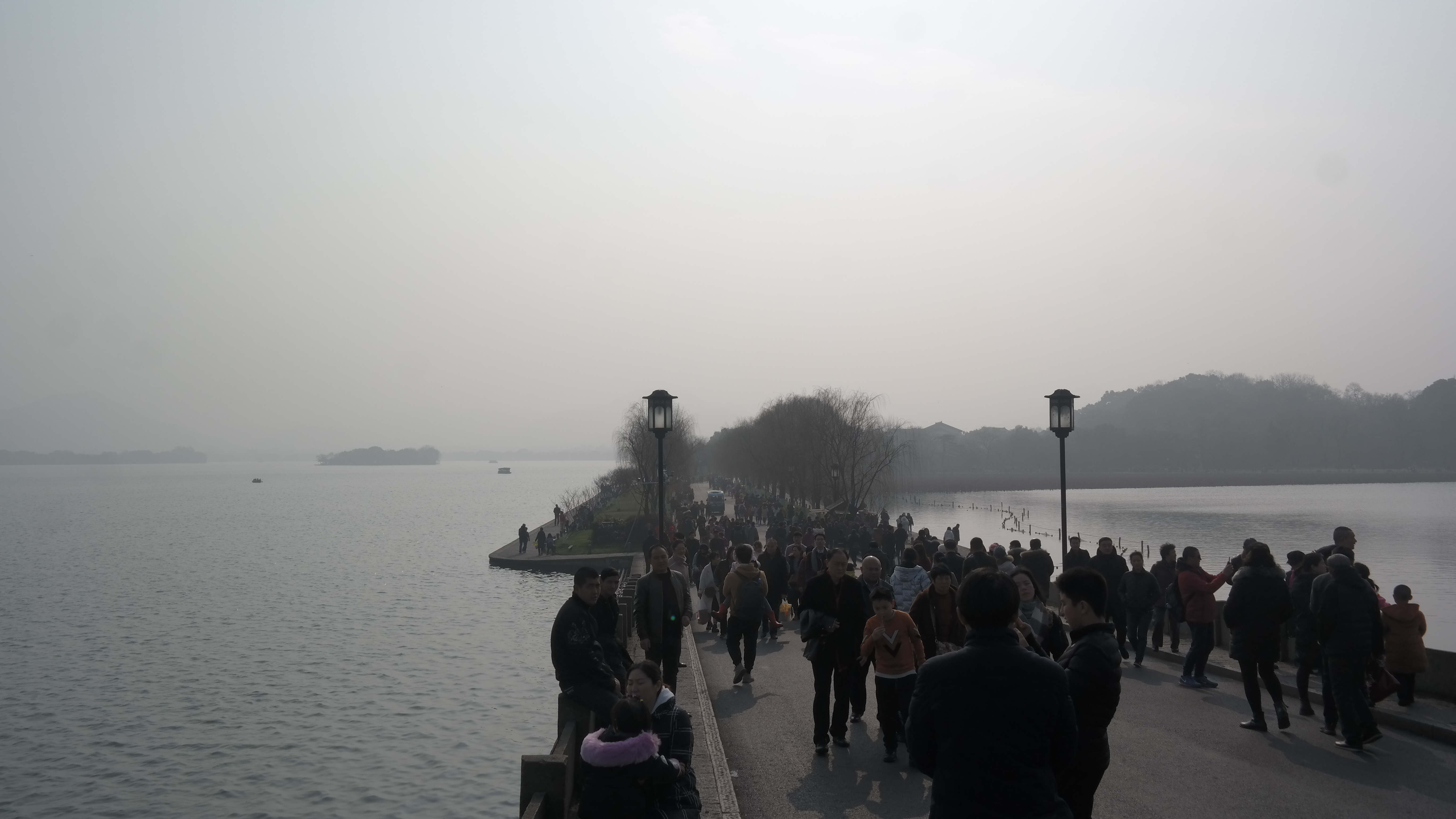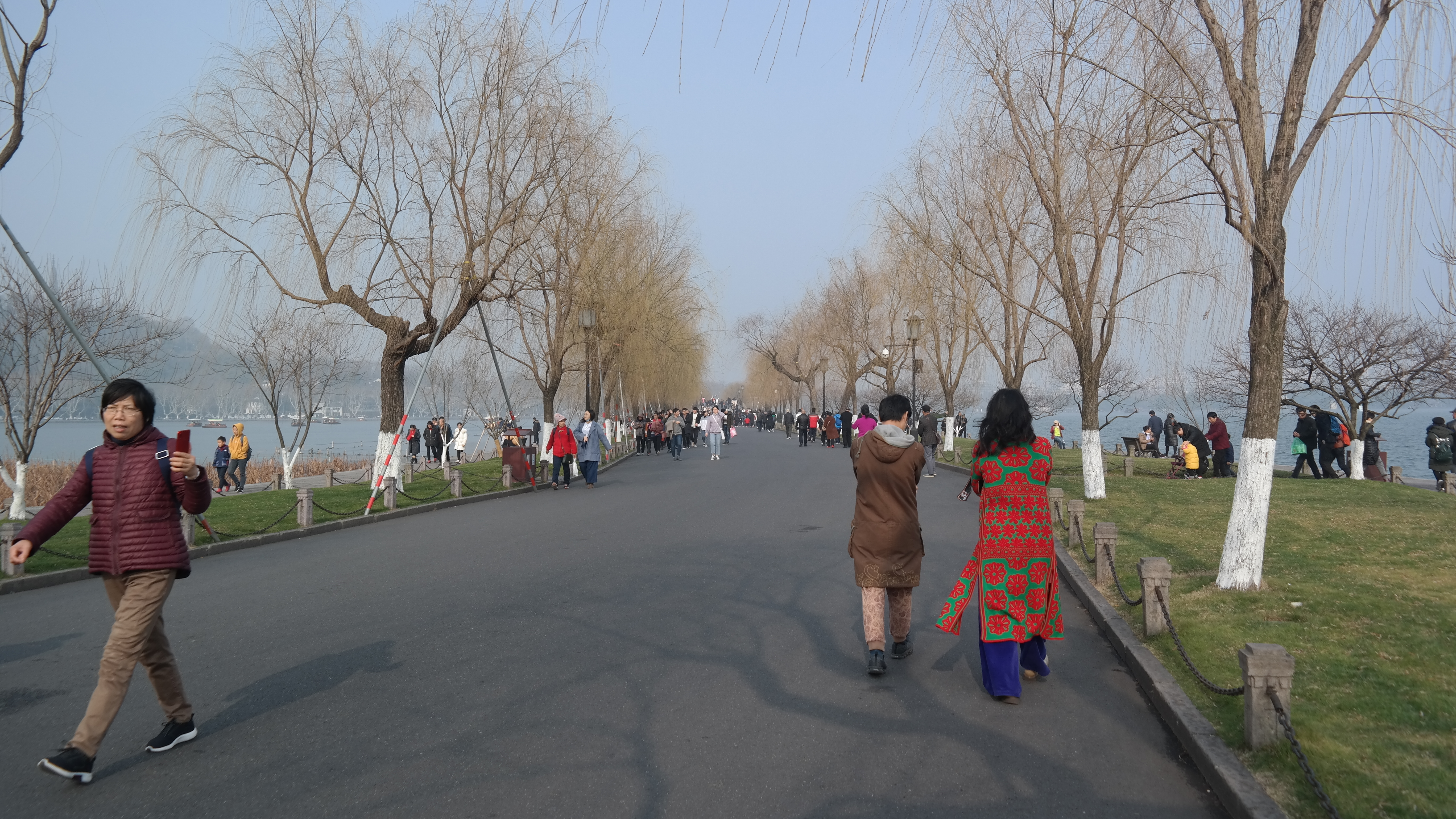 서호 10경의 하나인 리우랑원잉(柳浪闻莺, 유랑문앵)은, 버드나무가 가득한 시후의 이 남동쪽 지역에서 여름 바람에 물결치는 버드나무를 보며 꾀꼬리 소리를 듣는 것이라는 뜻인데, 쌀살한 춘절에는 볼 수 없는 풍경이긴 하다.