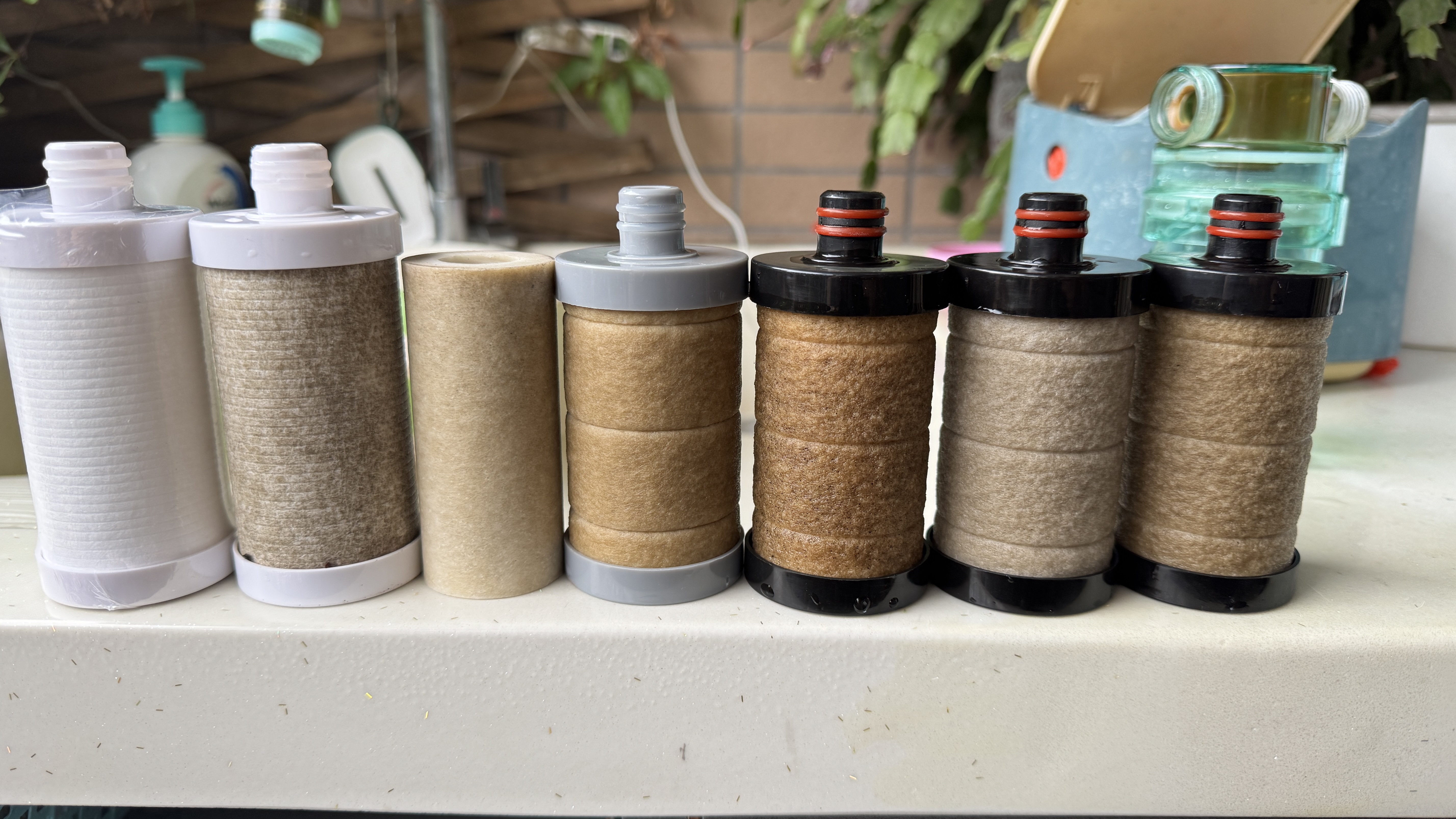 1달 넘게 사용한 중국 동관 아파트의 수도 필터를 교체하였다. 왼쪽이 아직 사용하지 않은 필터이고 나머지는 이번에 교체한 필터들이다. 왼쪽 두개는 샤워기 필터, 중간에 있는 2개는 주방 싱크대 냉수/온수 필터, 오른쪽 두개 중 하나는 보일러로 들어가는 수도의 필터와 하나는 욕실 세면대의 냉수 필터이다. 어떻게 이렇게 빨리 지속적으로 더러워질 수 있는지 신기할 따름이다.
