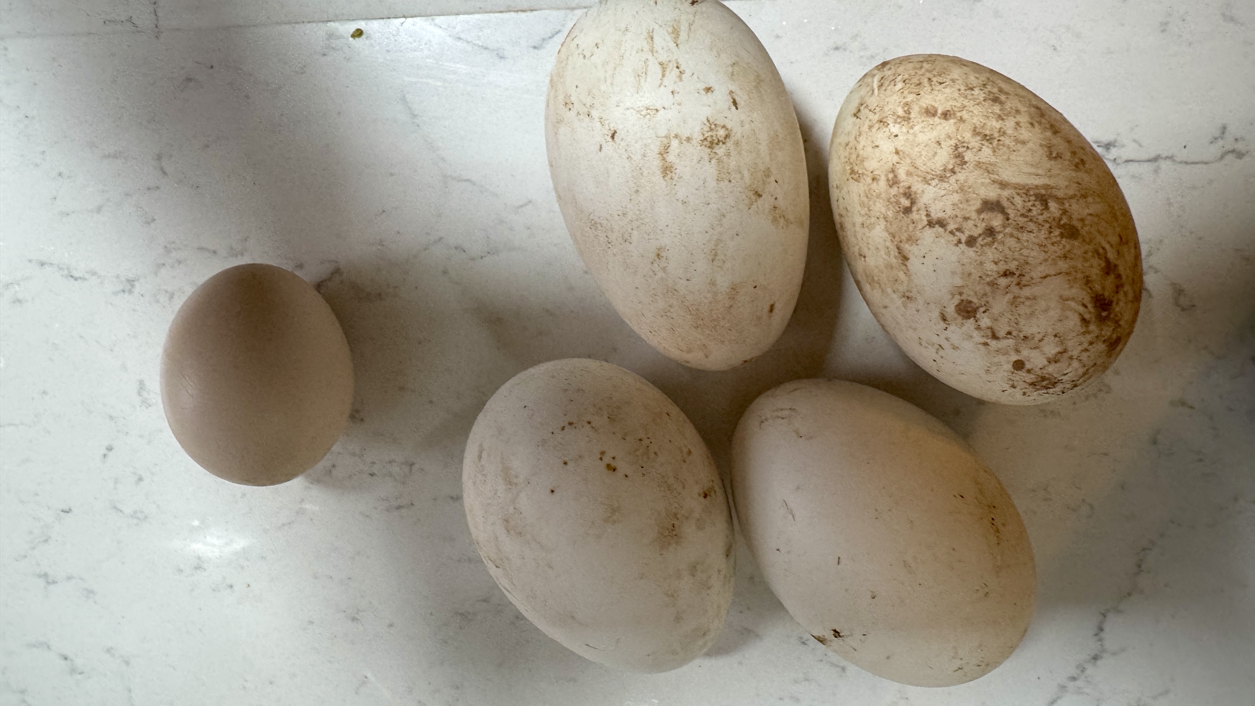 달걀과 비교한 거위알. 이 달걀이 약간 작기도 했지만, 거위알은 정말 크다.