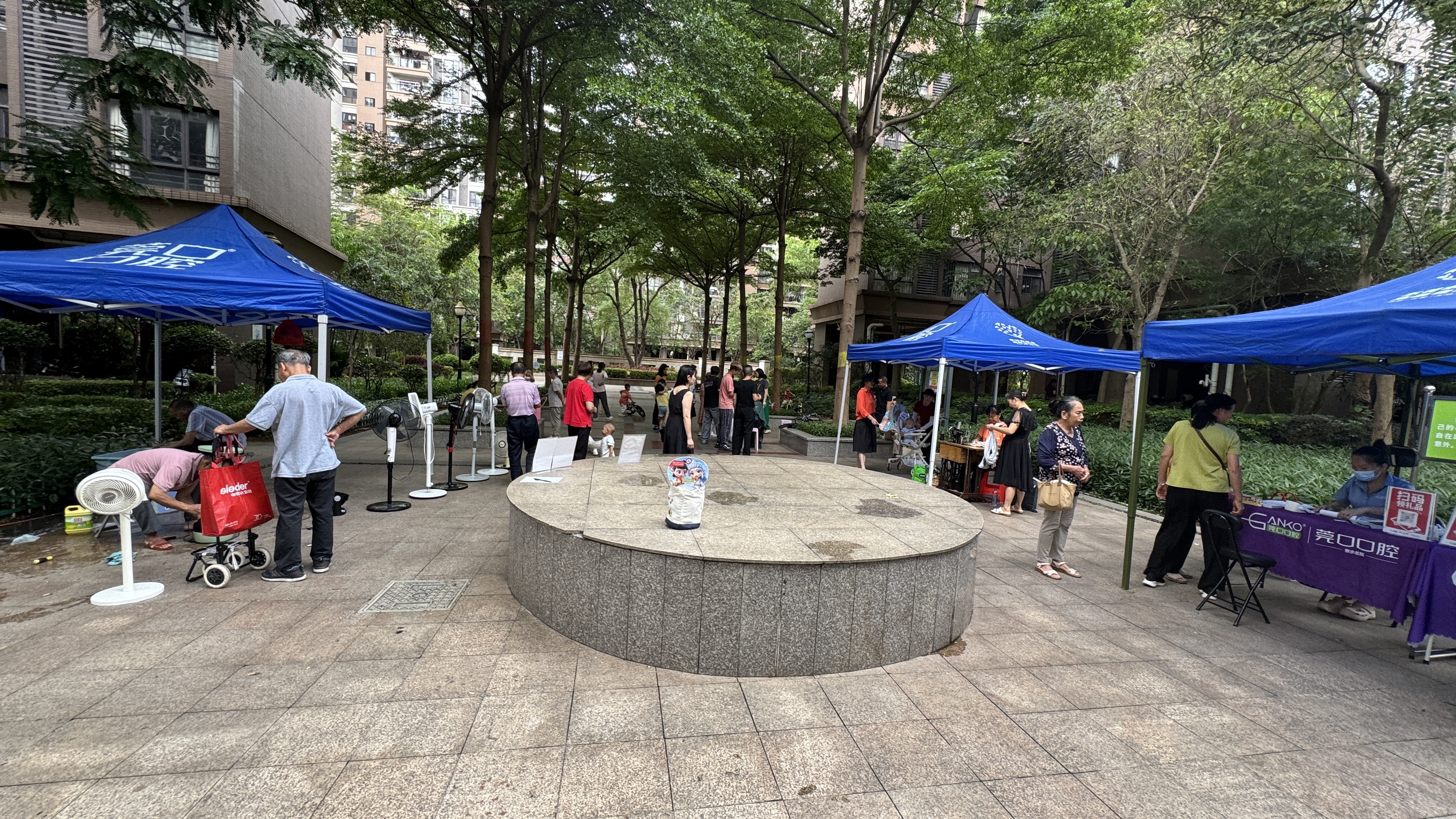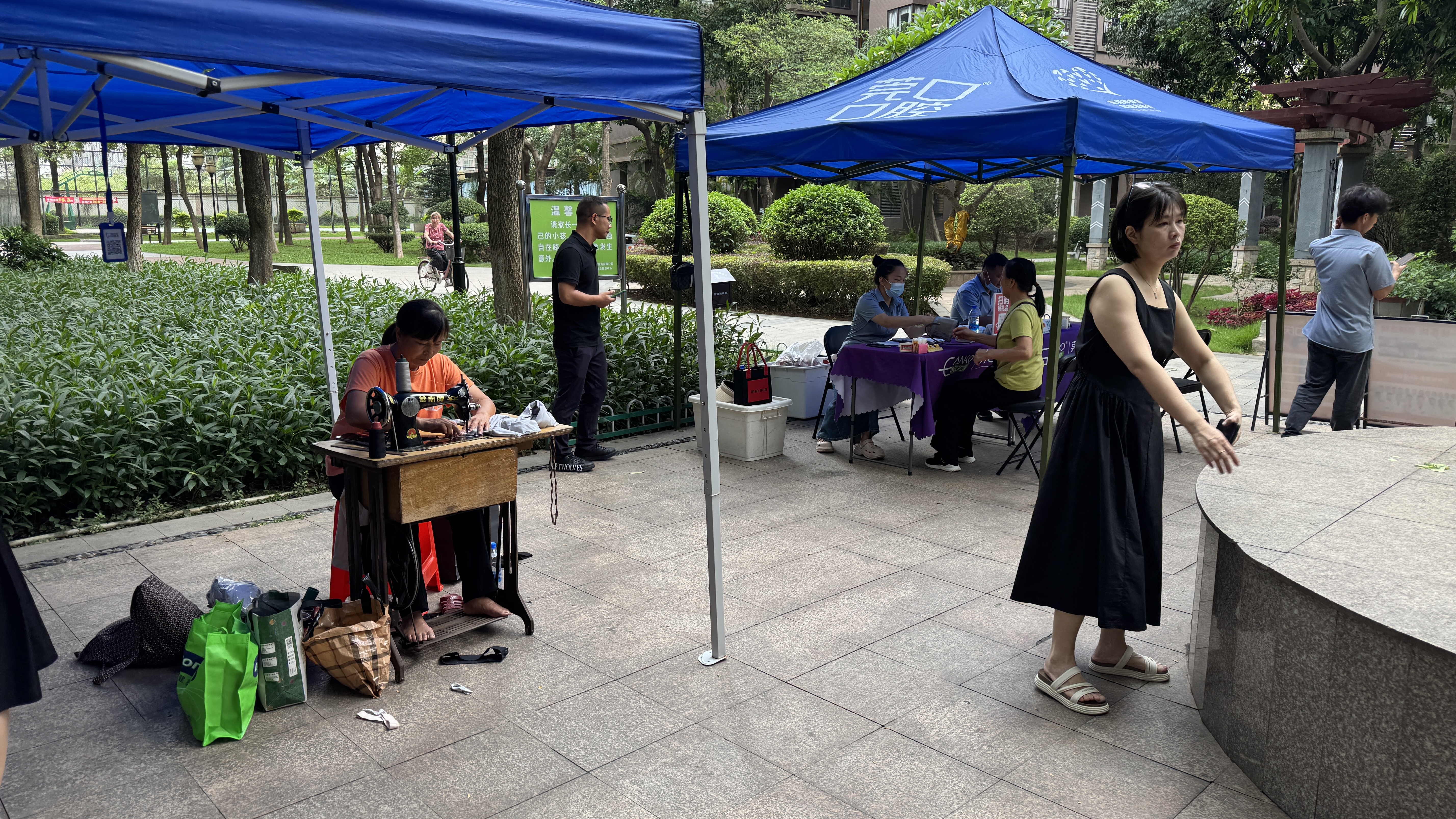 중국에서는 아직도 시장에 가면 테이블 위에 제봉틀 하나를 놓고 옷을 수선해주는 사람들을 쉽게 볼 수 있다. 당연히 가격도 매우 저렴하고 수선을 전문으로 하다보니 솜씨가 정말 좋다. 이것도 이번주에는 무료 서비스. 또한 주변에 있는 치과와 협의를 거쳐 자기네 치과 광고도 하면서 치아 검사와 기본적인 혈압측정도 해주고 있었다.