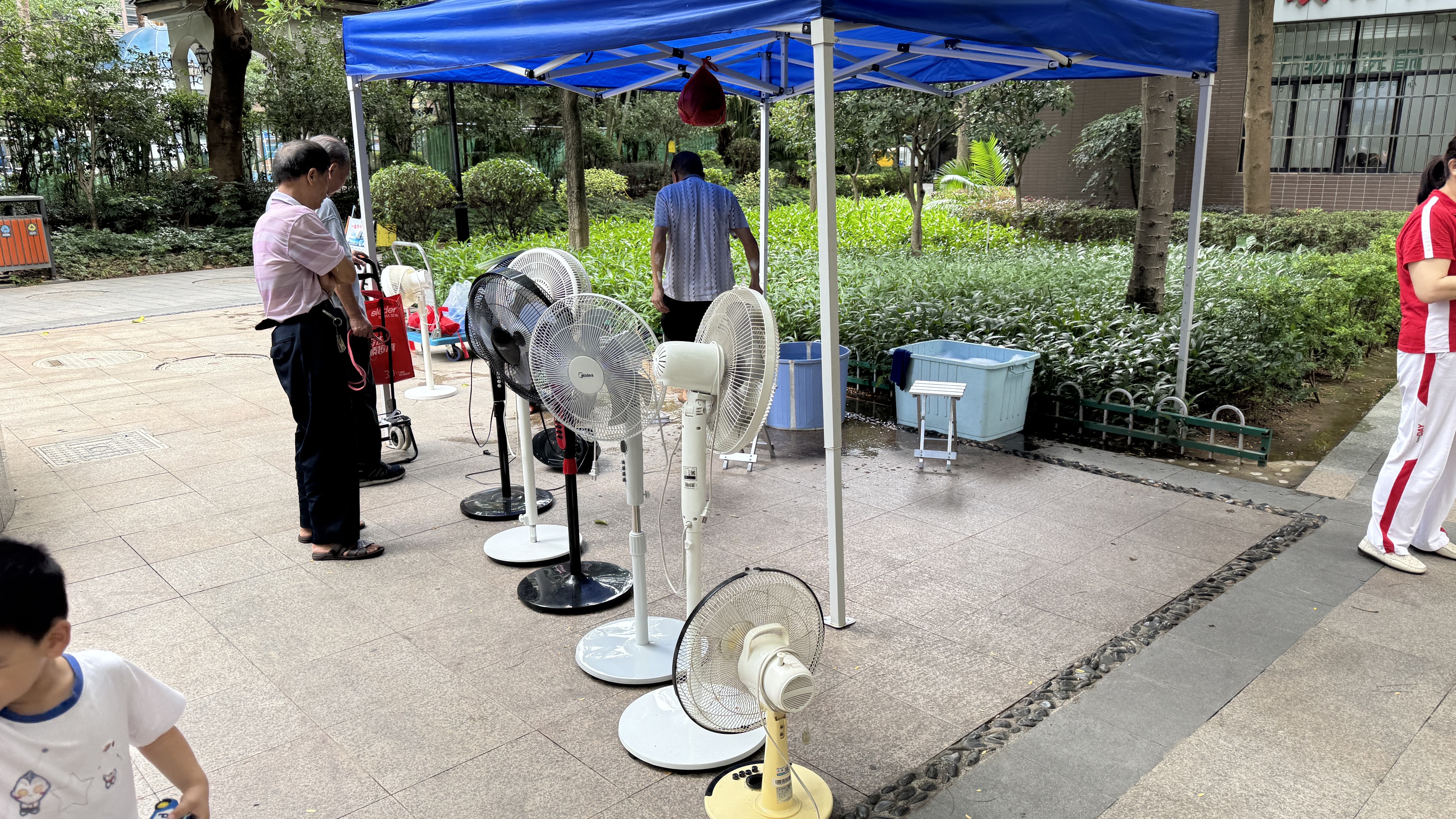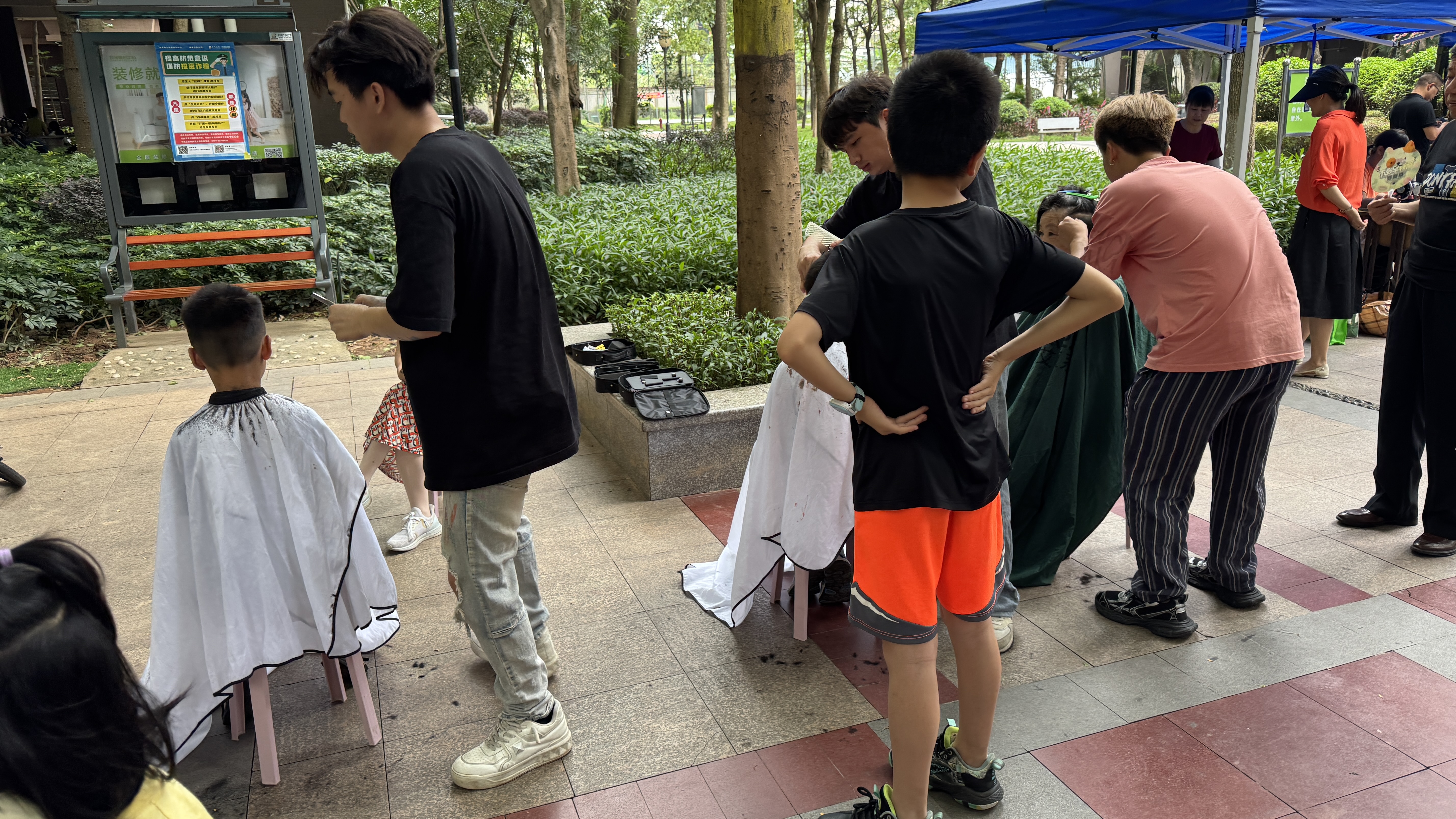 이 아파트 관리업체에서 매달 1~2회정도 다양한 입주민 서비스를 제공한다. 1~2주전에는 팝콘을 제공해 주는 야외 무료 영화상영을 하더니 이번주에는 무료 이발, 무료 선풍기 청소, 무료 옷수선등을 해주고 있었다. 무료 이발은 보통 어린이와 나이든 노인분들이 받으시는 듯 하였다.