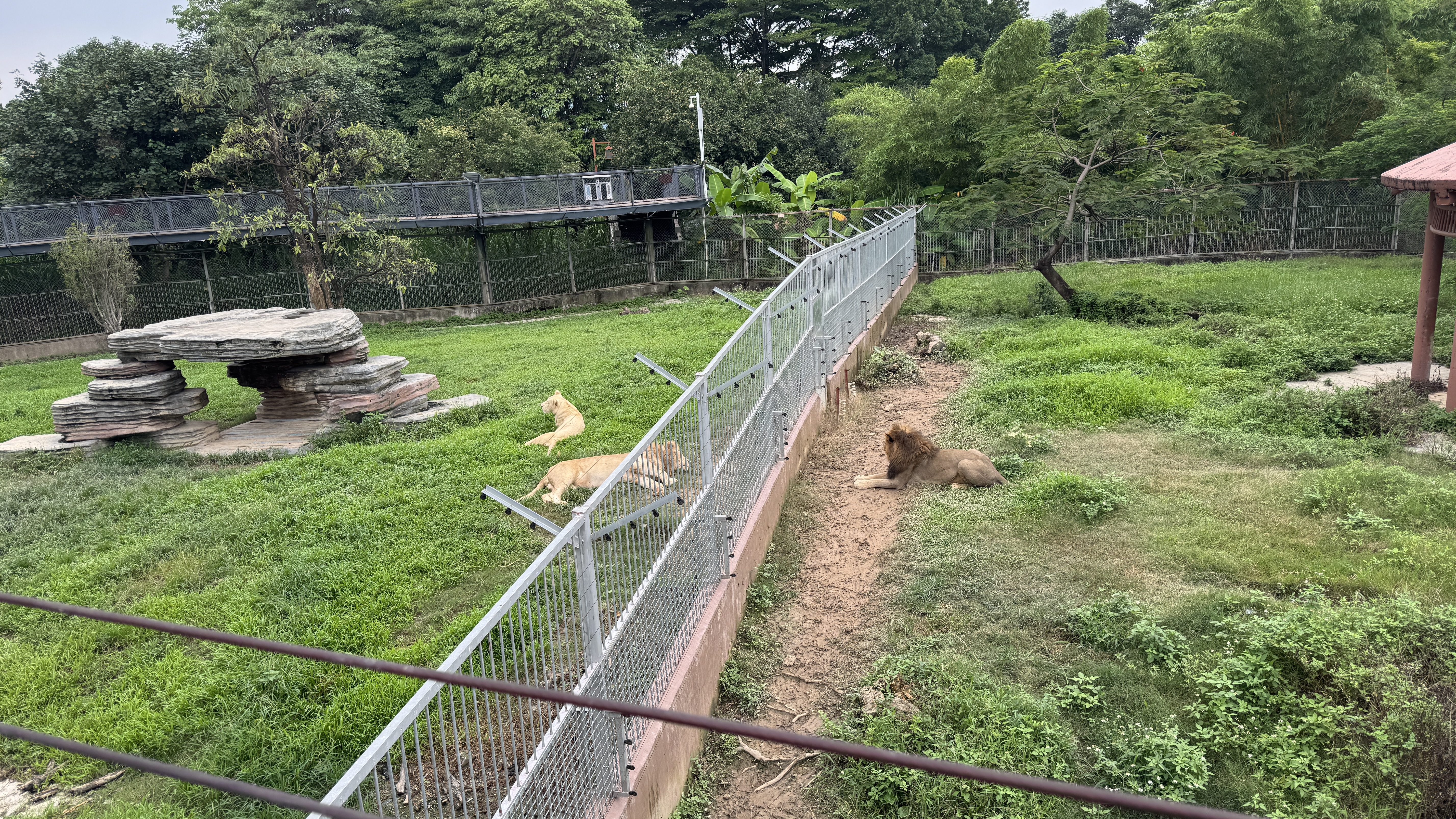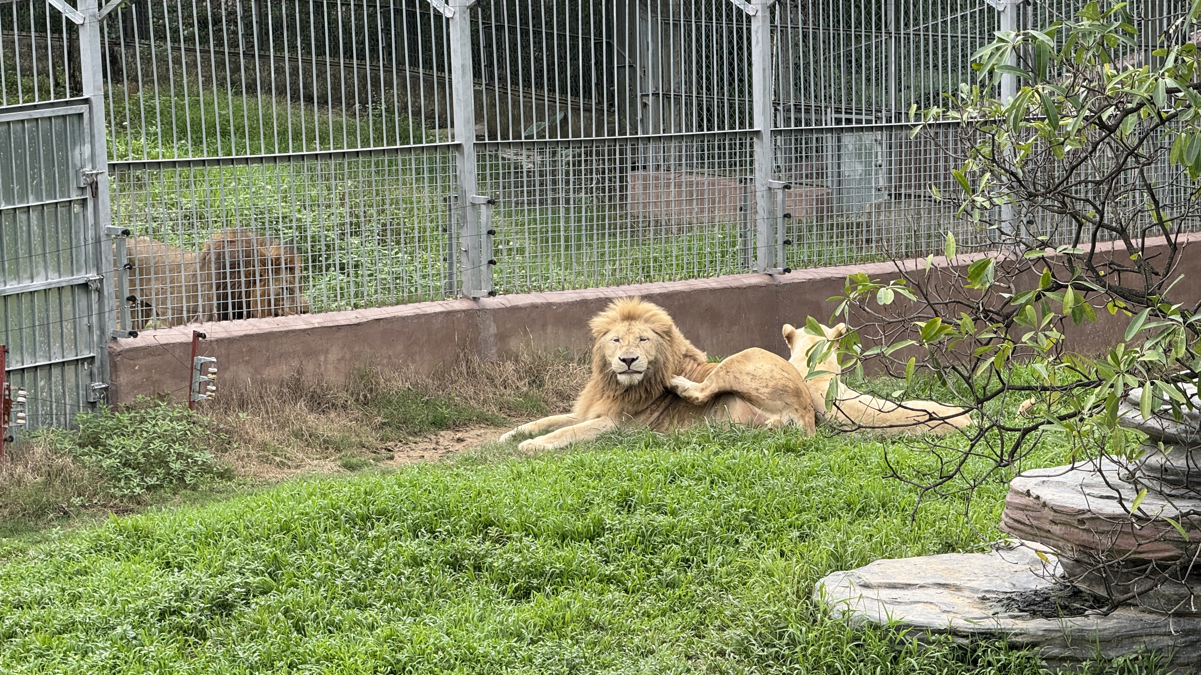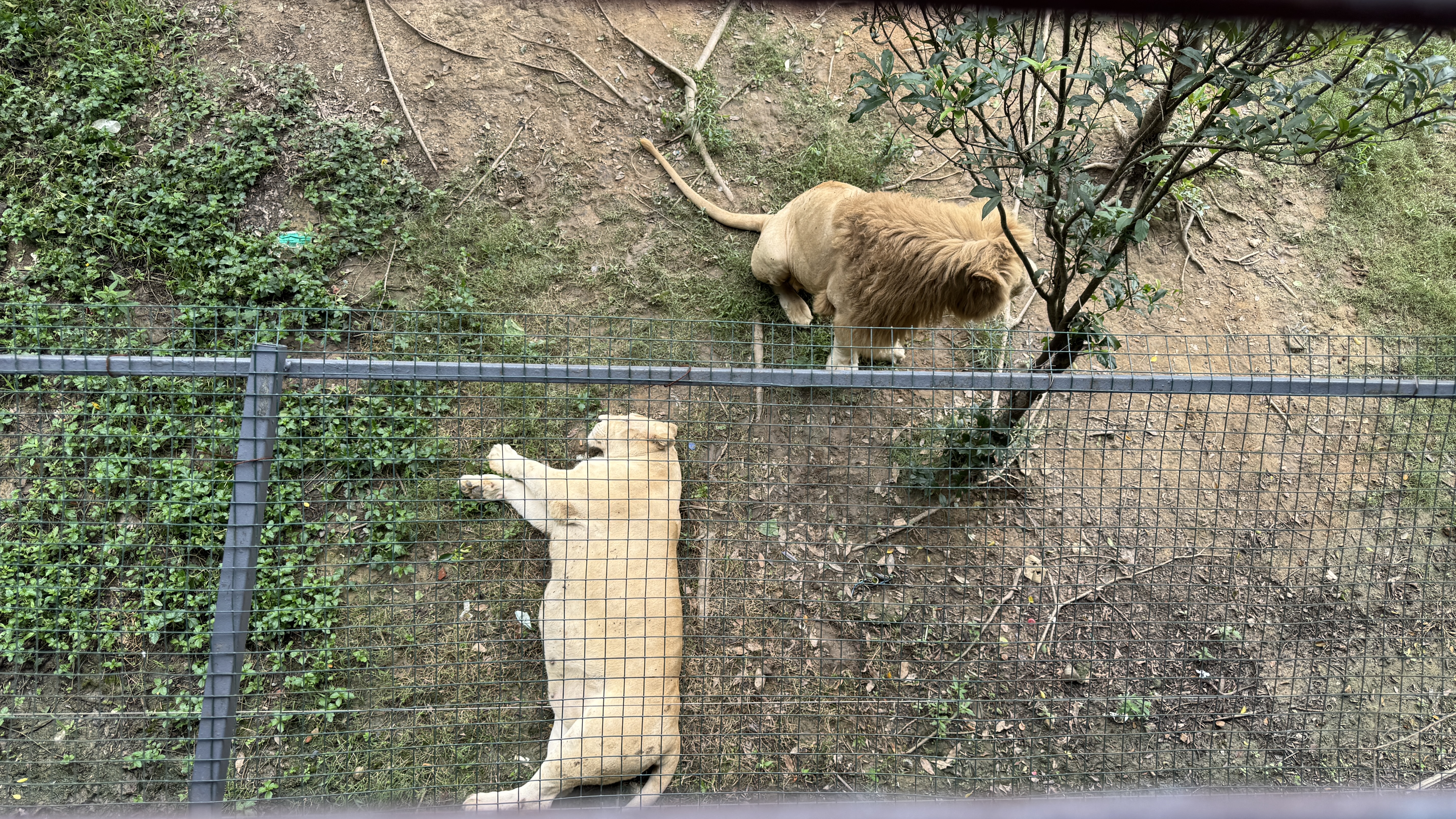 철망 반대편에 있는 한마리의 사자와 대치 중인 사자 커플인데, 왠지 귀엽기도 해 보인다.