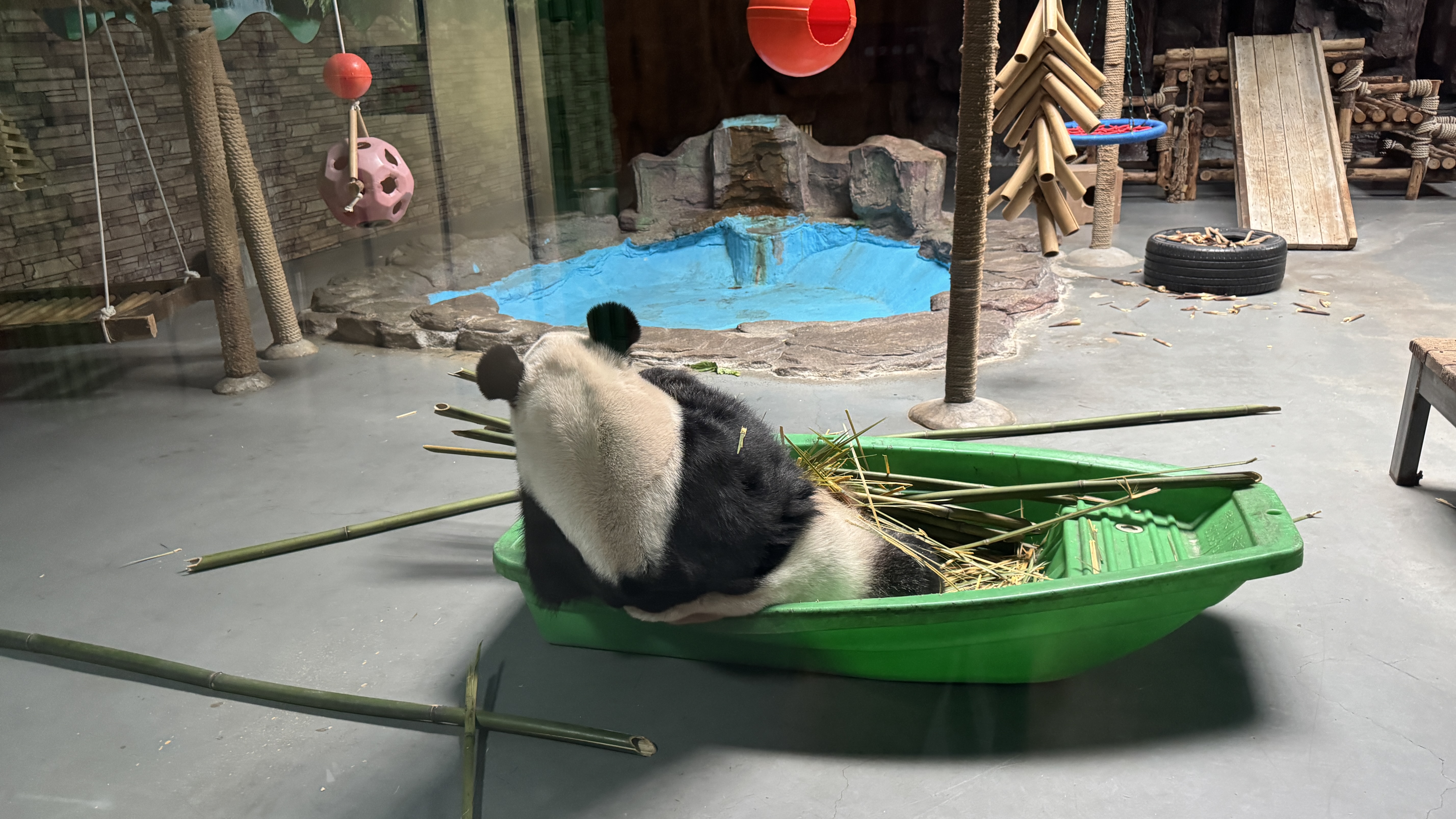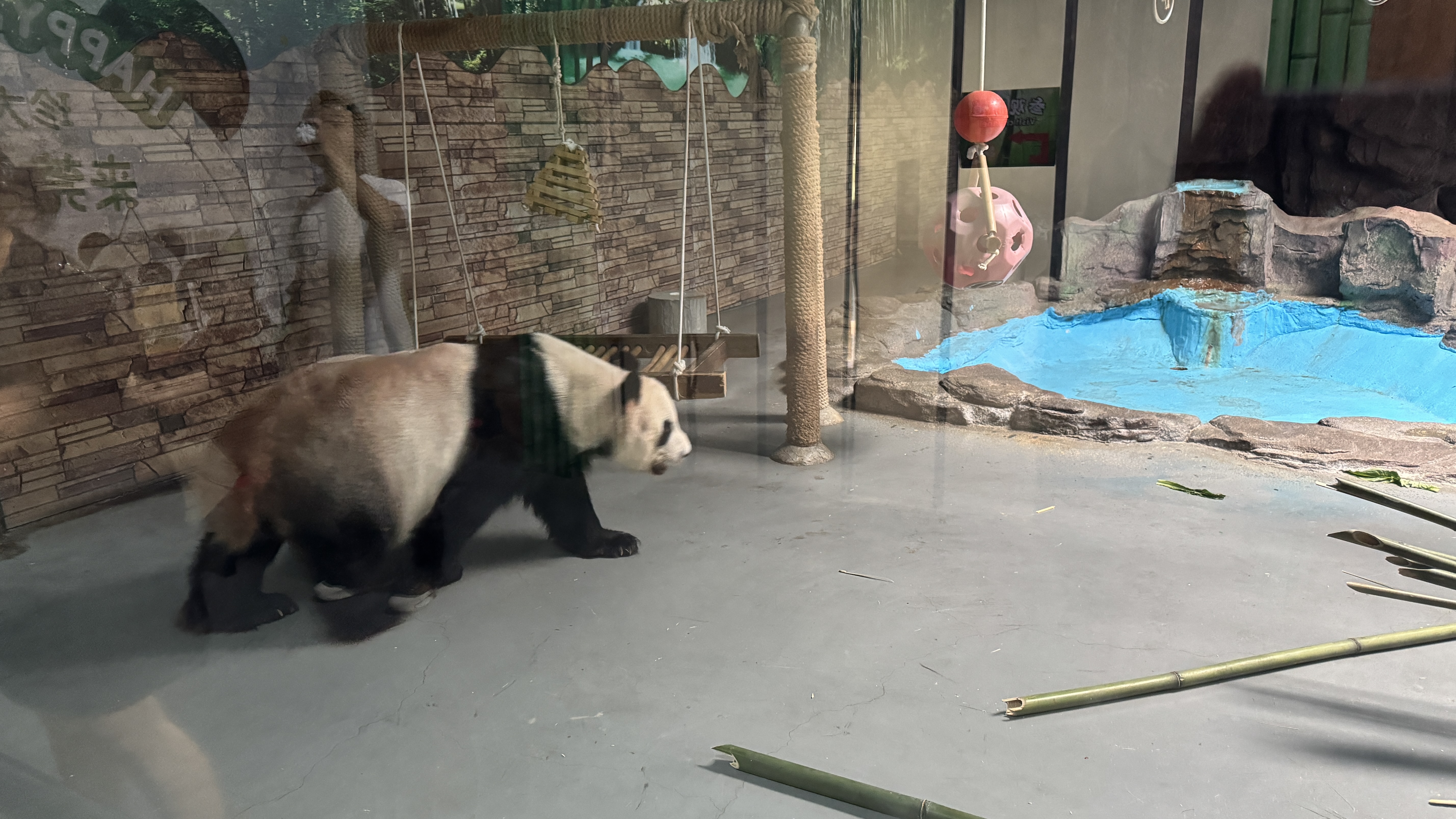 중국에서 가장 자랑스러워하는 동물인 판다. 판다 우리는 외부에도 있고 날이 좋지 않으면 이렇게 실내에서 볼 수도 있게 만들어 놓았을 정도로 특별한 대우를 받고 있다.